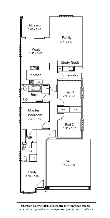 The home has 3 generous bedrooms, the master featuring a walk-in robe and ensuite bathroom, while bedrooms 2 and 3 have their own built-in robes. In addition to the ensuite, there is a large main bathroom centrally located and a separate laundry with outside access.