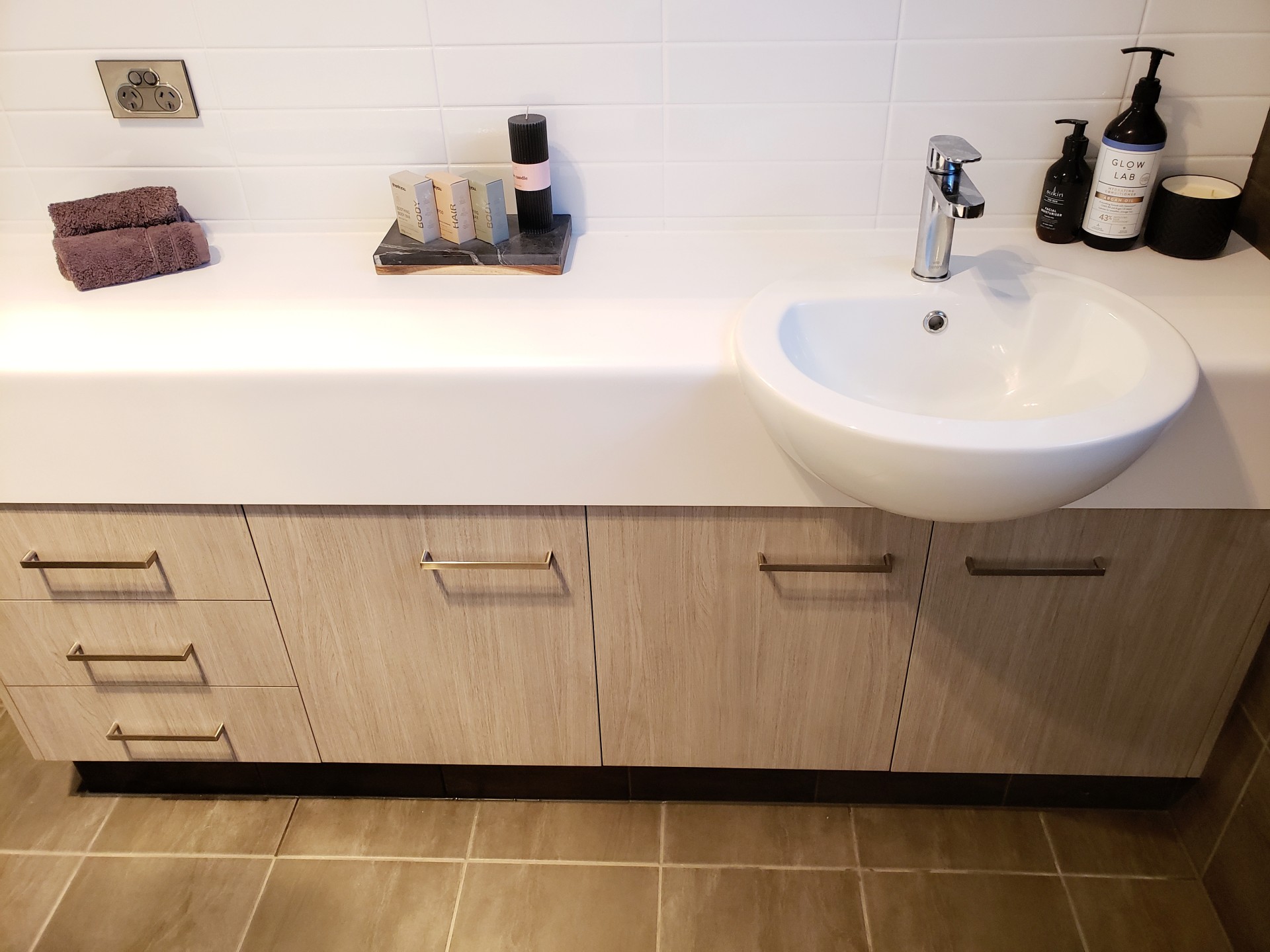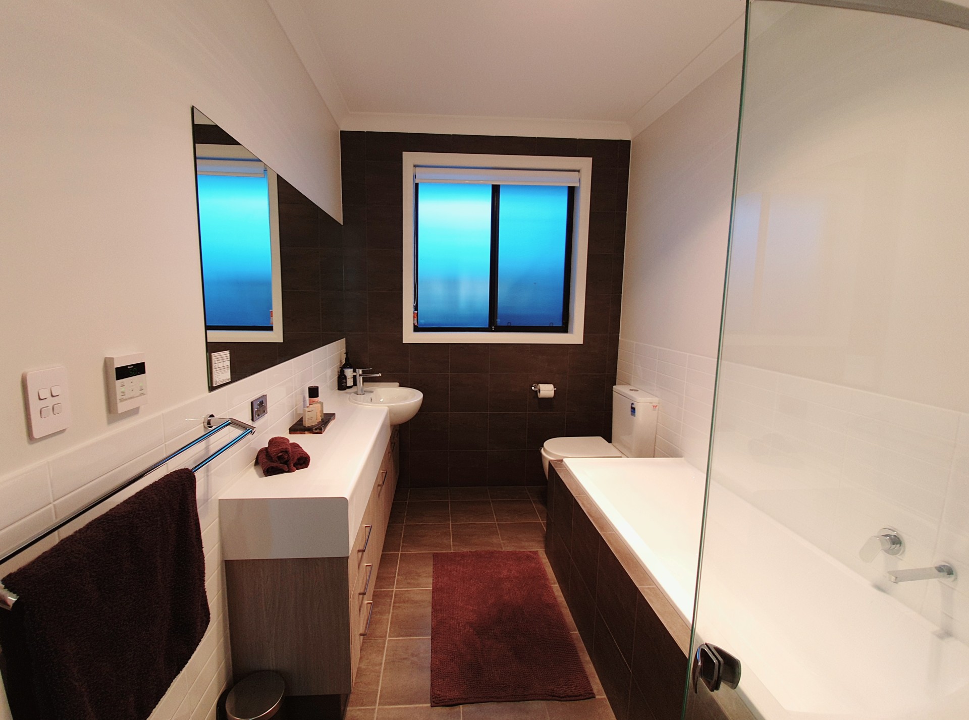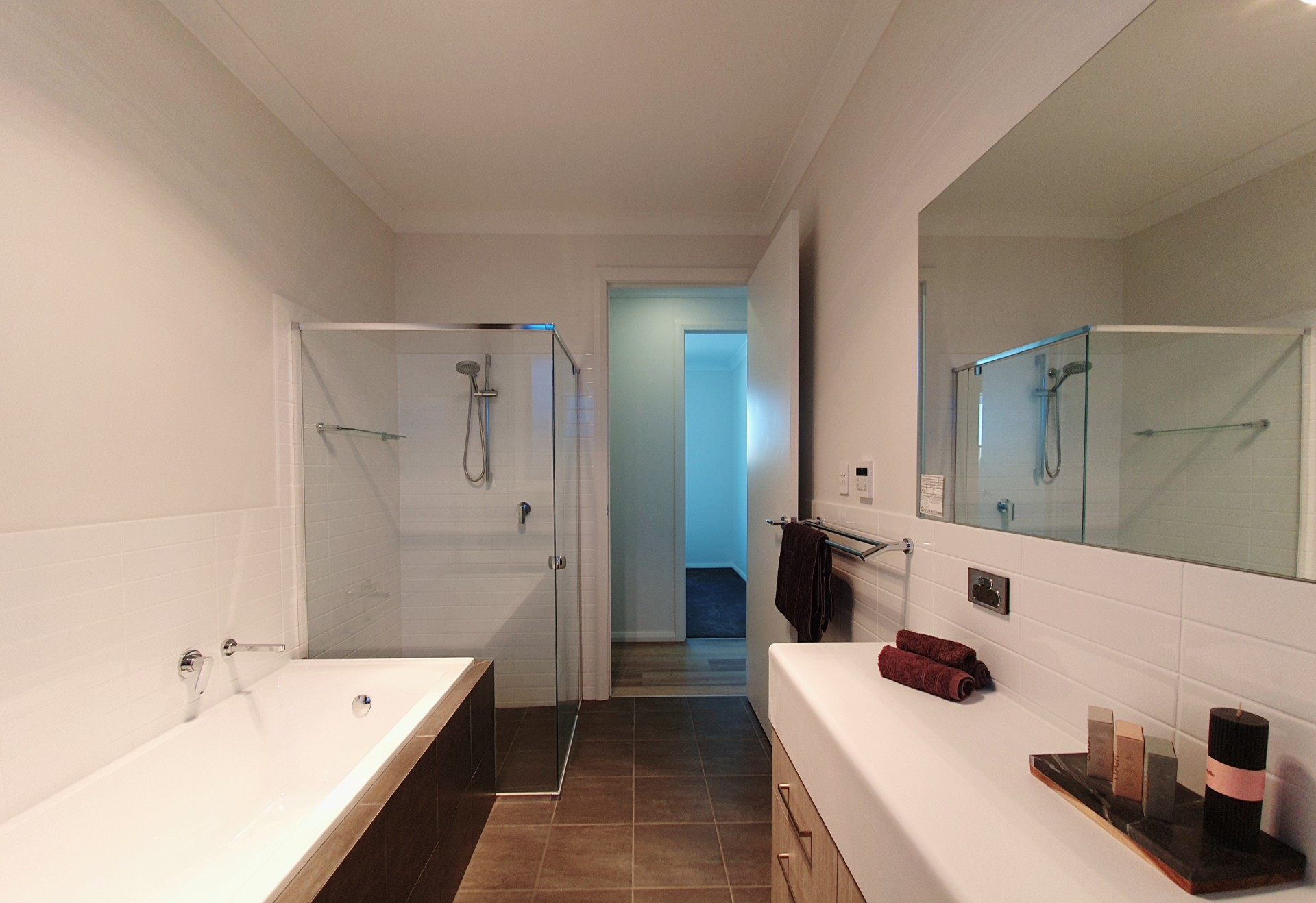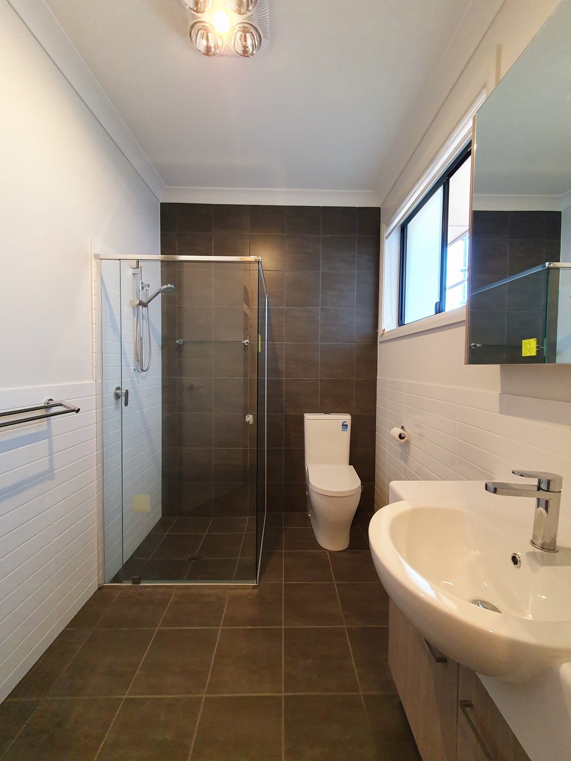 - Bathroom feature walls tiled to ceiling height
