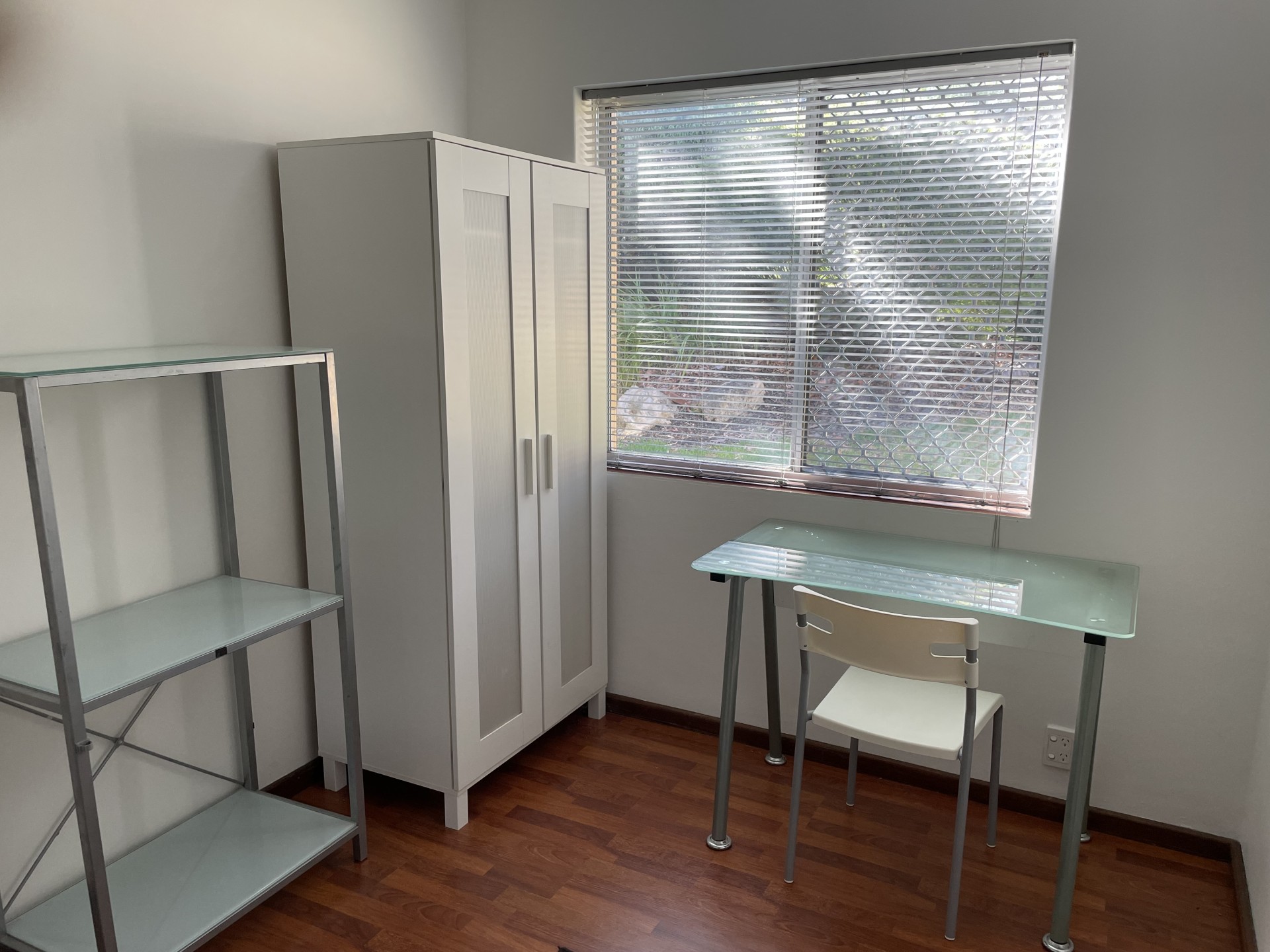 Built-in robe in the generous main bedroom. The second bedroom is large enough for a queen bed, shown as a study in the photos.