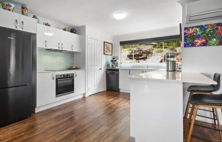 The open plan living/dinning/kitchen area has a new 8.5kw air-conditioner, as well as vinyl planking flooring. The fully renovated kitchen consists of induction cooktop, self cleaning oven, dishwasher, stone bench top with a breakfast bar. The kitchen also boast a large walk-in pantry.