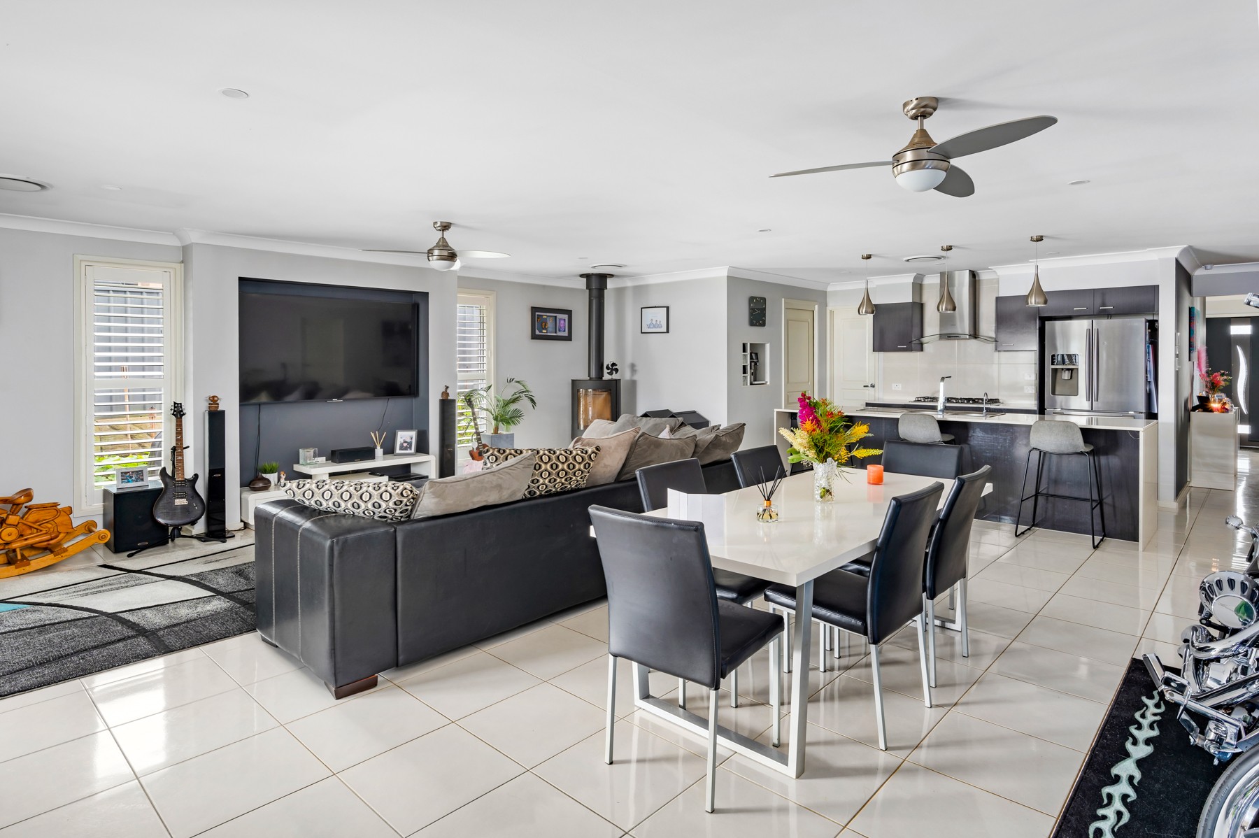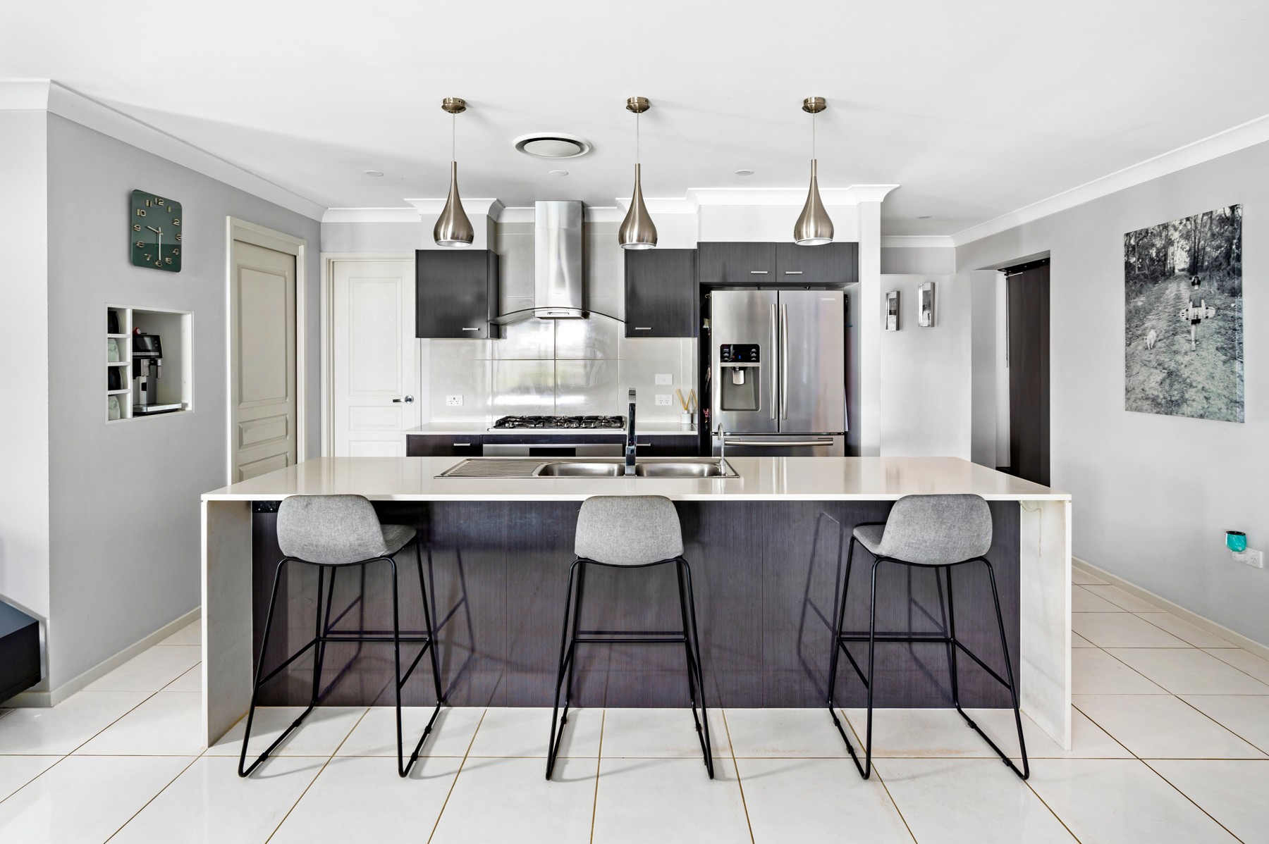 - Generous designer kitchen with stone benchtops, walk-in pantry, large breakfast bar
