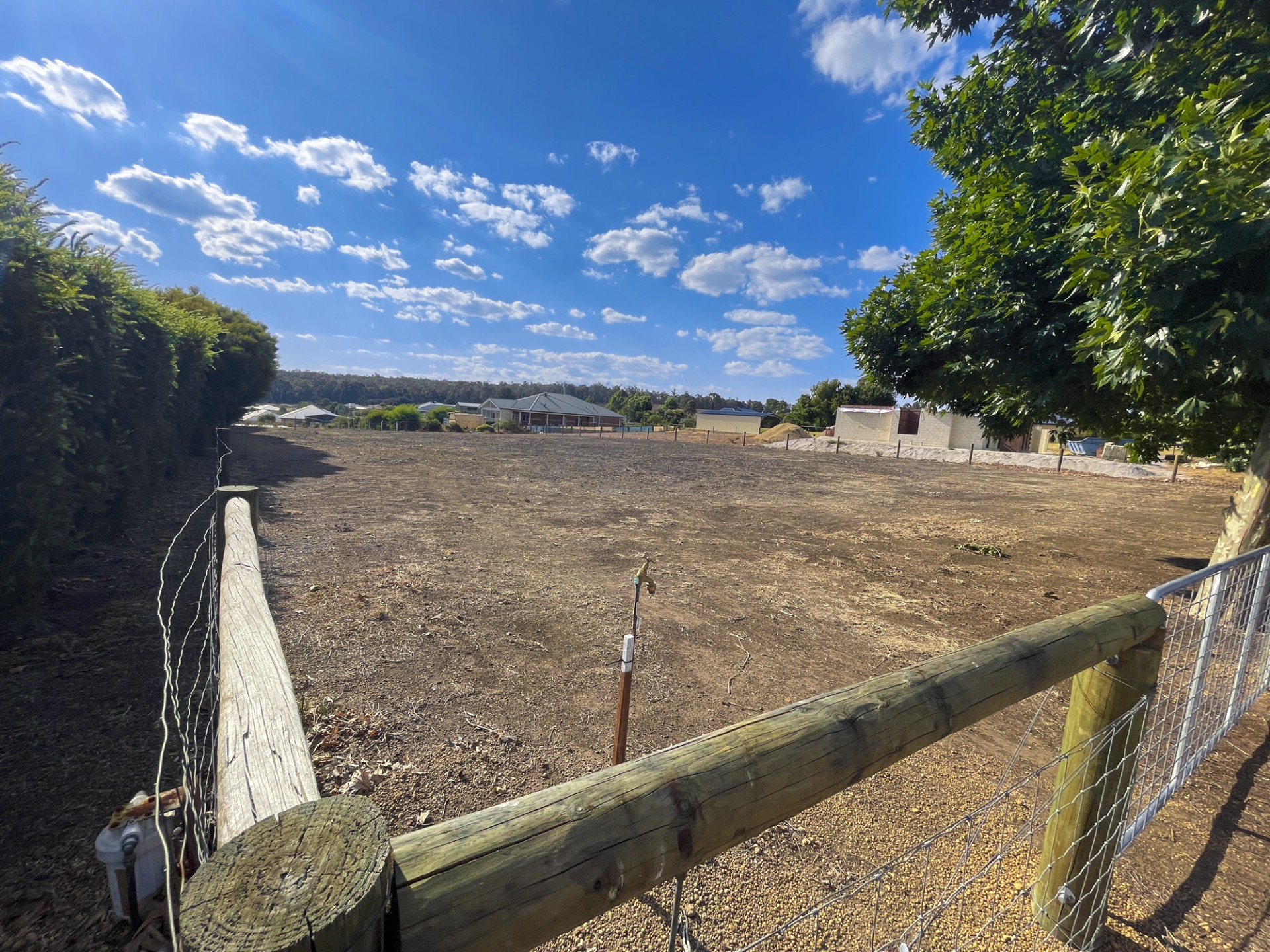 Nice flat block of land in a great neighbourhood and only 4 km from the town centre. One of the last flat blocks left, helping to minimise site costs. Fully fenced, with a 3m swung gate at the front of the property. The rear of the block faces the dam and national forest. Established mature trees across the front of the block for added privacy. Water has already been connected with a tap at the front meter ready for use. NBN and power are also available for connection. Other services include the school bus run, rubbish pick up, and a local active community Facebook group. It's the perfect place to build your dream home in this beautiful and peaceful country estate.
