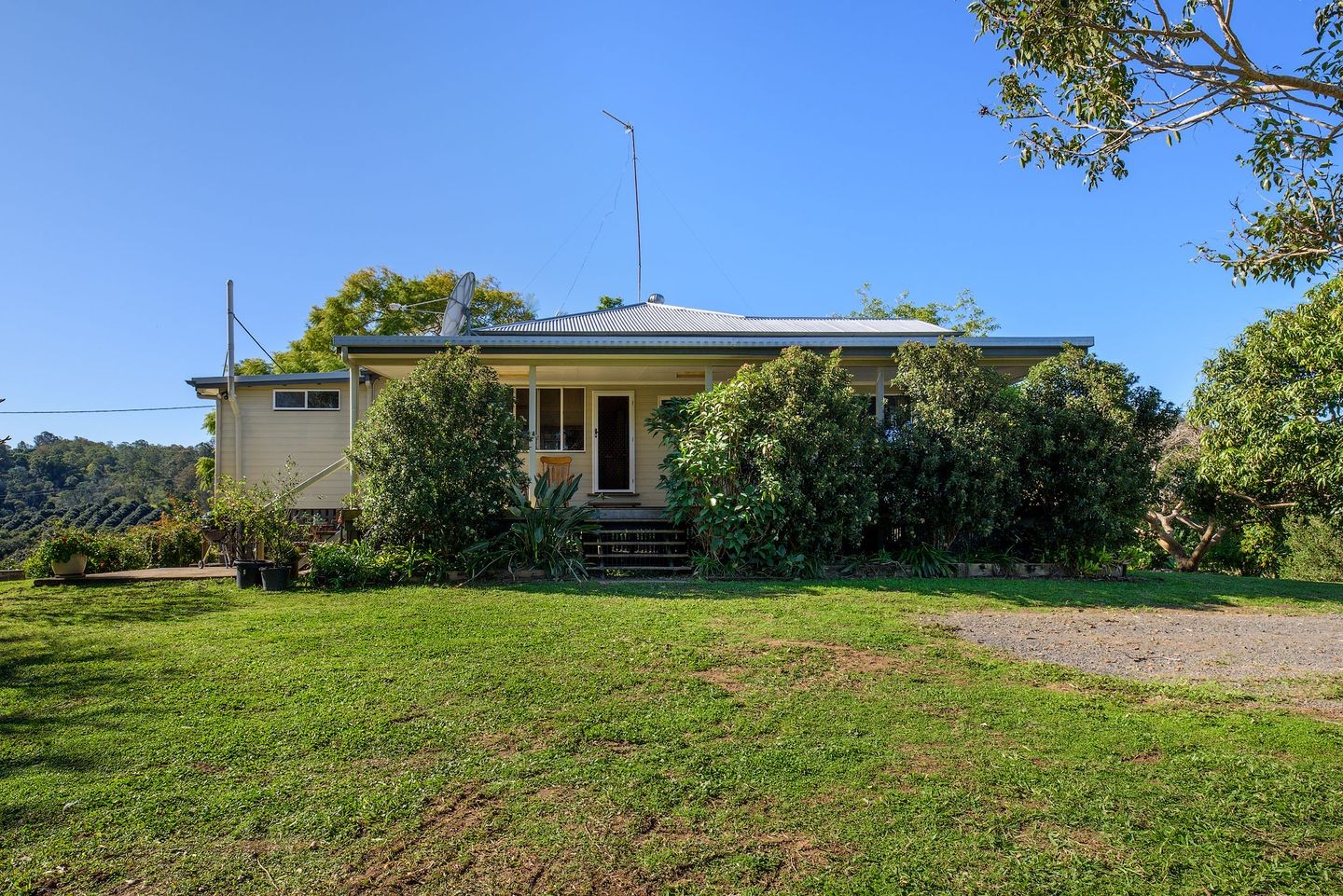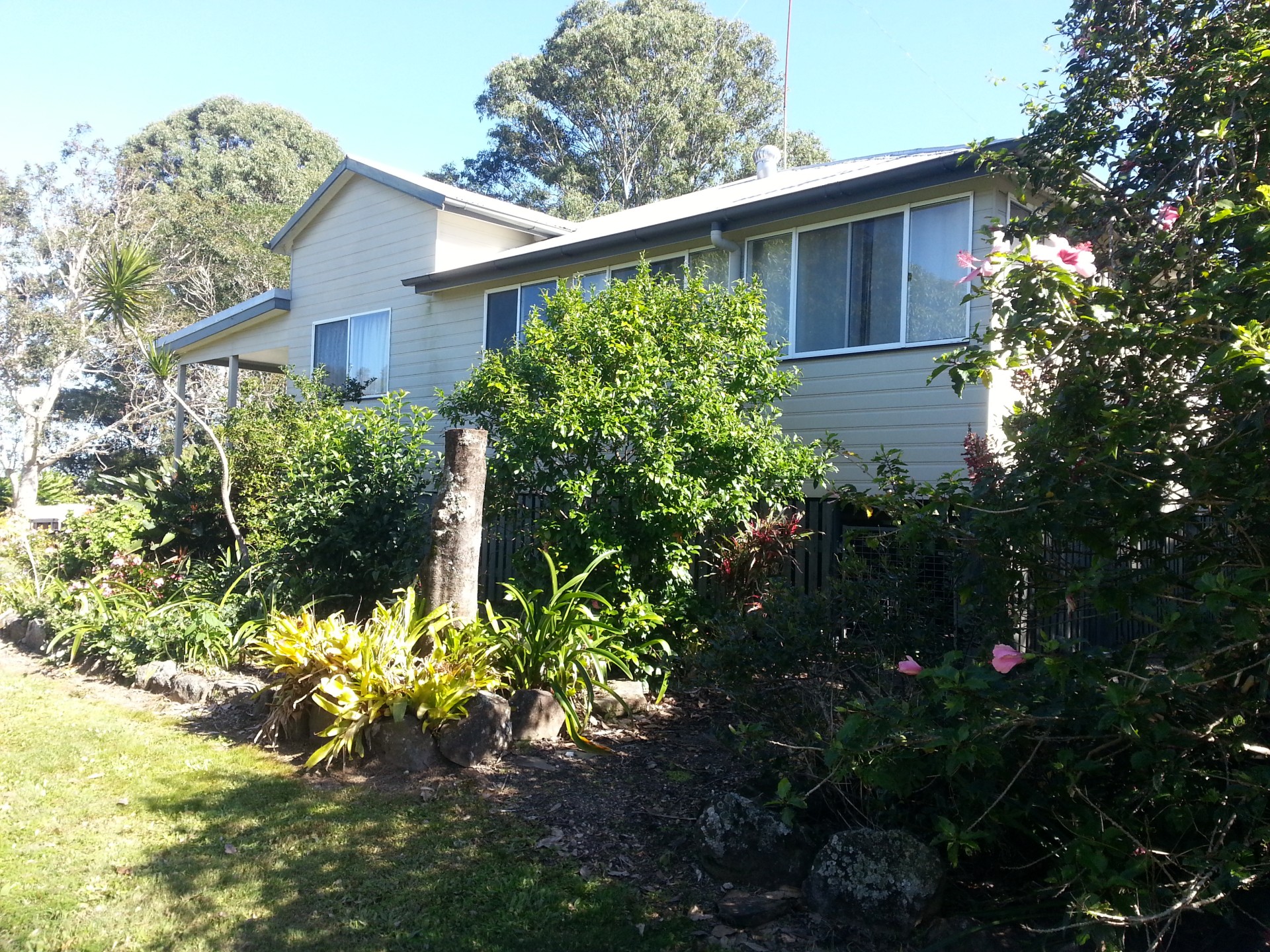 Fruit trees and established gardens surround the house with reasonable views in all directions.