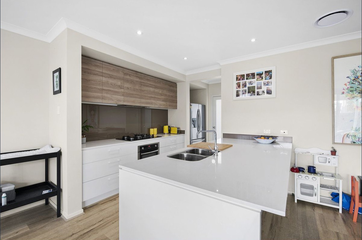 Featuring beautiful high ceilings, exceptional light and ducted air conditioning for the perfect temperature year-round. The ground floor opens up to a large lounge and dining area, featuring a beautiful kitchen with a stone benchtop and breakfast bar. The kitchen features gas cooking, quality appliances, a dishwasher, slow-close drawers, glass splashback and to top it off, a large walk-in pantry.