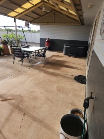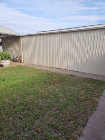 Big shed 12m x 6m, drive-through access from the carport, all concreted and powered