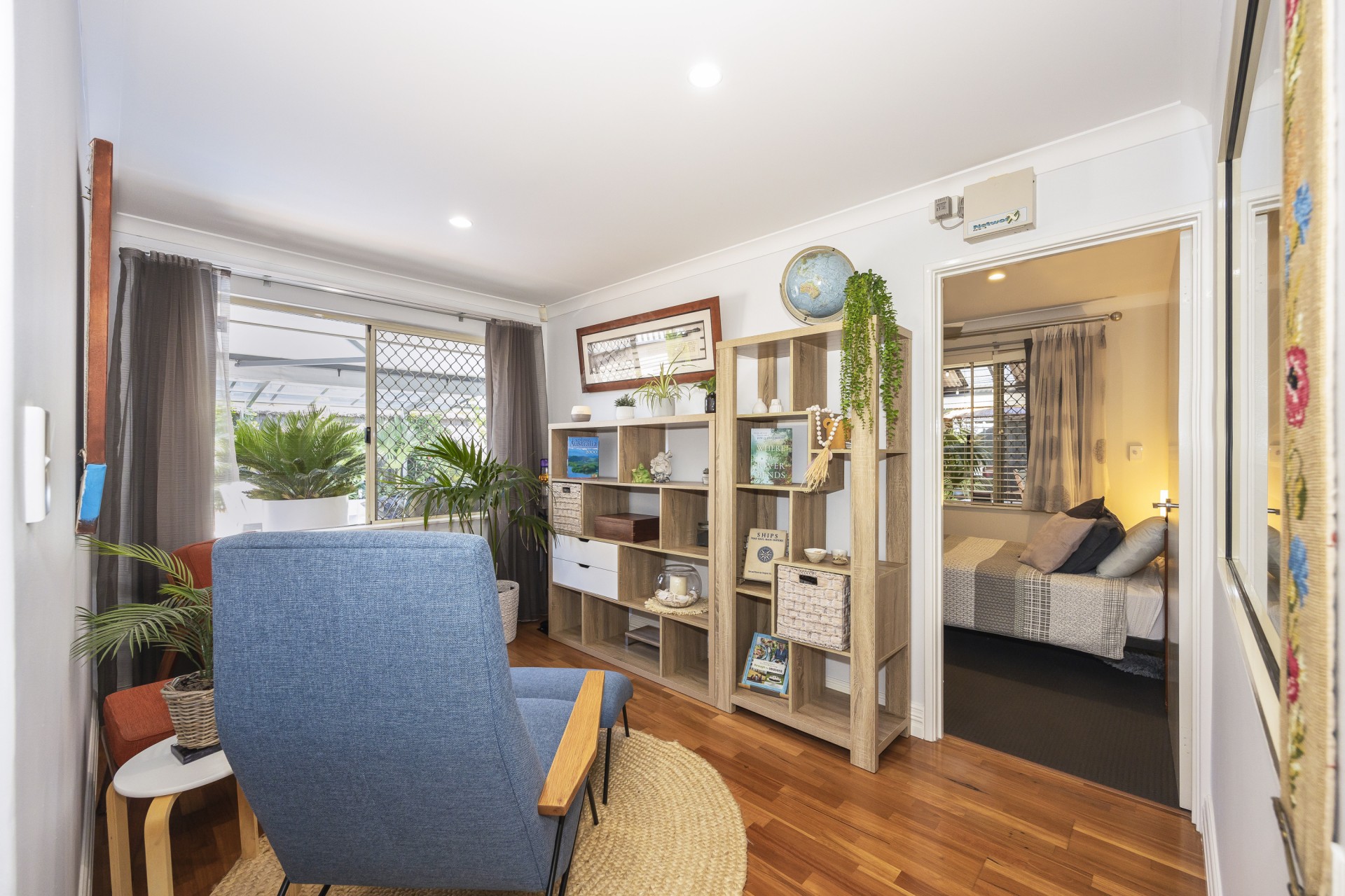 The master bathroom has also been cleverly renovated to include floor-to-ceiling tiling, stone benchtops, a shower, mirrored storage, heated towel rails and more. The master suite has its own walk-in wardrobe with the three other bedrooms all boasting built-in robes for good measure. A separate toilet can be found off the laundry. The laundry includes a stone benchtop, storage/broom cupboard, linen cupboard, and ample storage cupboards overhead with a sliding door to access the exterior patio. A separate light-filled study, library or hobby room is located between the rear bedrooms and overlooks the sparkling pool and leafy green gardens. A great place to read and relax.