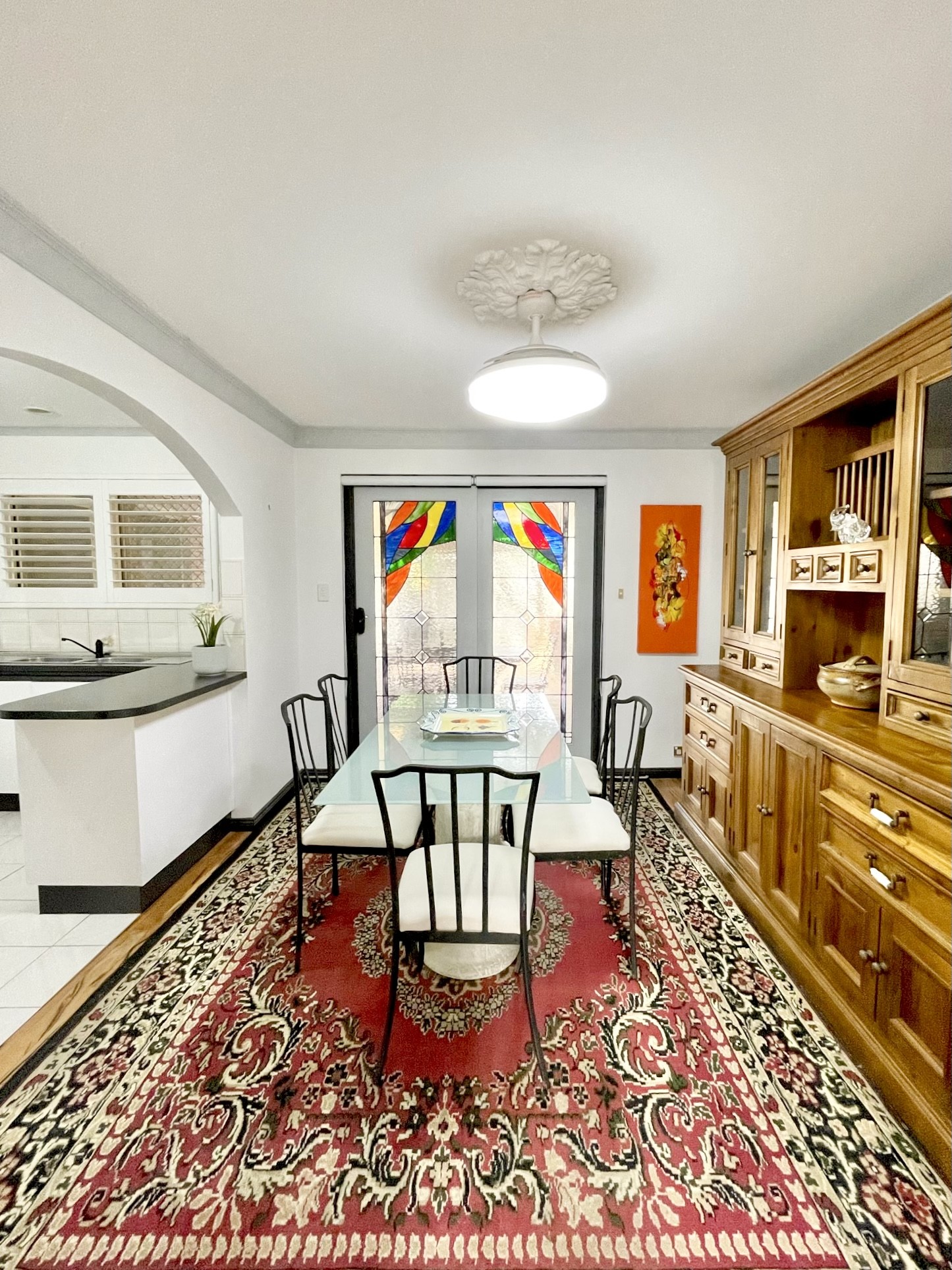 The master bedroom boasts an ensuite, while all bedrooms, living and dining rooms are equipped with retractable ceiling fans to keep you comfortable year-round. Roller shutters on windows offer extra security and privacy.