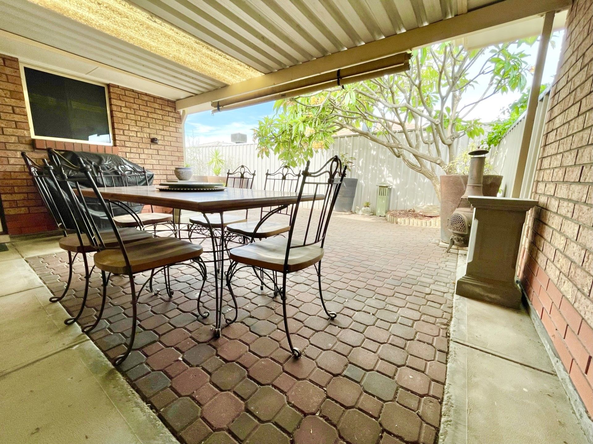 The tidy courtyard garden features a blooming established frangipani tree and garden shed. The property also features a 1.5kW solar panel system and Rinnai gas hot water system.