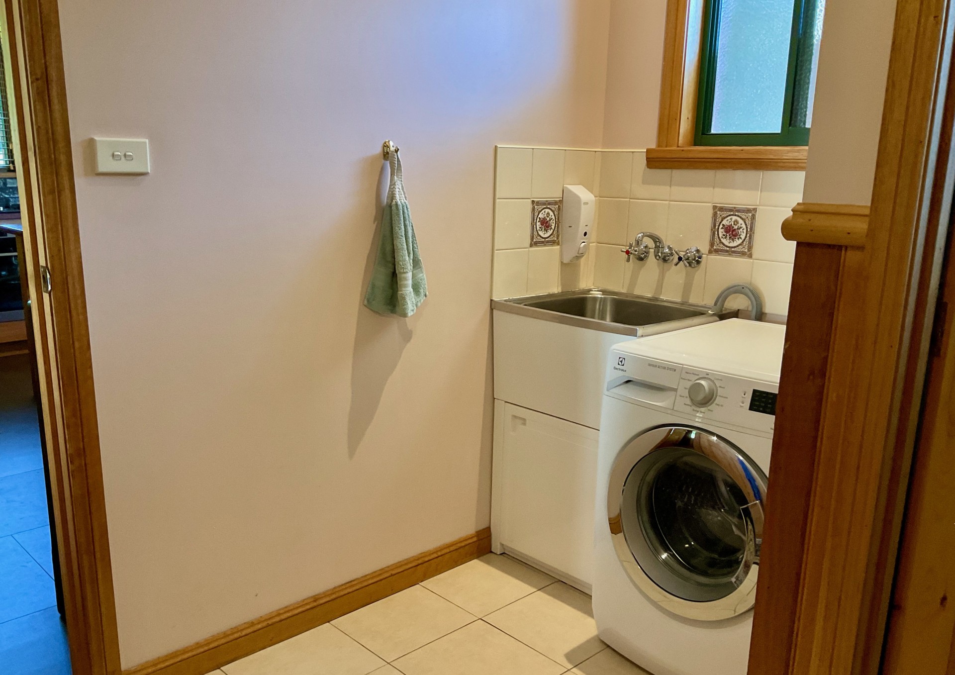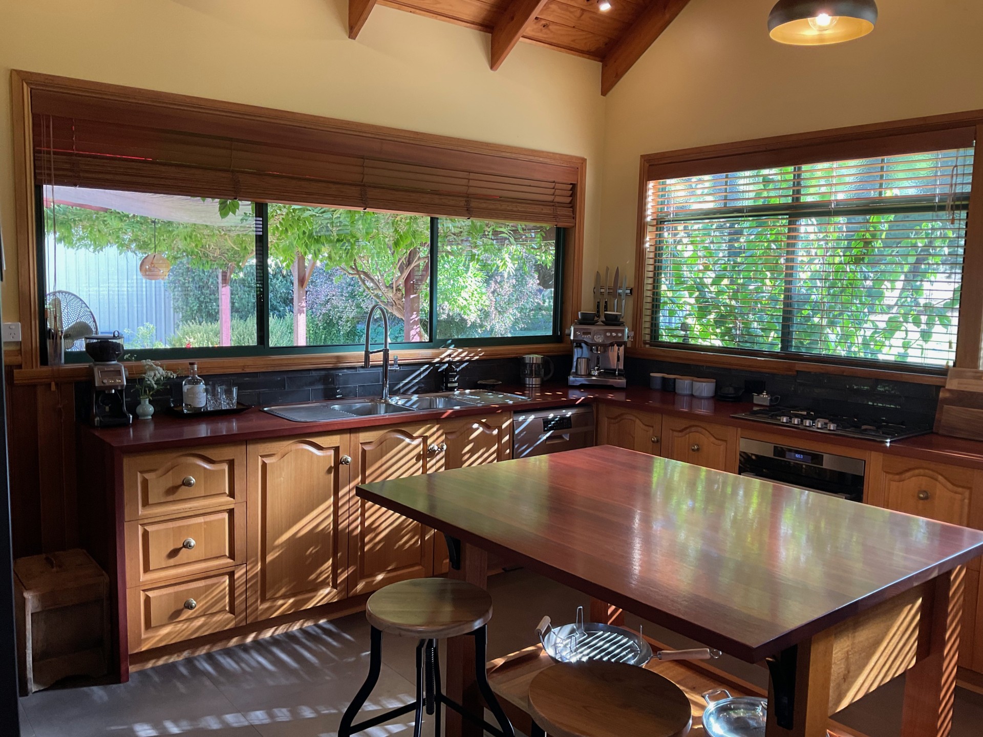 The house provides for comfortable living with enjoyable outlook from all sides, particularly the well-appointed kitchen with Jarrah benches and high-quality AEG appliances.
