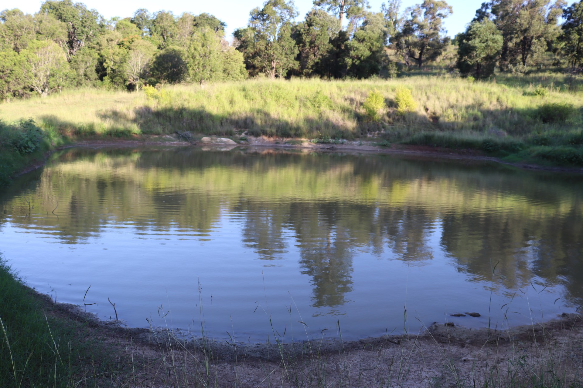 1 large dam and 1 small dam with many shade trees and lovely rolling hills.