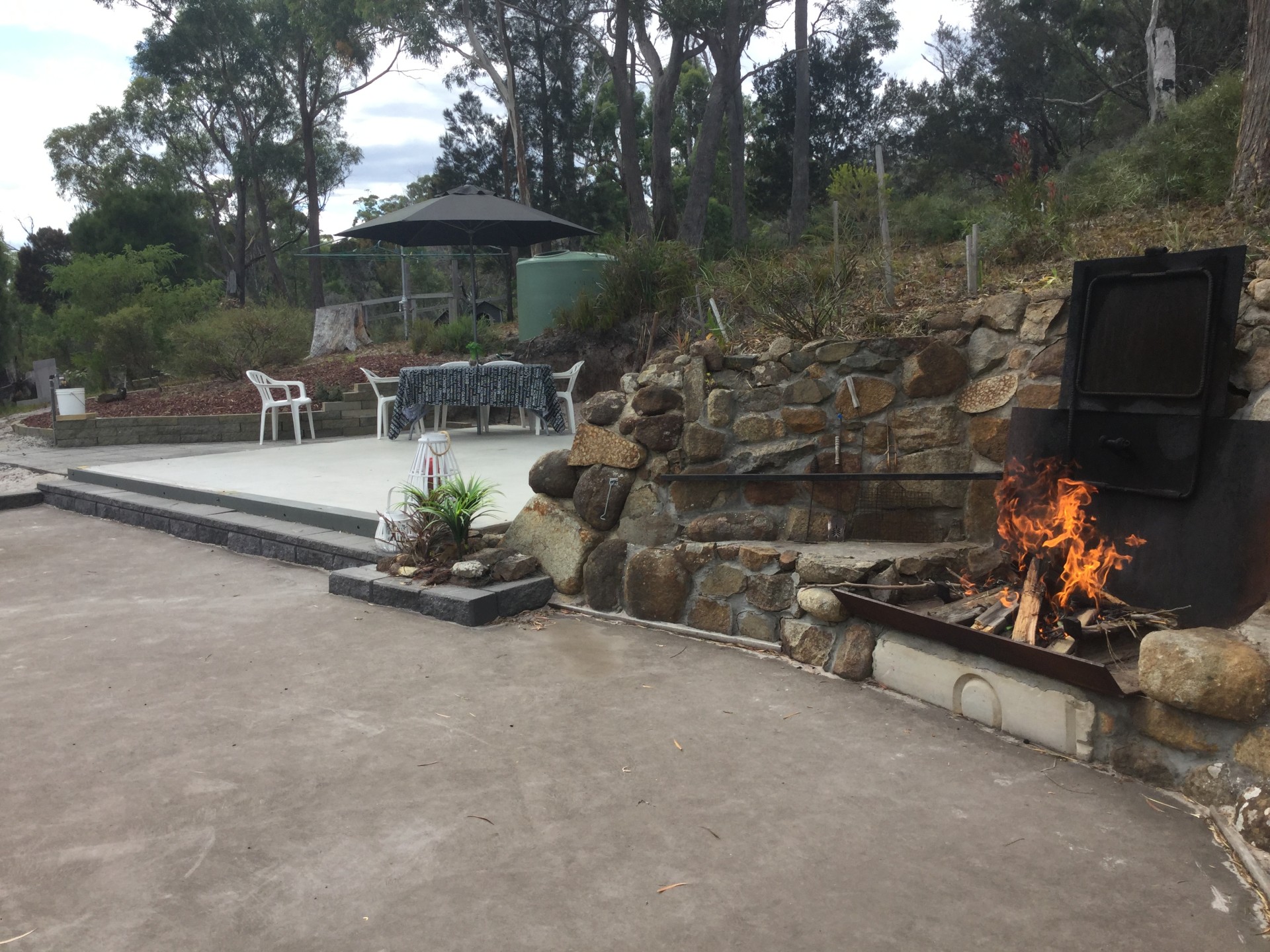 There is also a spacious and well set up entertaining area on a concrete pad which boasts a rustic and unique stone walled open fire place and barbecue.
