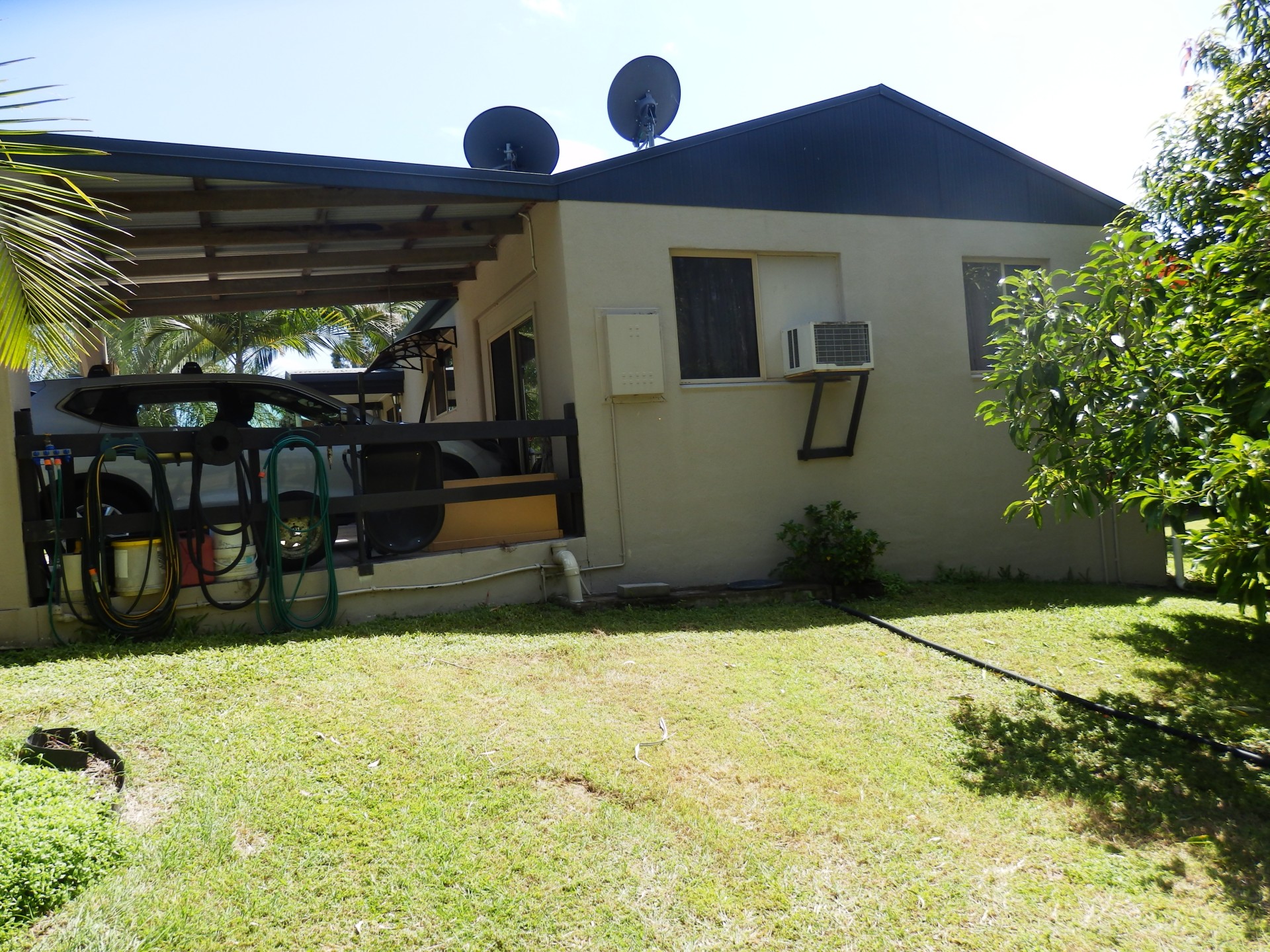 CARPORT IN FRONT OF THE HOUSE.