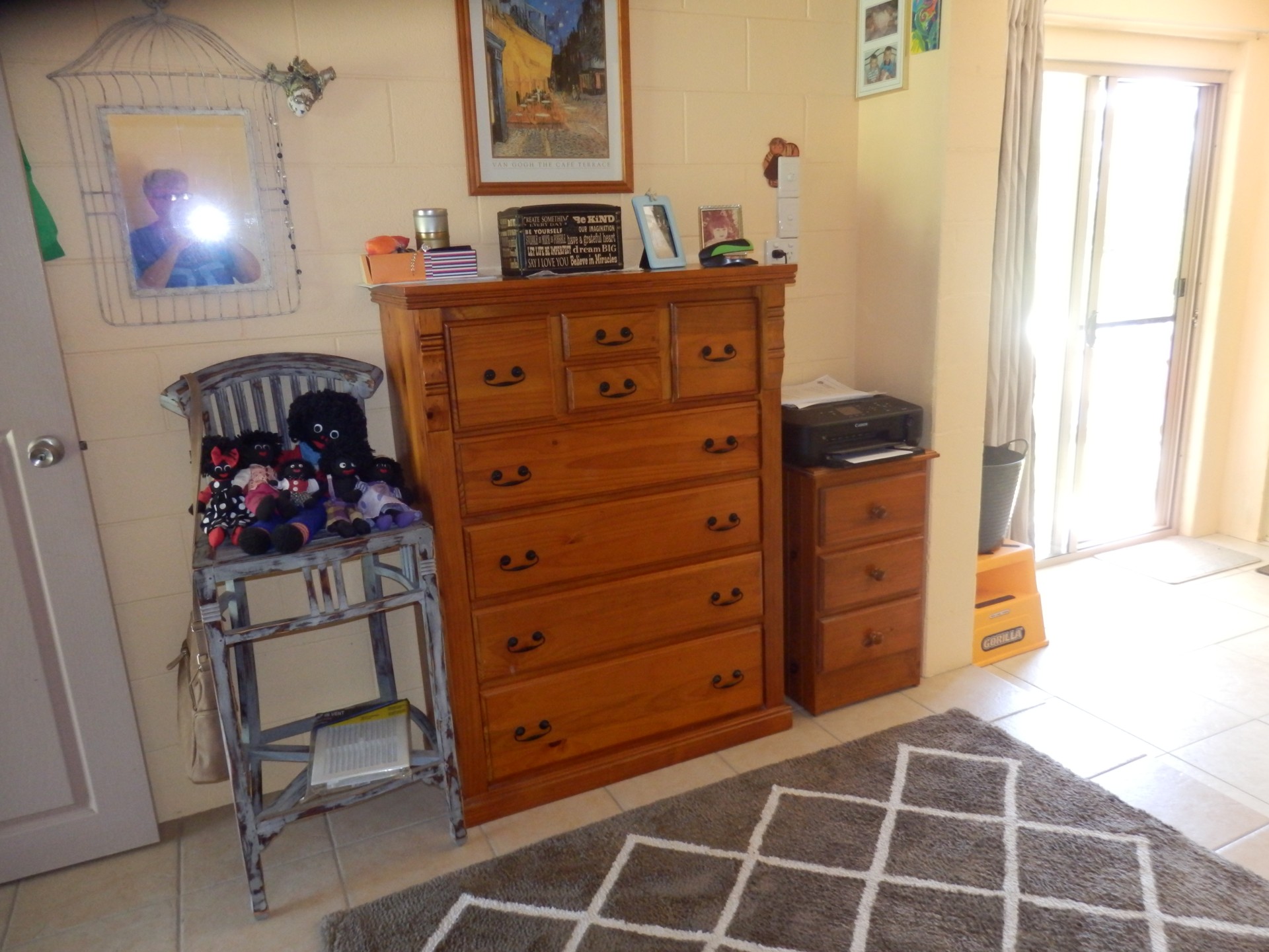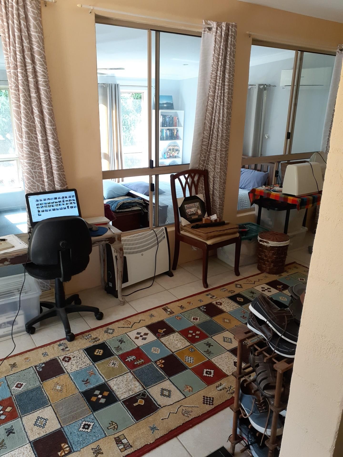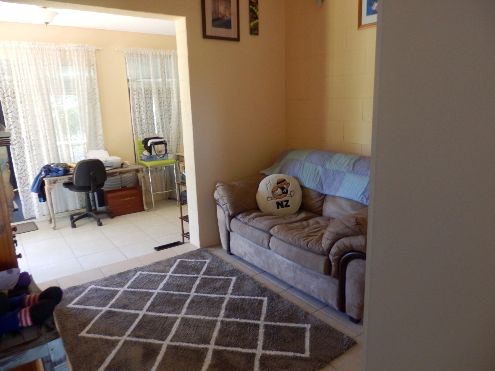 HOME CONSISTS OF THREE BEDROOMS, MAIN BEDROOM WAS BUILT ON LATER AND IS 20' X 12', THE OTHER TWO BEDROOMS ARE 12' X 10' WITH BUILT IN ROBES. THE MAIN BEDROOM DOES NOT HAVE BUILT IN ROBES. CURRENTLY ONE SPARE BEDROOM BEING USED FOR A DRESSING ROOM. THERE IS A SUNROOM/SEWING ROOM/OFFICE. AIRCON IN MAIN BEDROOM, SPARE BEDROOM, LIVING ROOM AND RUMPUS ROOM.