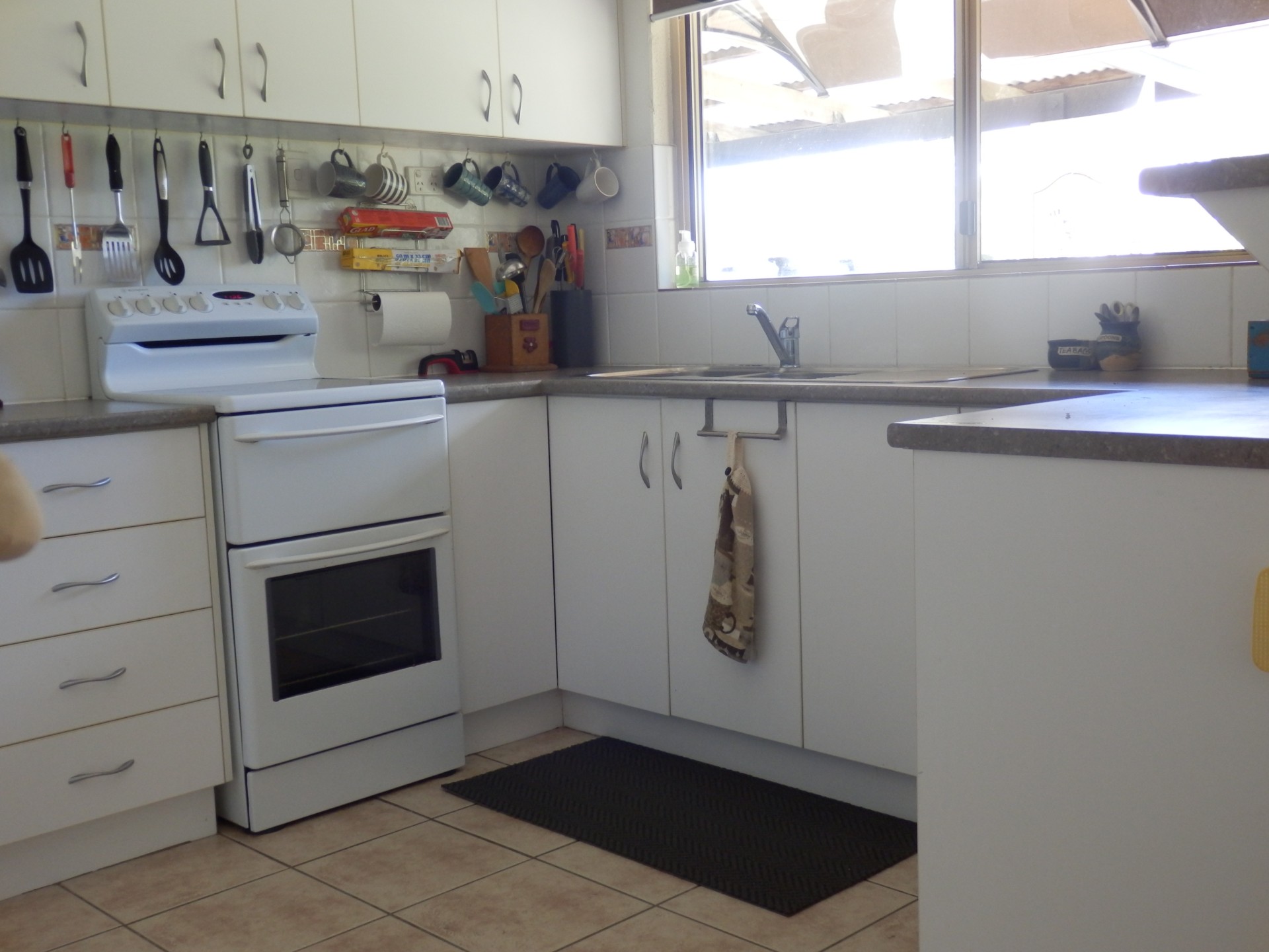 THE KITCHEN IS SMALL BUT HAS PLENTY OF STORAGE SPACE AND VERY FUNCTIONAL.