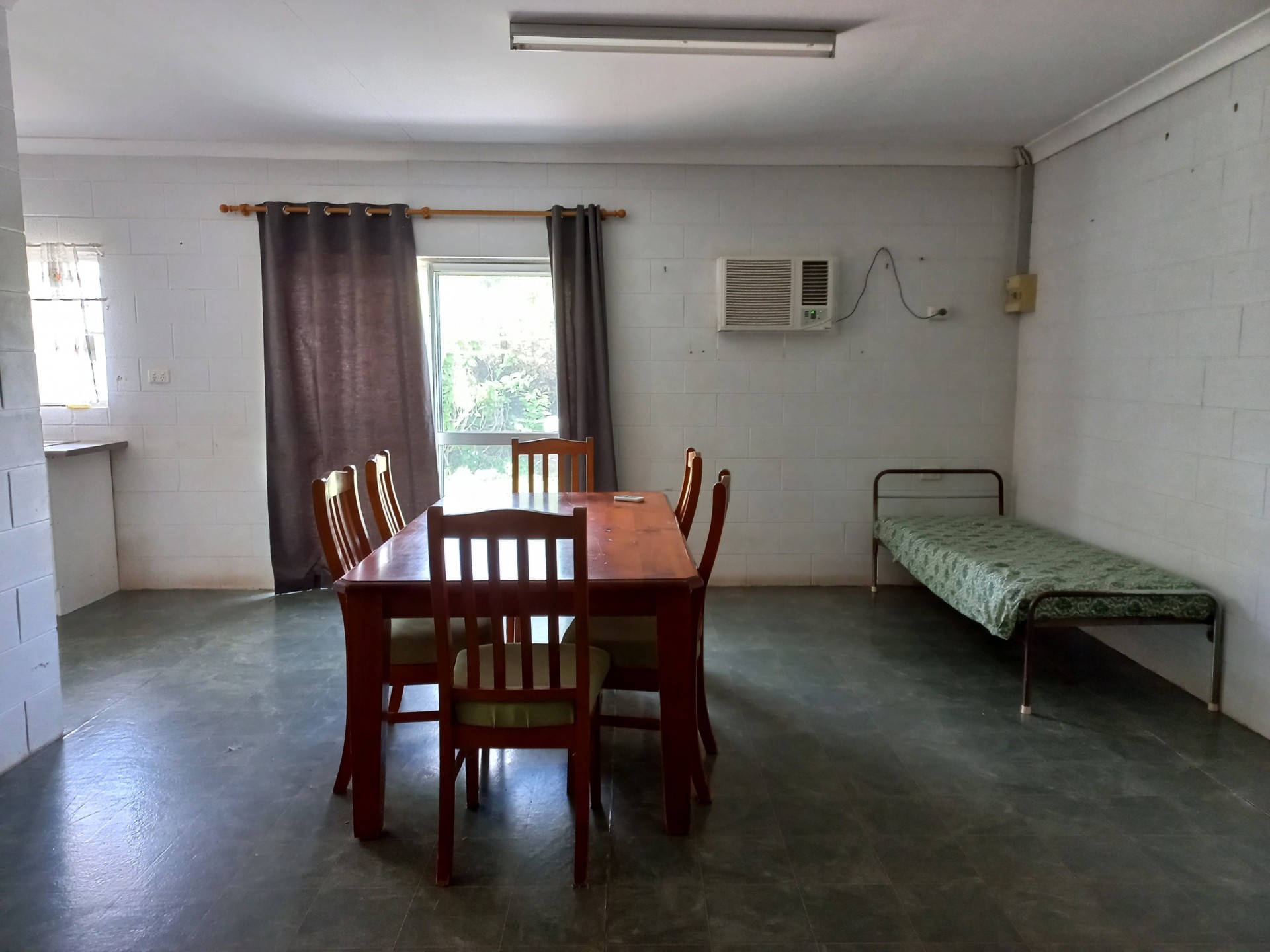 Use only the block section of the house at the rear which has all amenities and 1 bedroom and is air-conditioned or front section as well which has 4 bedrooms plus a living area.