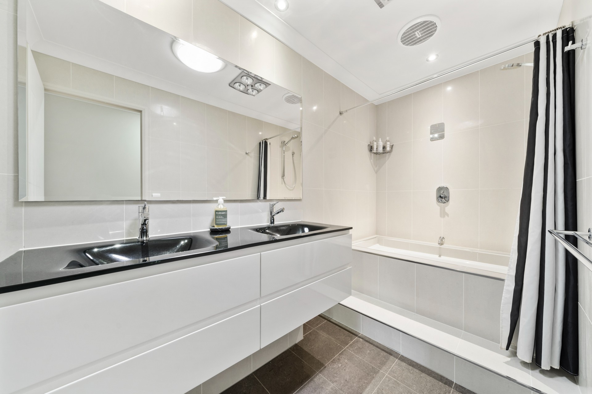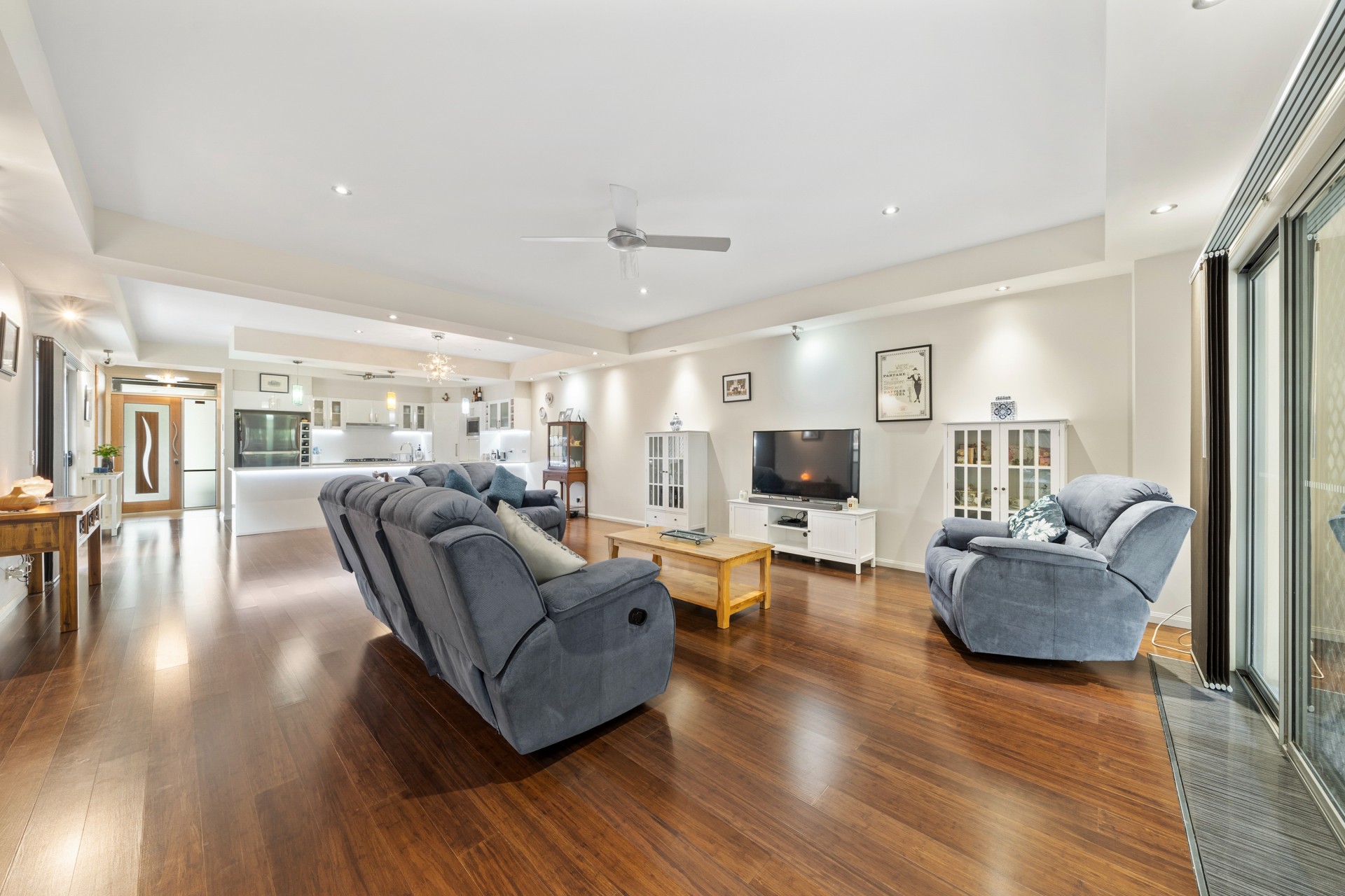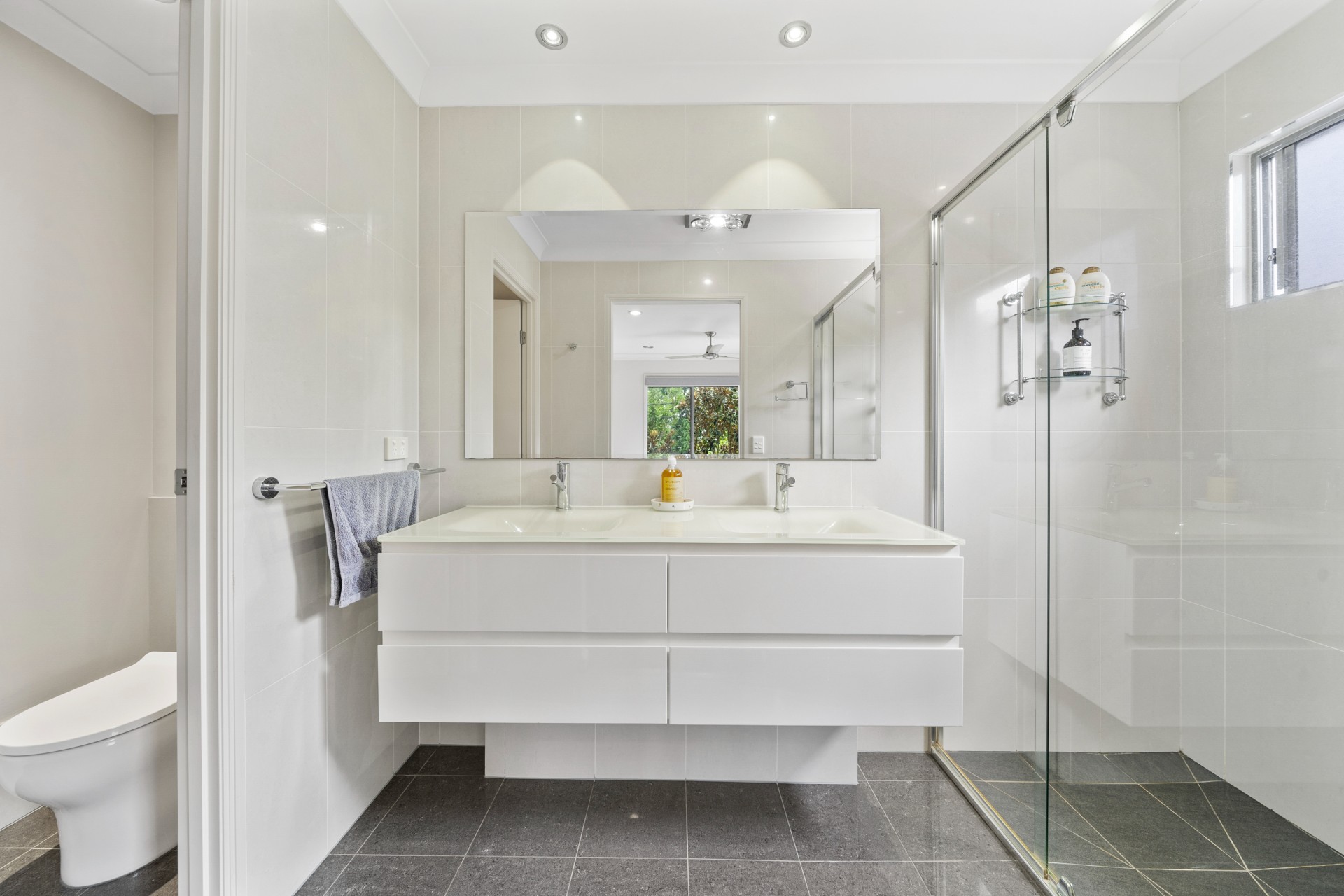 The downstairs lounge opens on to a beautiful fully tiled private and secluded courtyard with sink, cabinets with granite tops, extractor fan, ceiling fan and multiple power points.