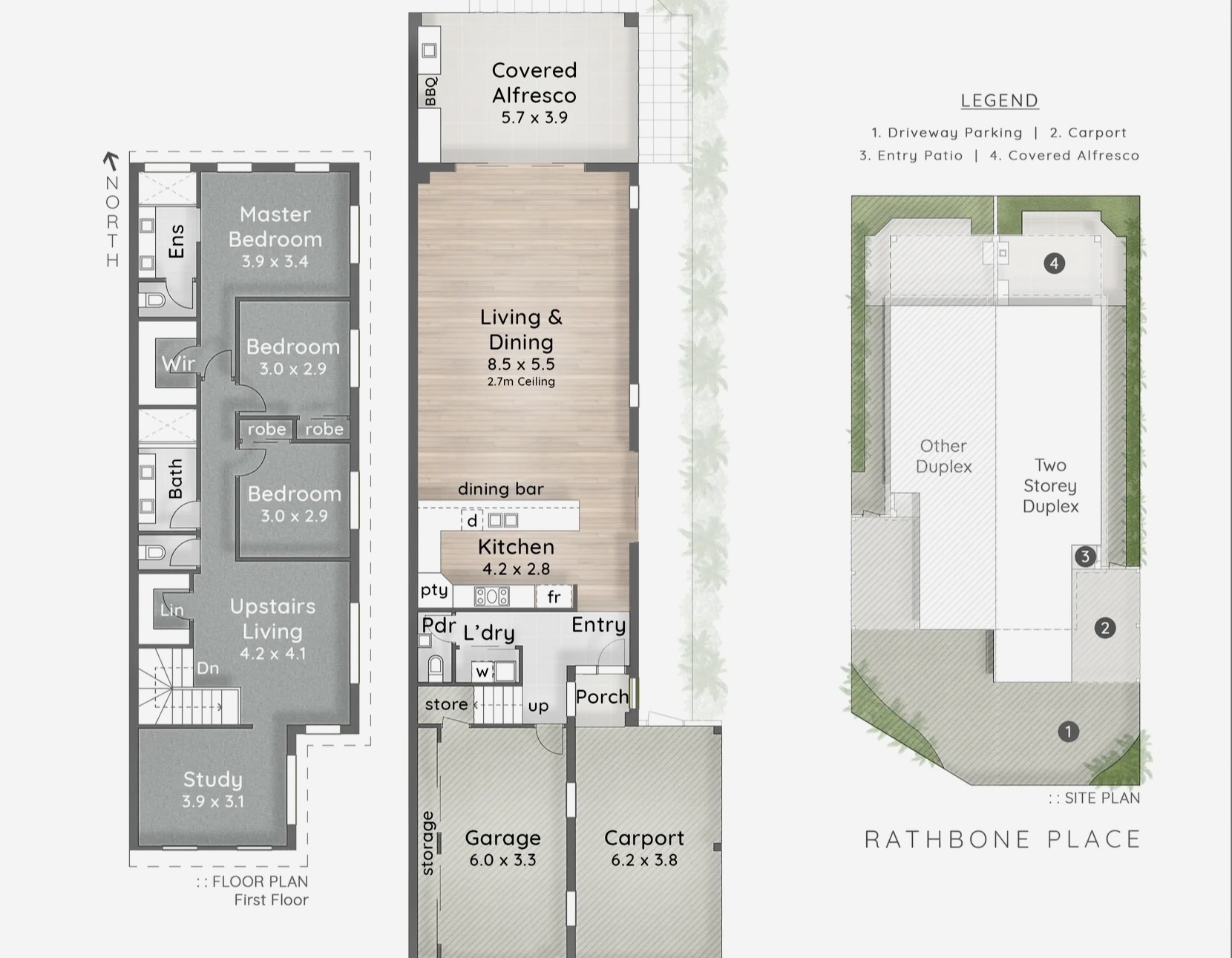 3,000l rainwater tanks.