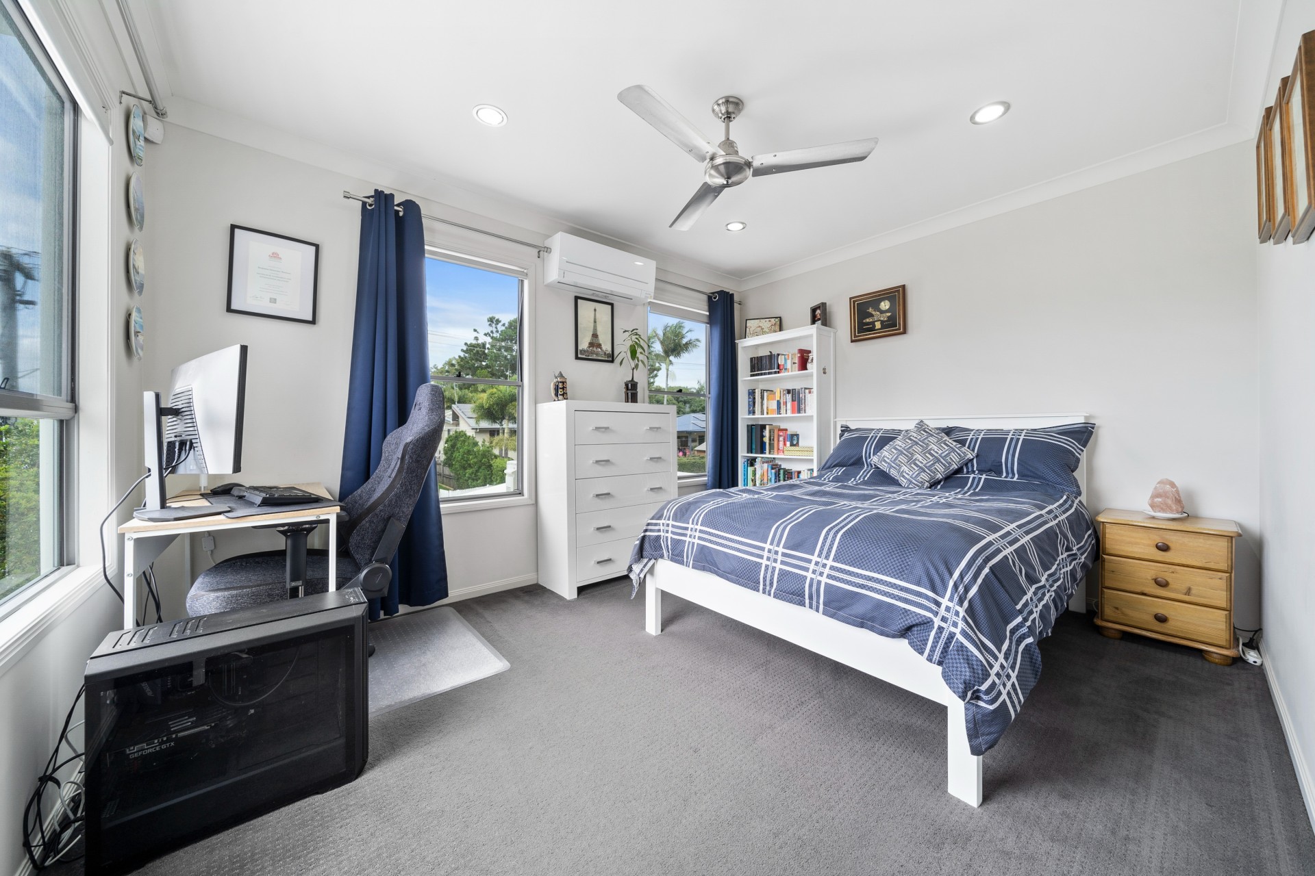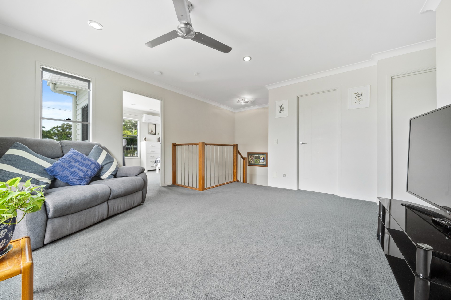All rooms have ceiling fans, both main bedrooms have new air conditioning units with a larger unit for the downstairs.