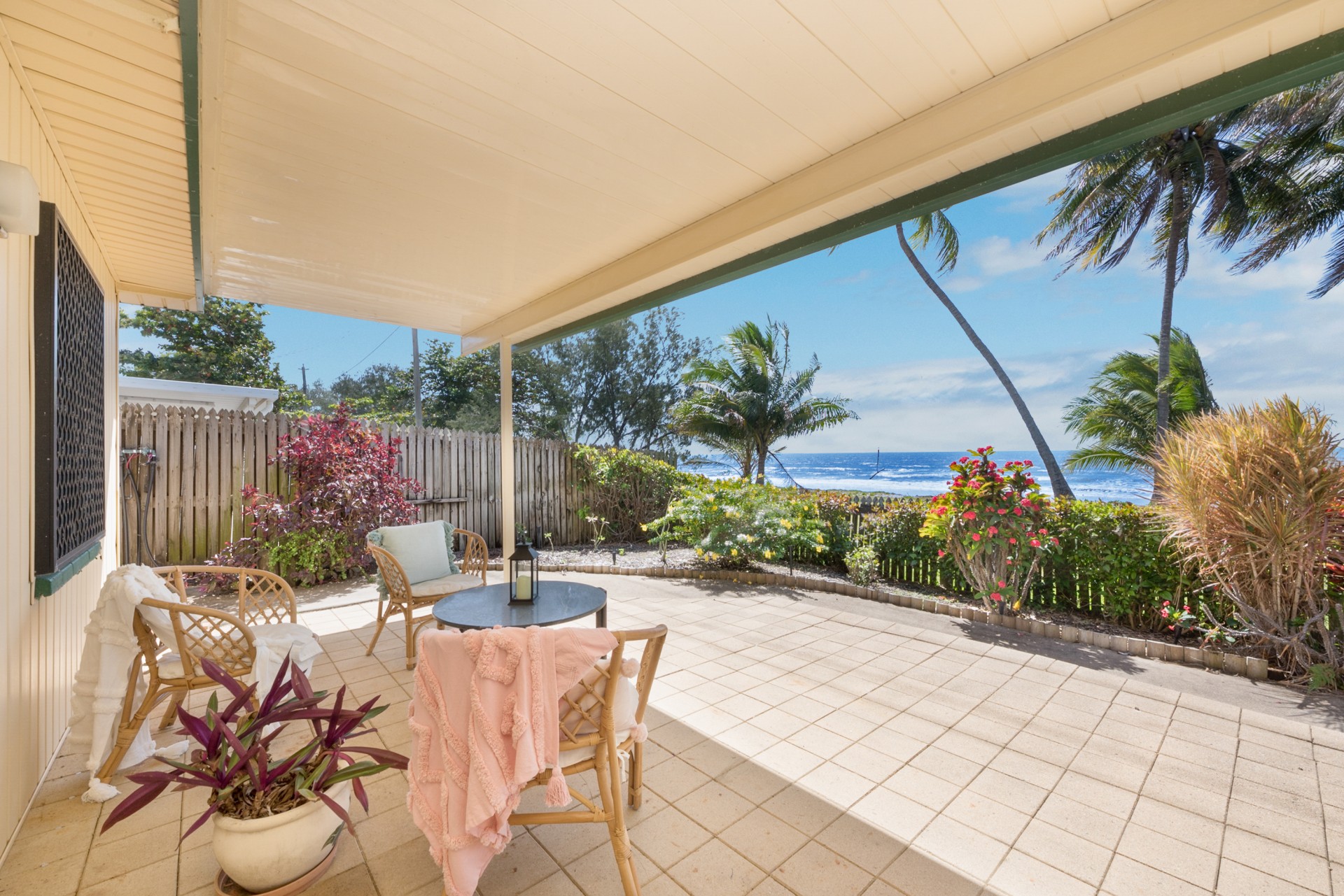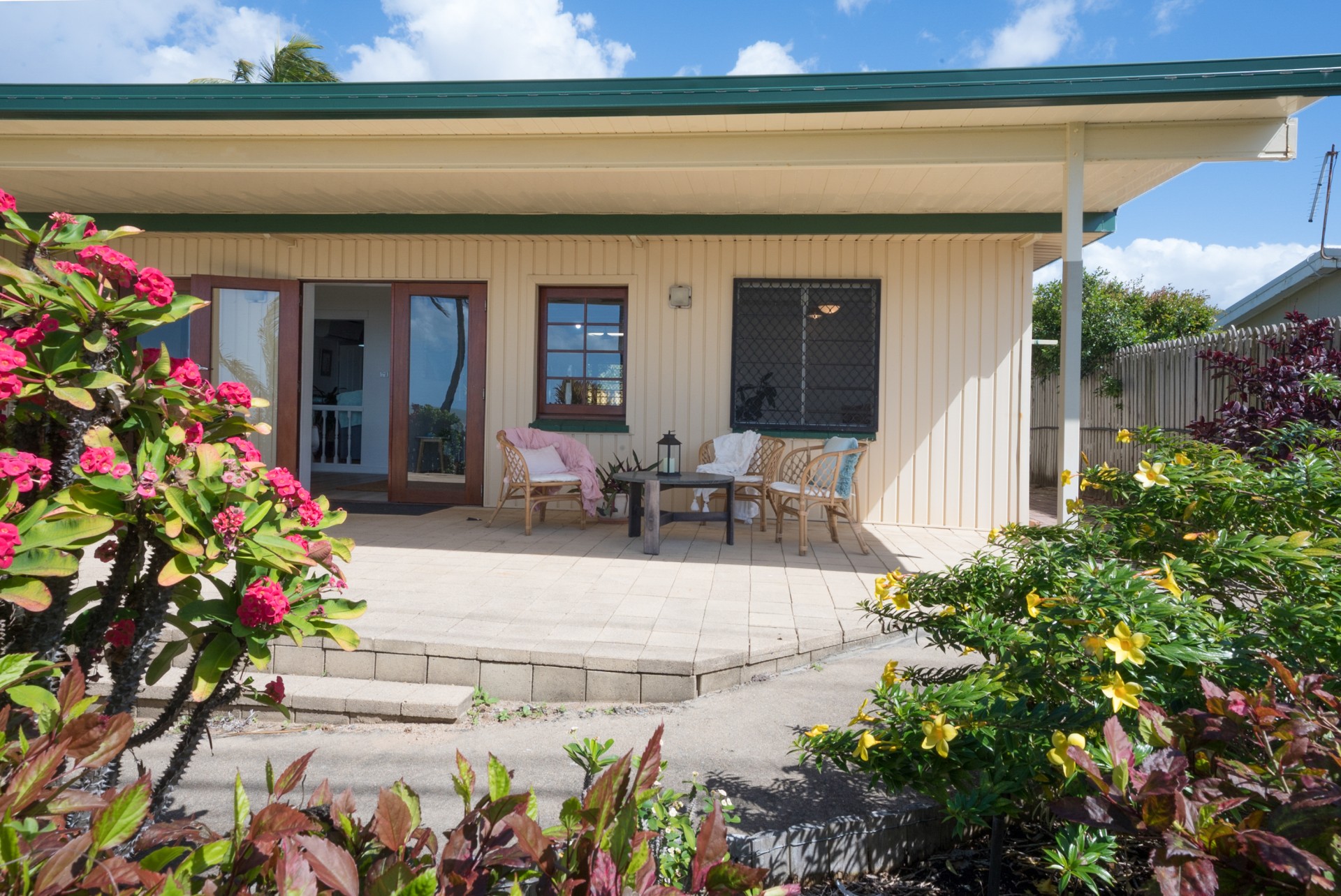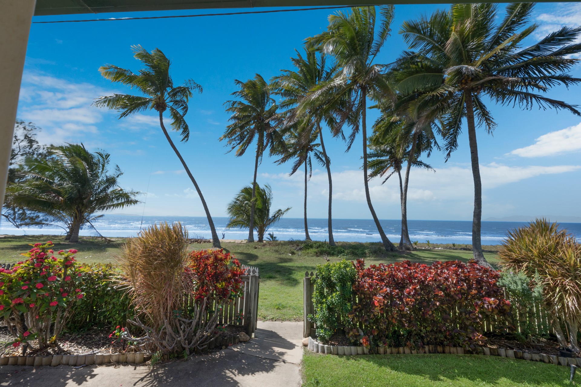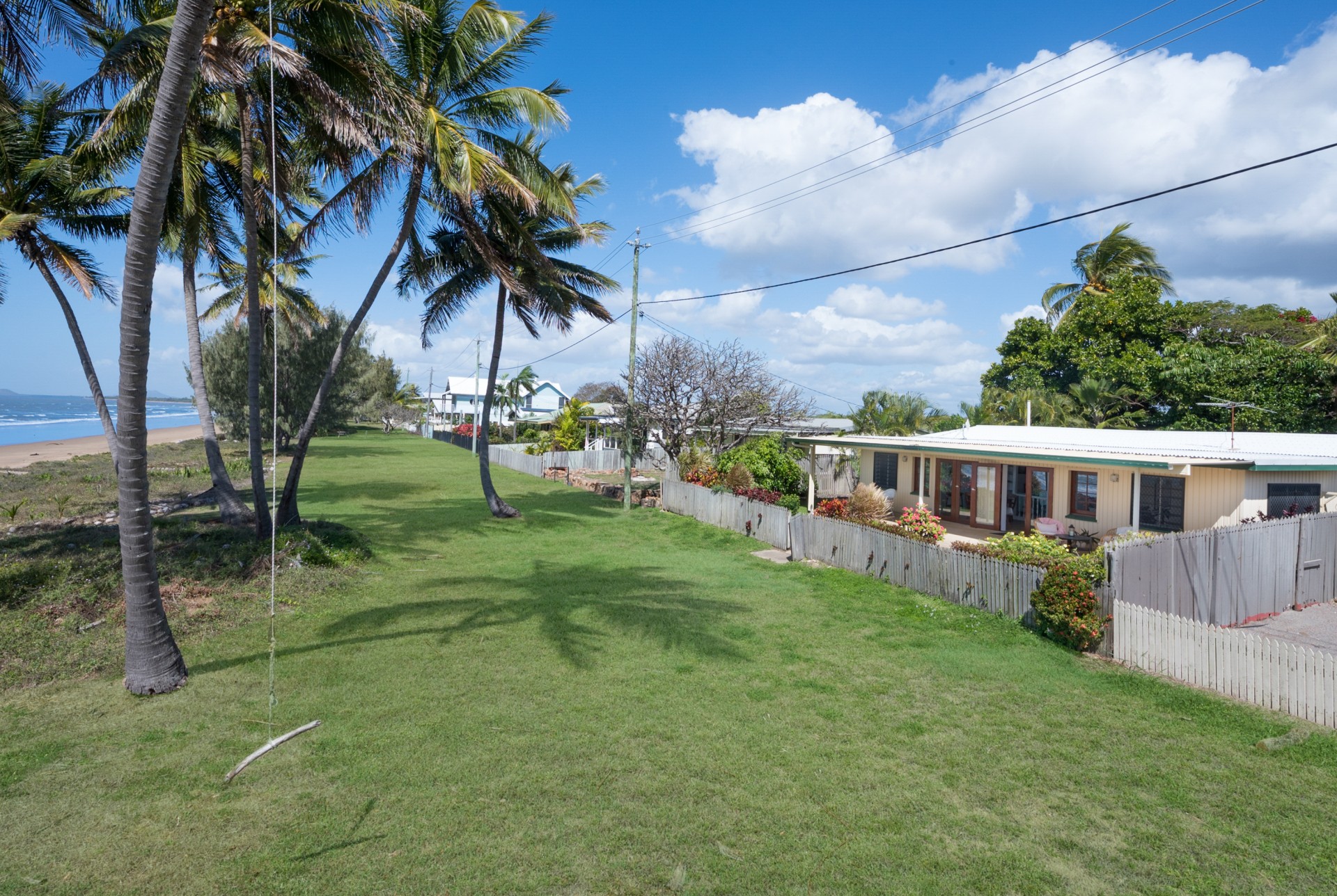 The roof was upgraded and replaced in 2020 to meet contemporary cyclone requirements and this lowset, block home (no steps) has a very bright, open kitchen, lounge and dining area, looking out to the covered verandah and straight out, through the coconut trees, to the sea and islands beyond. Take advantage of the verandah as your front row seat to watch the dolphins play in the bay.