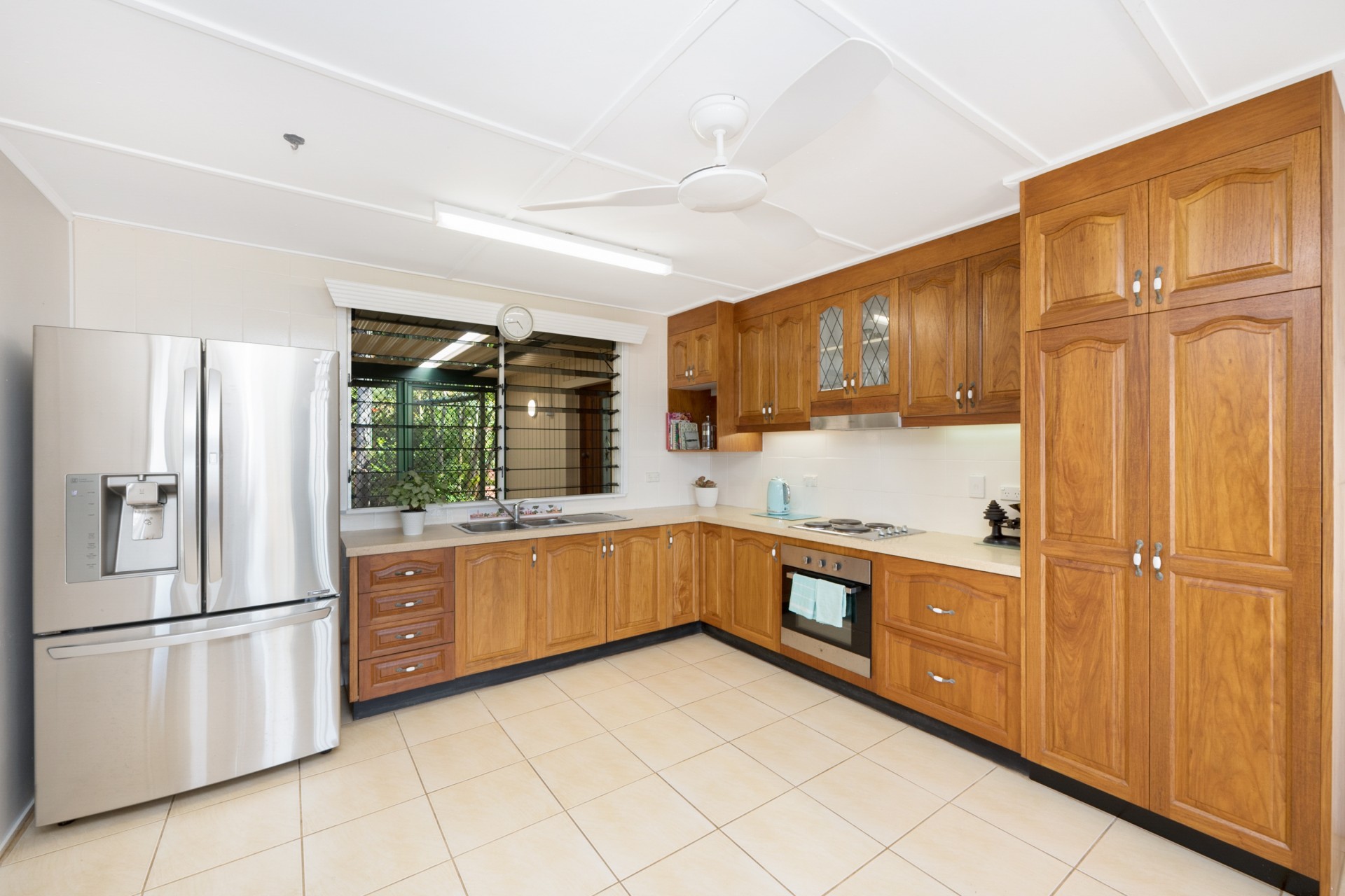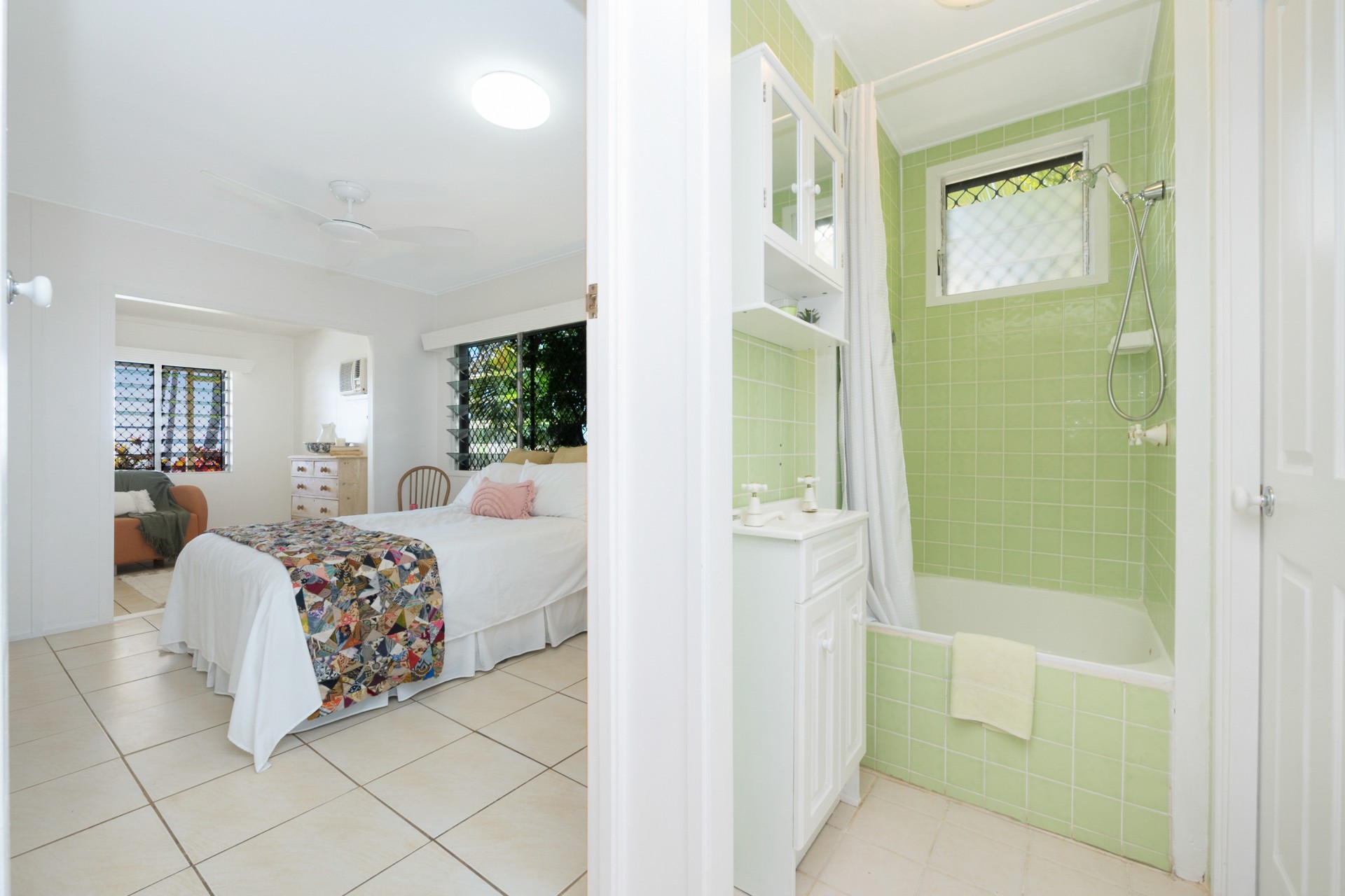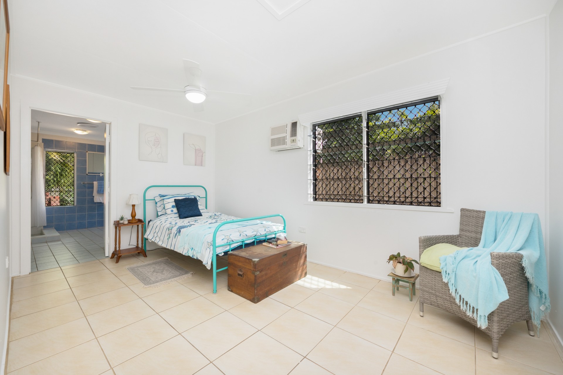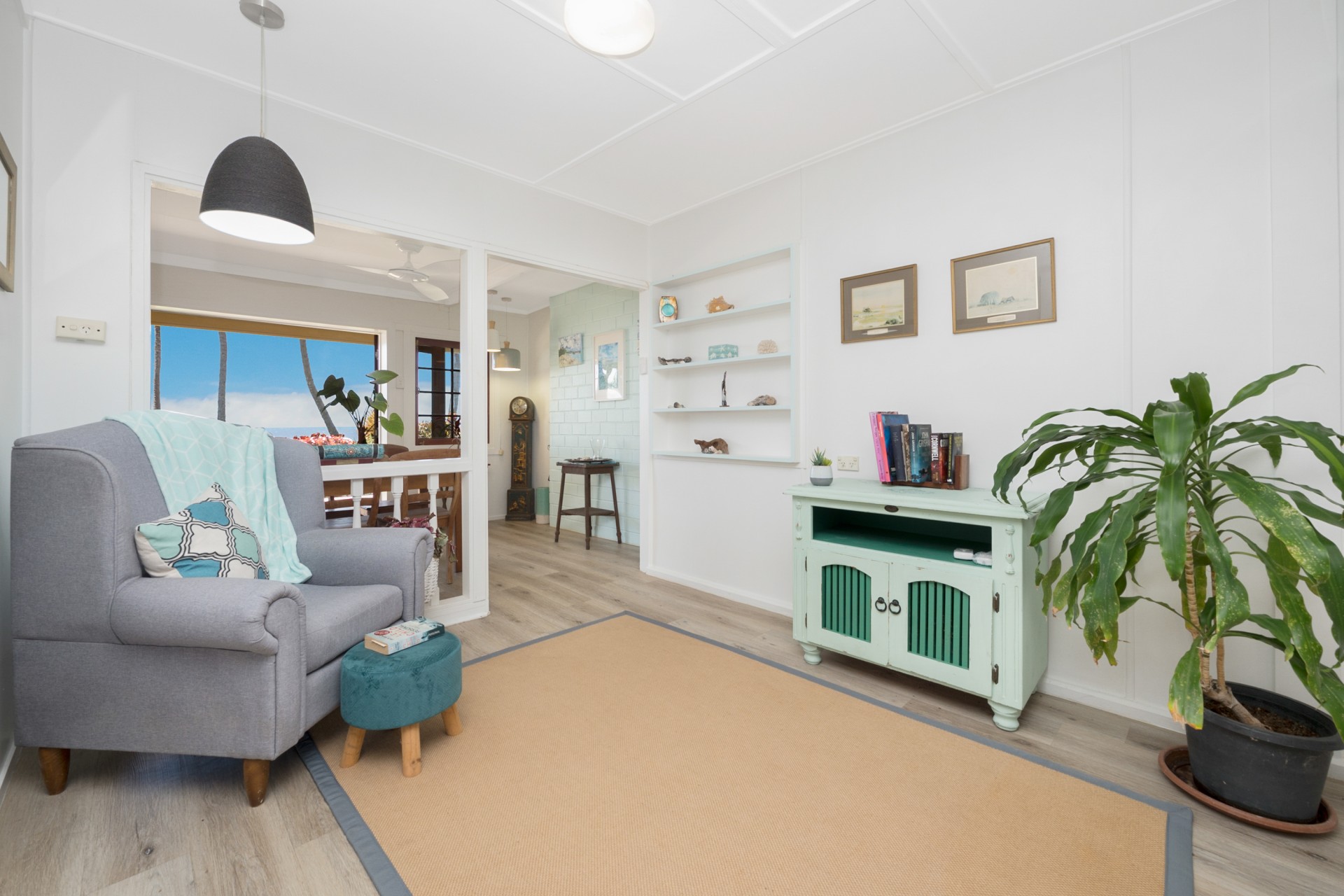 The roof was upgraded and replaced in 2020 to meet contemporary cyclone requirements and this lowset, block home (no steps) has a very bright, open kitchen, lounge and dining area, looking out to the covered verandah and straight out, through the coconut trees, to the sea and islands beyond. Take advantage of the verandah as your front row seat to watch the dolphins play in the bay.