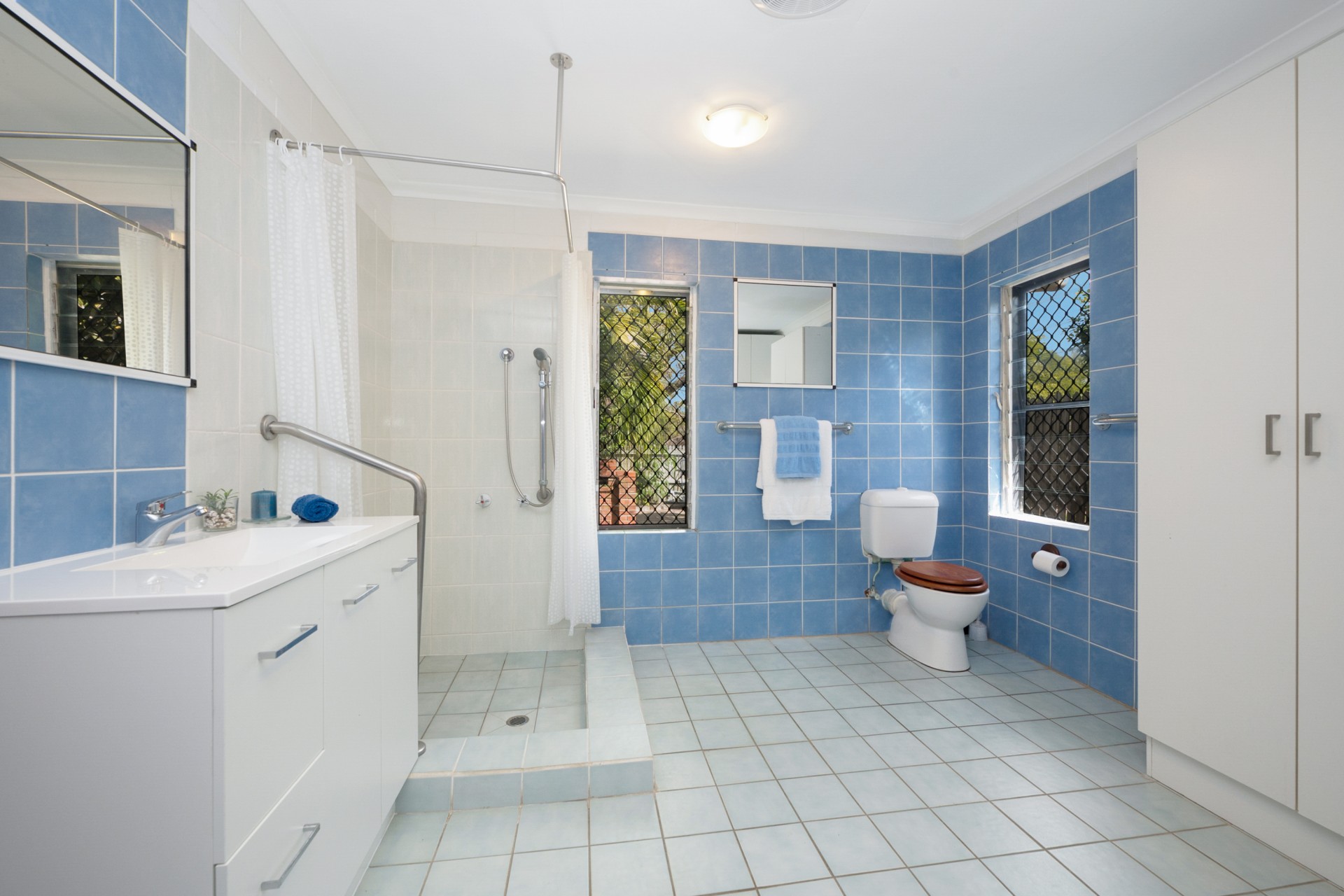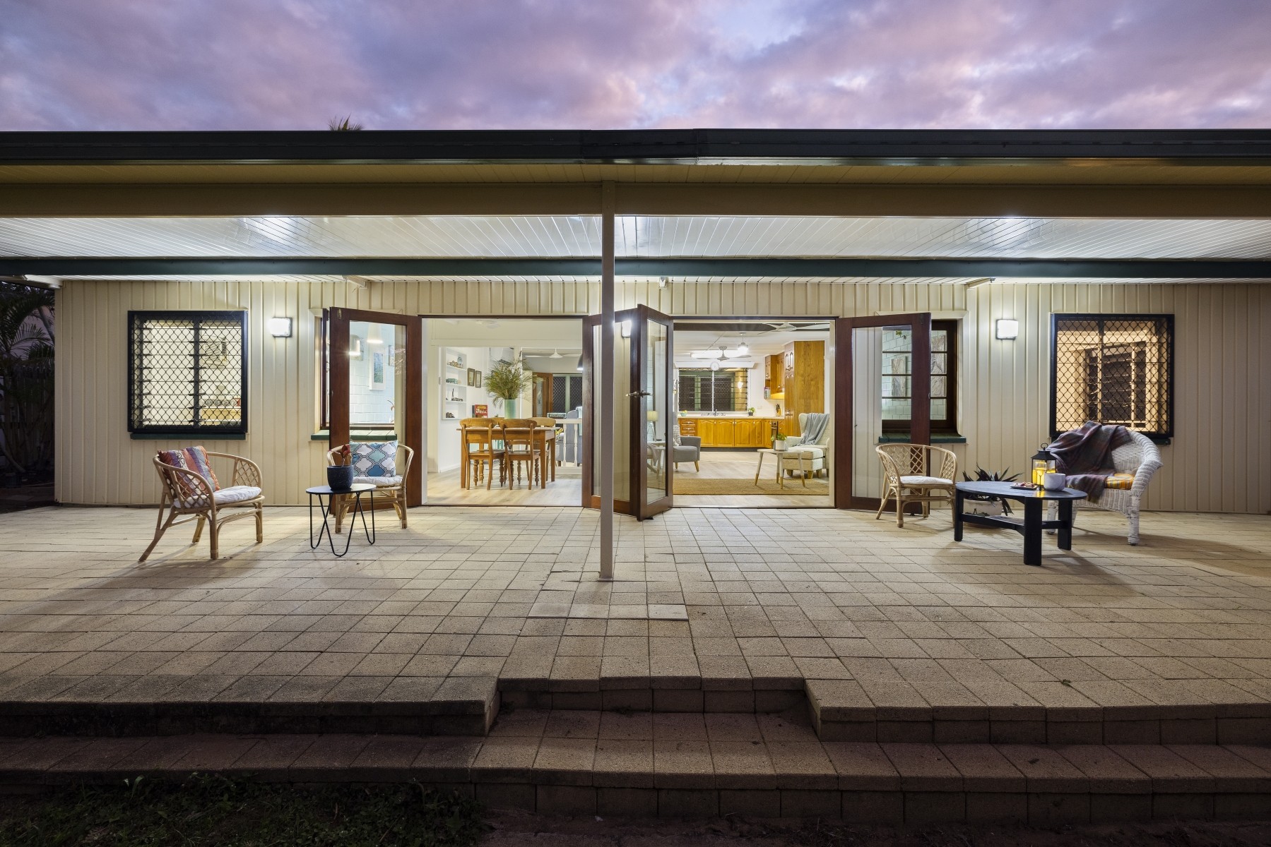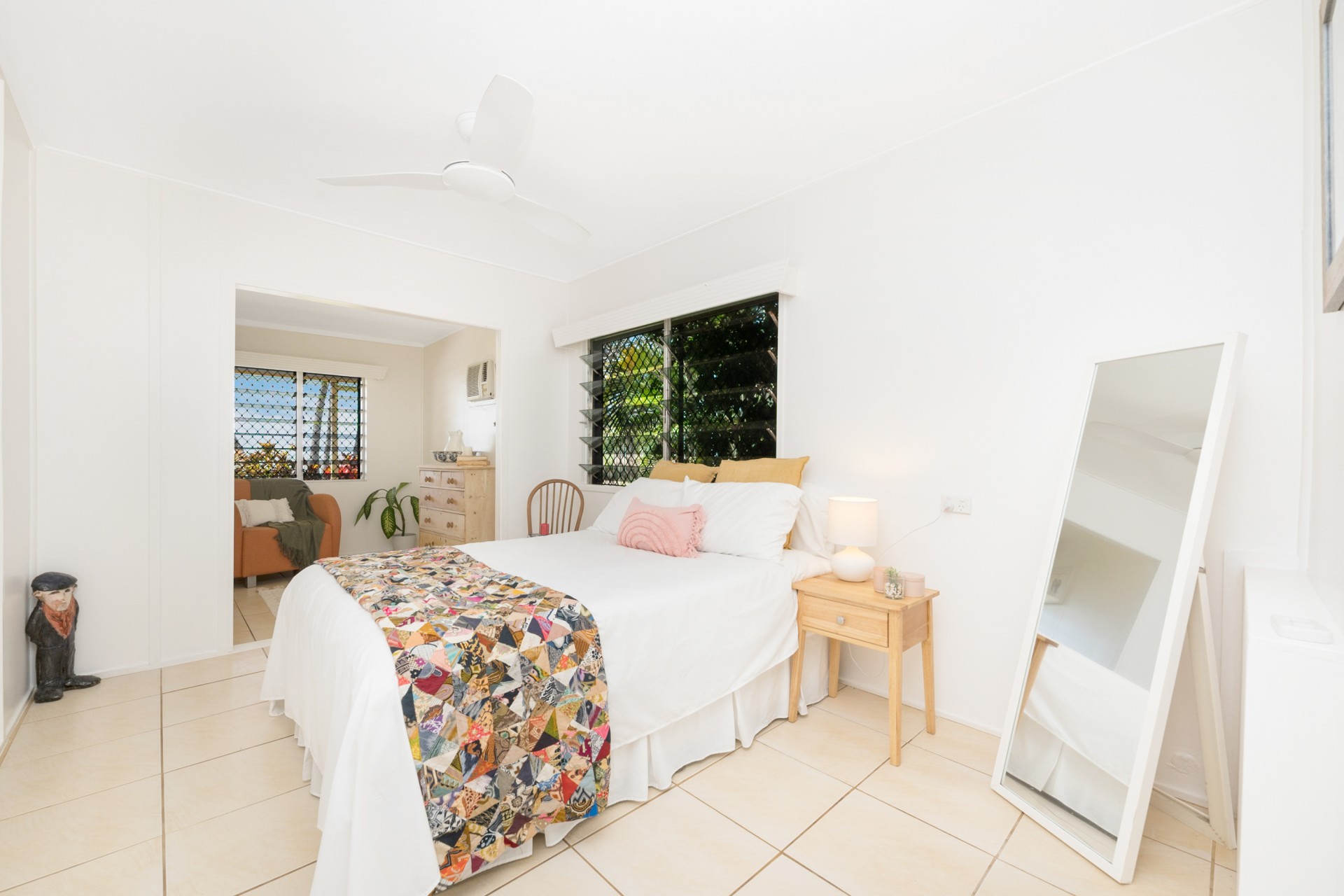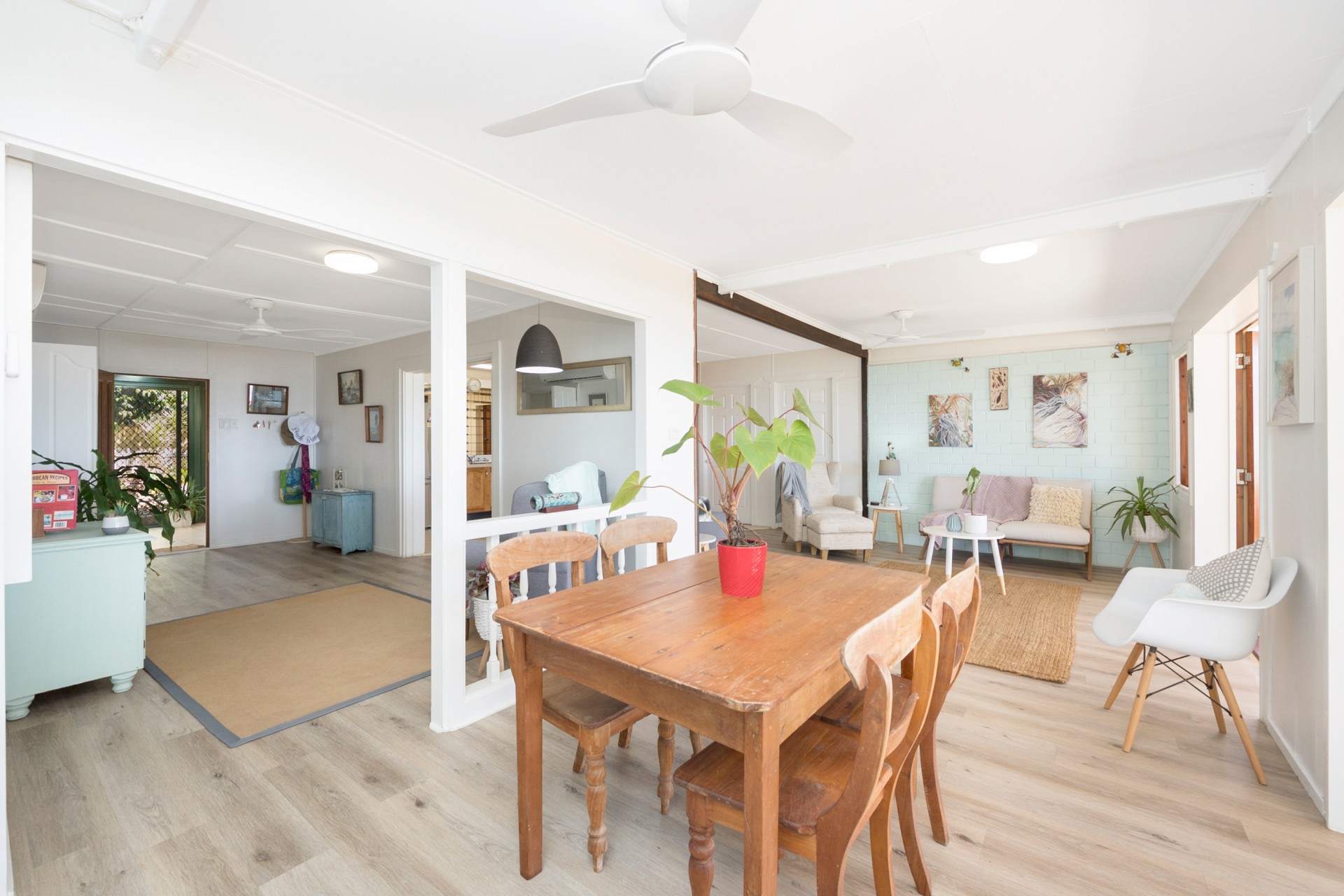 The roof was upgraded and replaced in 2020 to meet contemporary cyclone requirements and this lowset, block home (no steps) has a very bright, open kitchen, lounge and dining area, looking out to the covered verandah and straight out, through the coconut trees, to the sea and islands beyond. Take advantage of the verandah as your front row seat to watch the dolphins play in the bay.