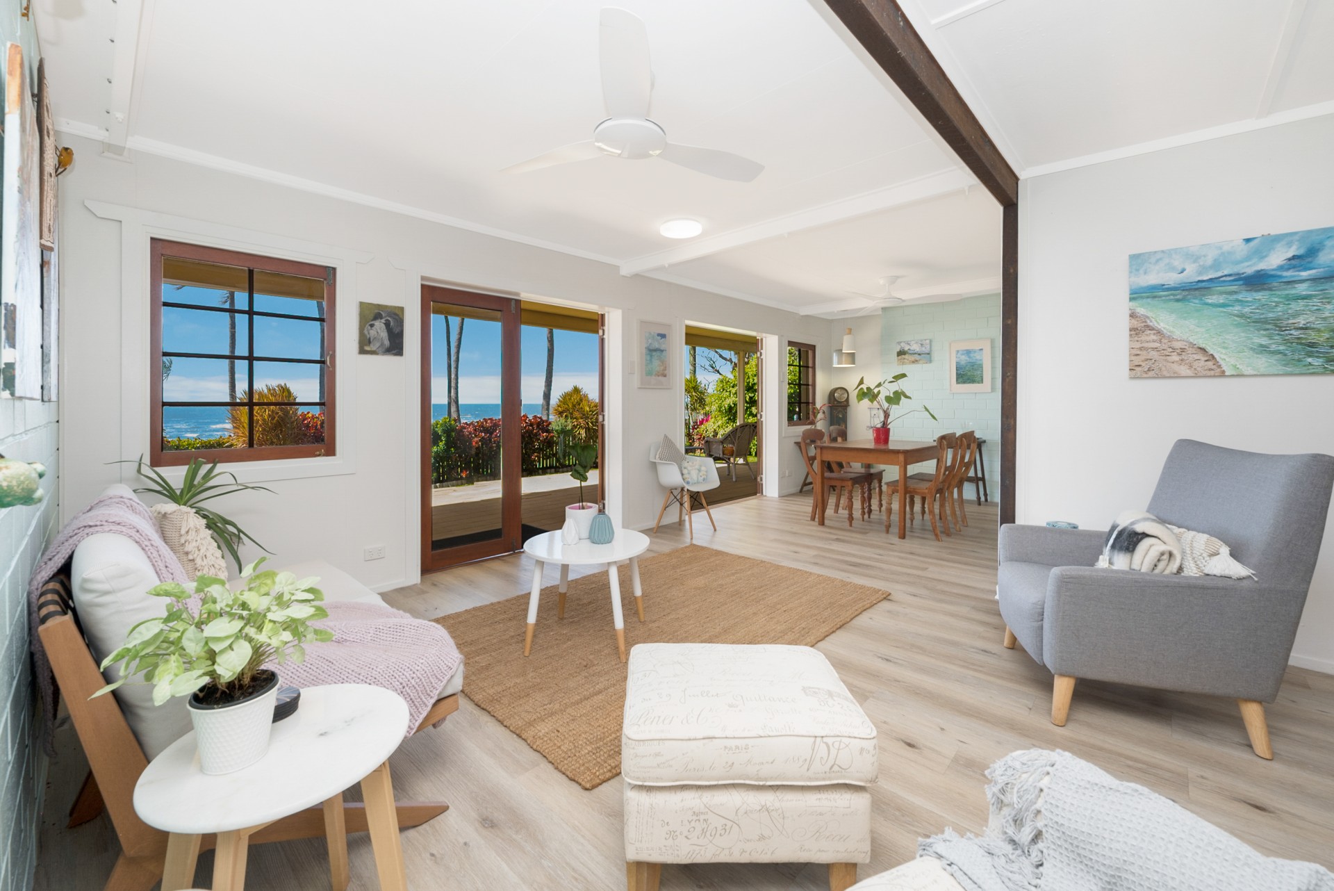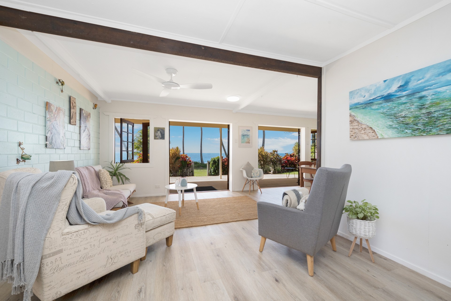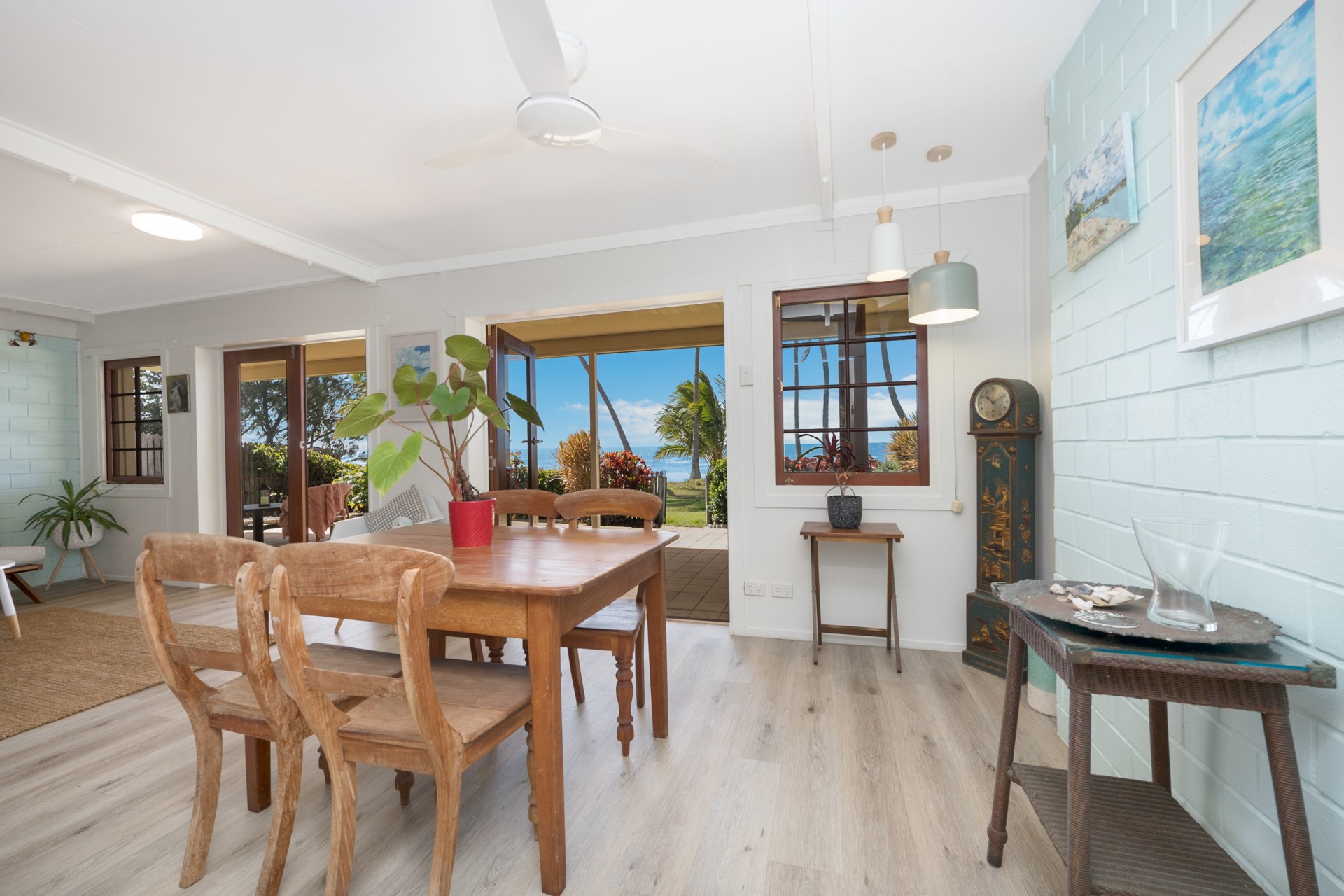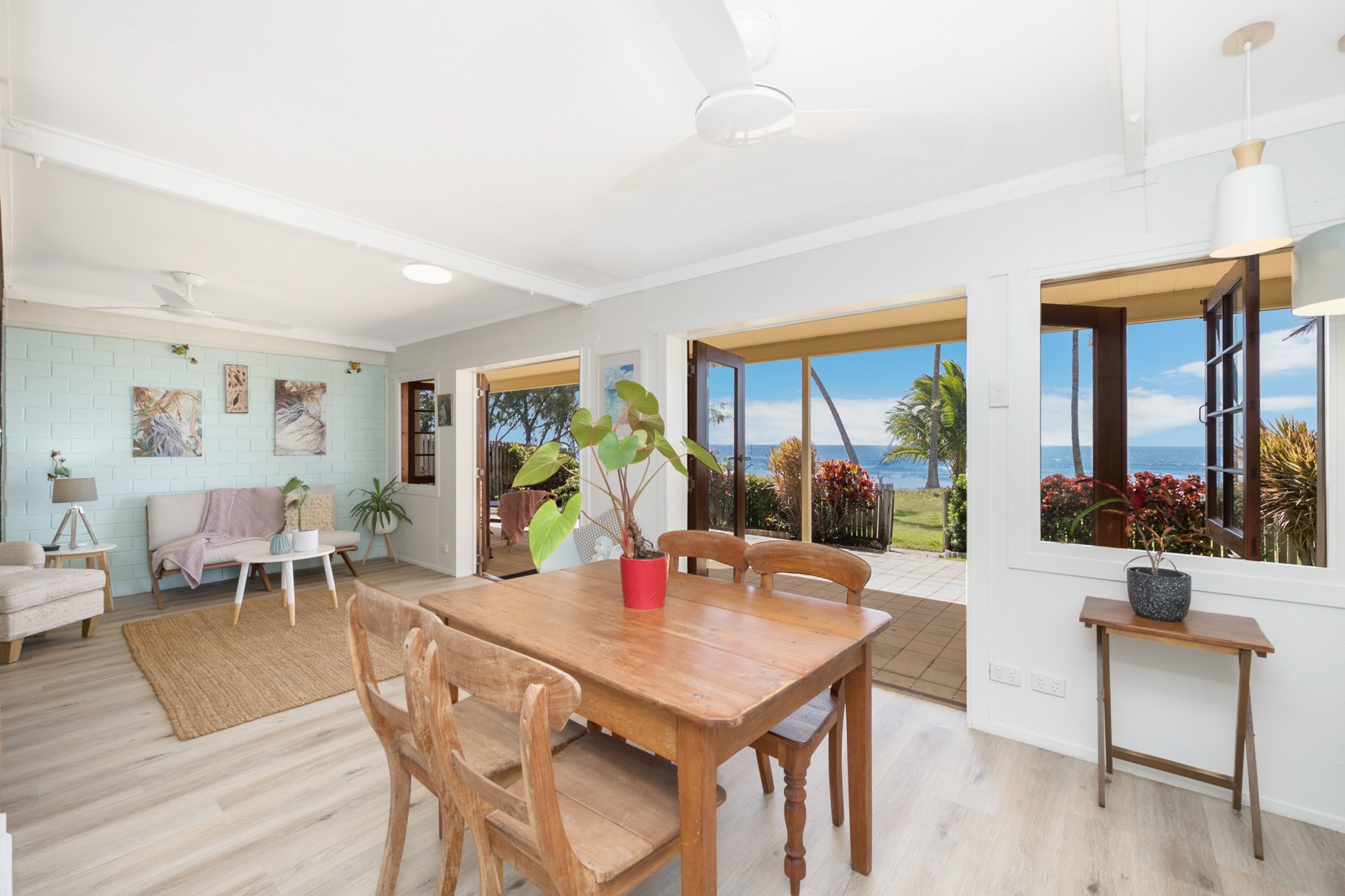 This 3 bedroom, 2 bathroom home on absolute beachfront in the small, secluded, welcoming and sought after community of Saunders Beach is ideal as a family home, retirees dream or holiday getaway. It is recently refurbished to provide a light, bright, coastal residence with just the garden gate between you and Townsville's best beach, with boat ramp nearby.