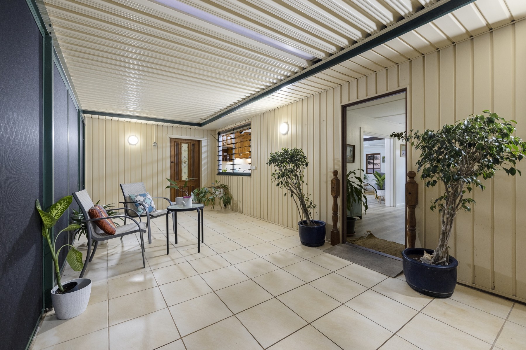 The home is air-conditioned, with fans and screens throughout. There is a large, fully screened, enclosed patio, ideal for entertaining. The low maintenance, established gardens are fully irrigated, managed by computer, with the facility controlled by an app on your phone for convenient customising even whilst you're away.