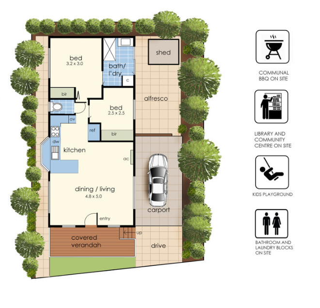 Balcony/Patio/Terrace, Garden Shed, Close to Parklands, Close to Shops, Near Waterfront, Quiet Location, Retirement Property, Air Conditioning, Courtyard, Secure Parking