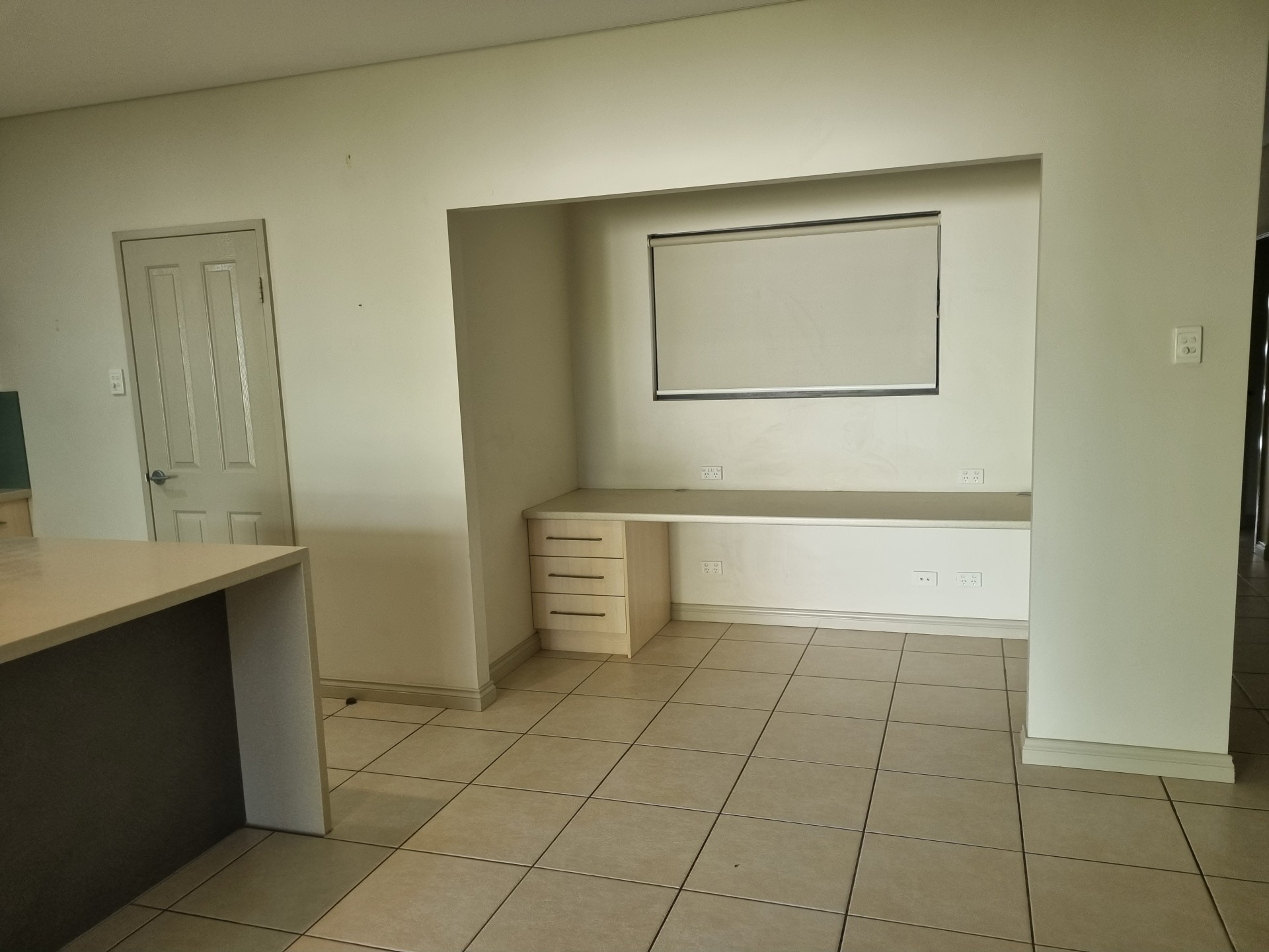 The house has an open plan living area with large lounge that flows through to the kitchen/meals area. The modern kitchen features a large island bench with undermount sink and a large walk in pantry. The living area also features a study nook with built in desk.