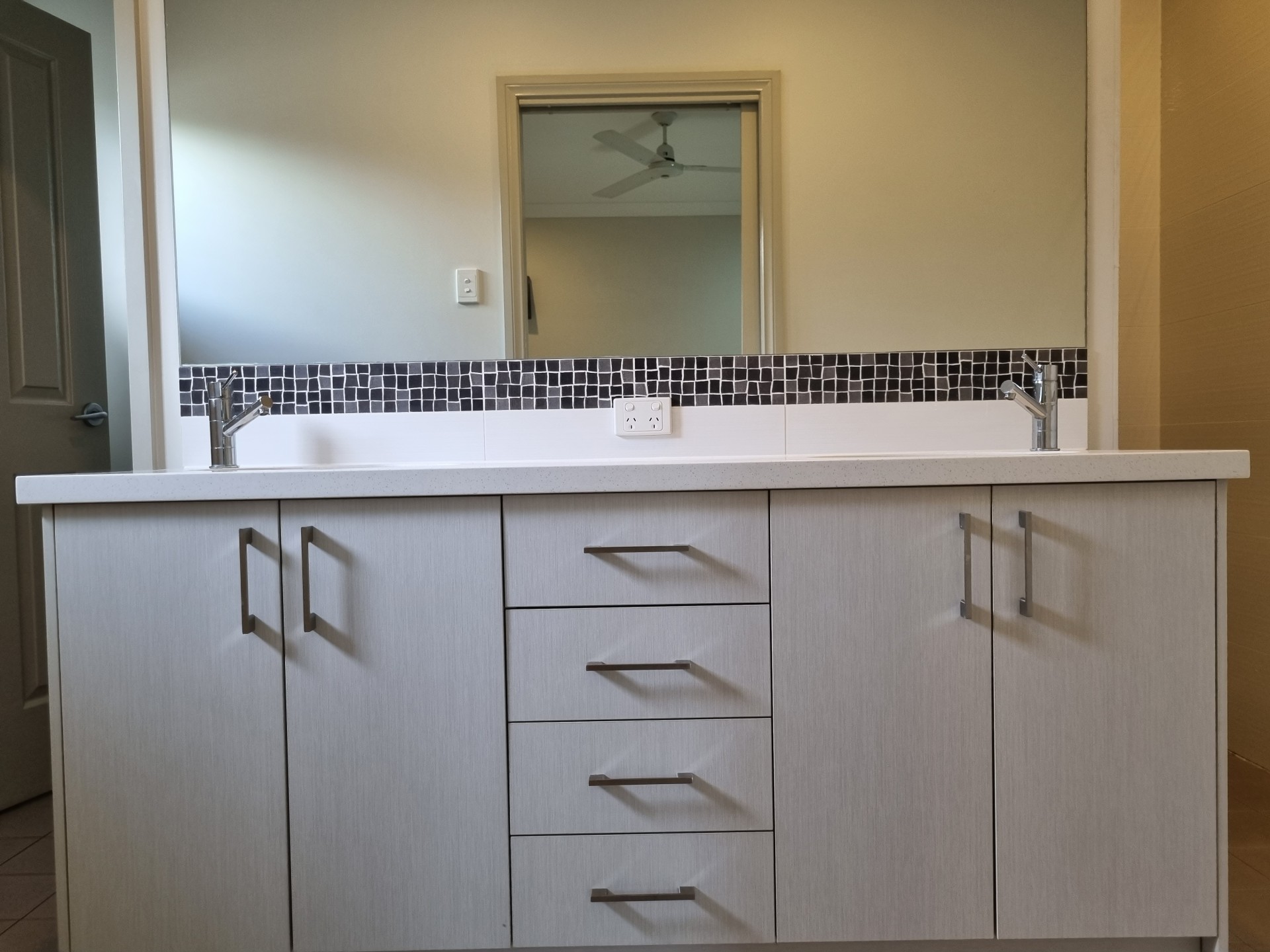 The master bedroom, located to the front of the house, is roomy with good natural light and built in robes. The room flows through to the ensuite with his and hers vanity and separate toilet.