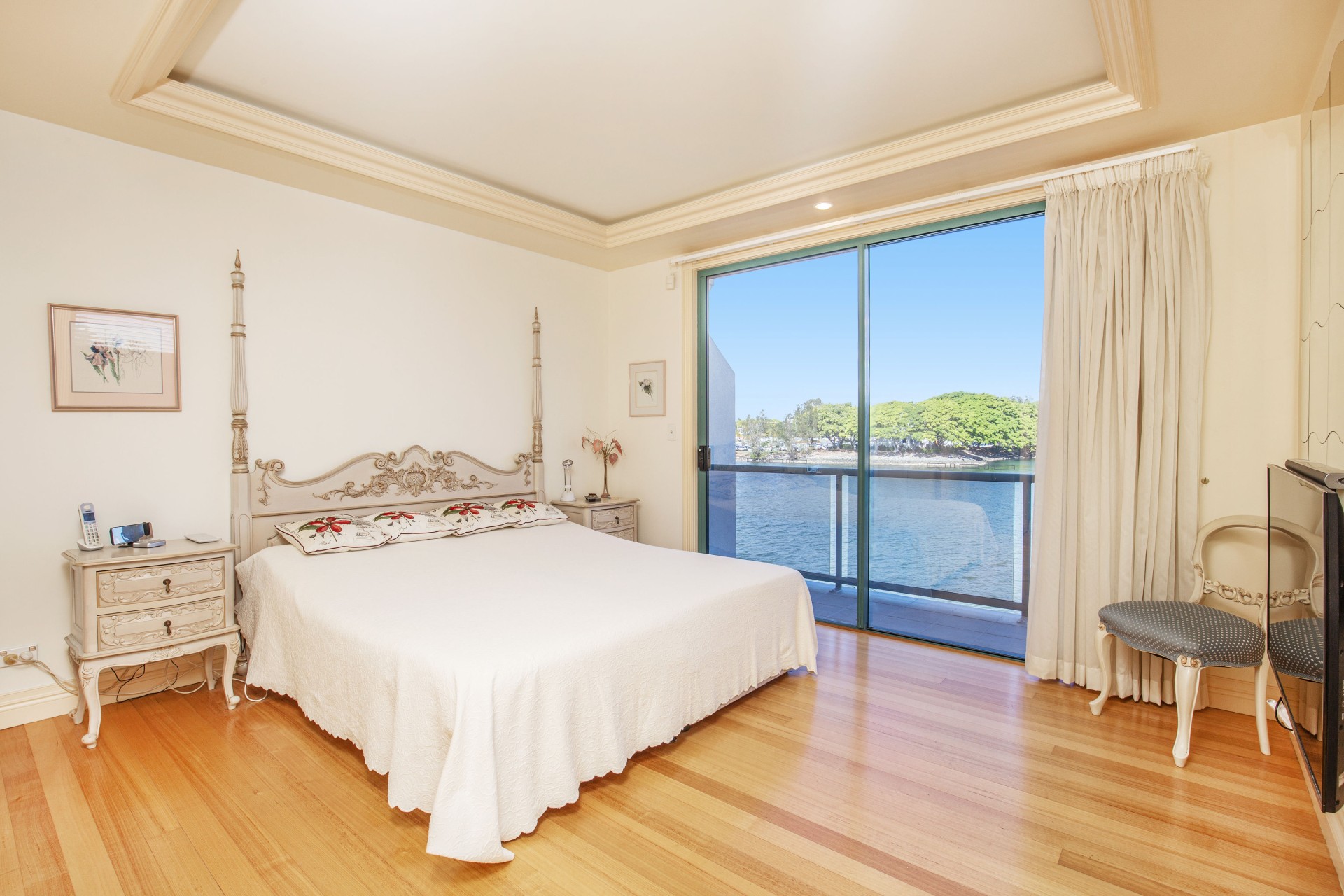 View is over mature trees & a sandy beach across the river. Property is not overshadowed or overlooked by residential High-rise buildings. View cannot be impeded. Concealed external storage.