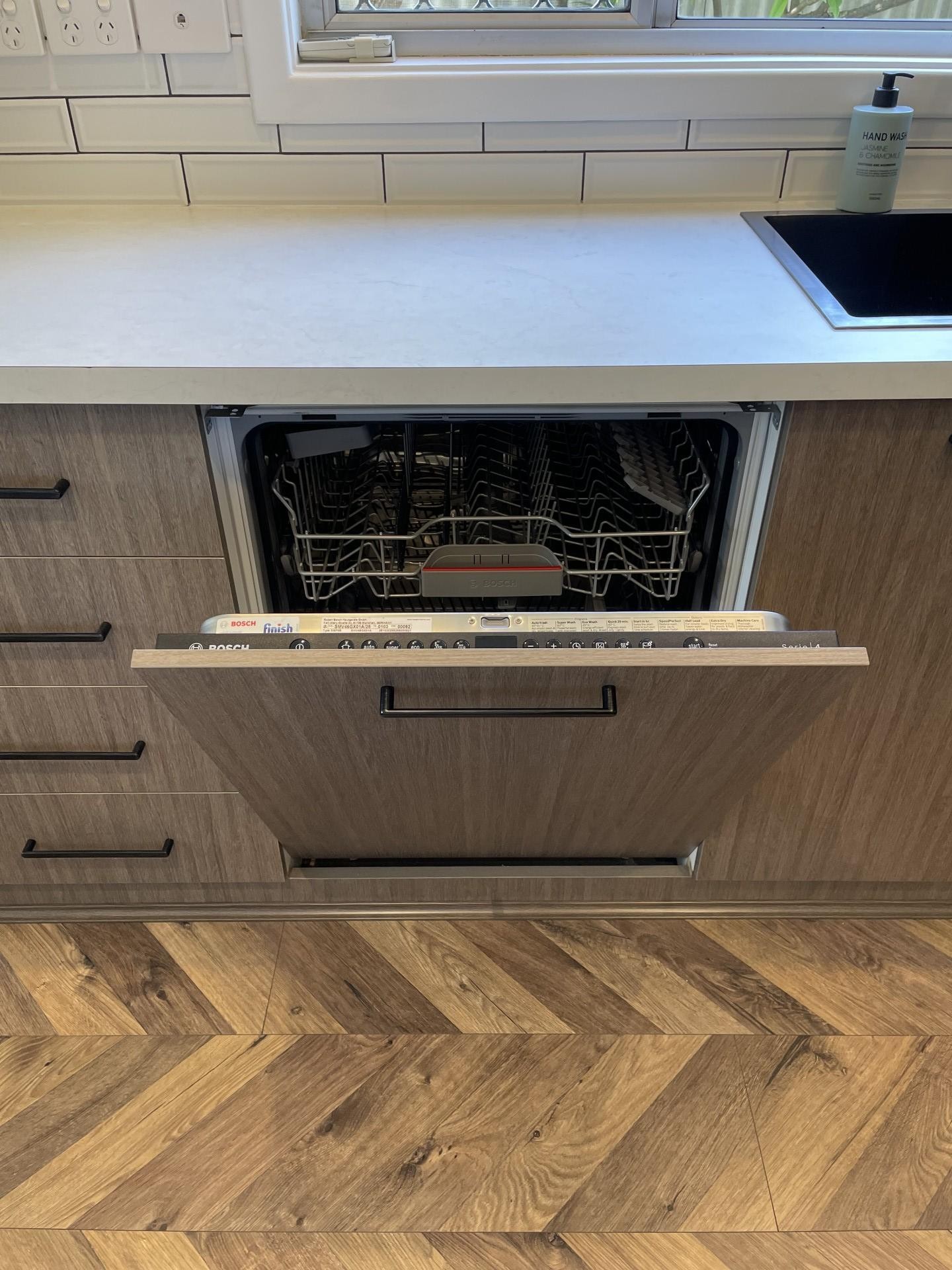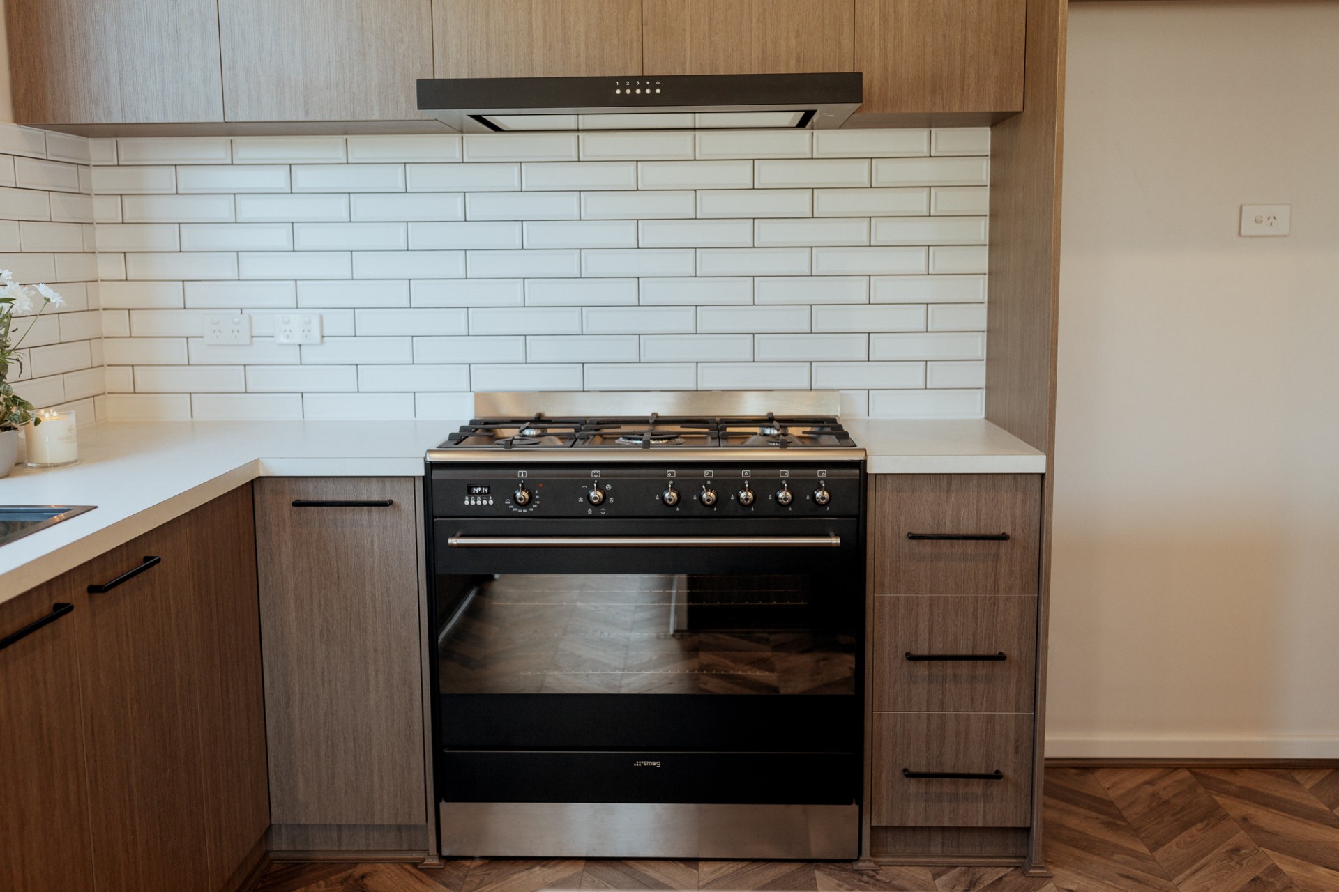 Spacious kitchen that boasts abundant storage, brand new quality appliances and modern styling including Smeg gas/electric oven and intergrated dishwasher