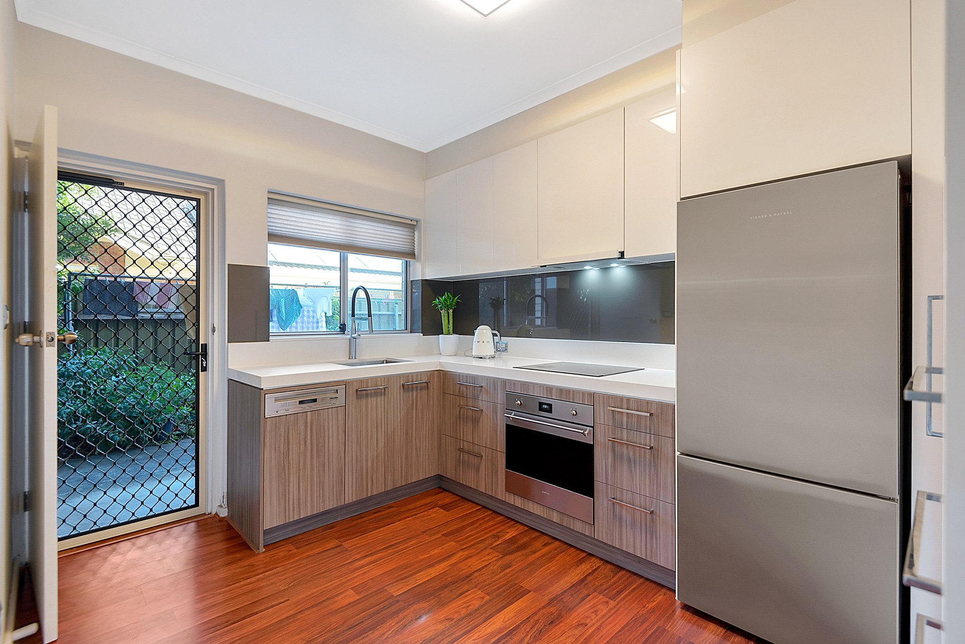 The spacious living area accompanies an open-concept dining room and Jag kitchen that will elevate your culinary adventures with top-of-the-line Smeg appliances, a Miele dishwasher for effortless clean-up, an expansive walk-in pantry, and a hi-flo filter tap with water plumbing.