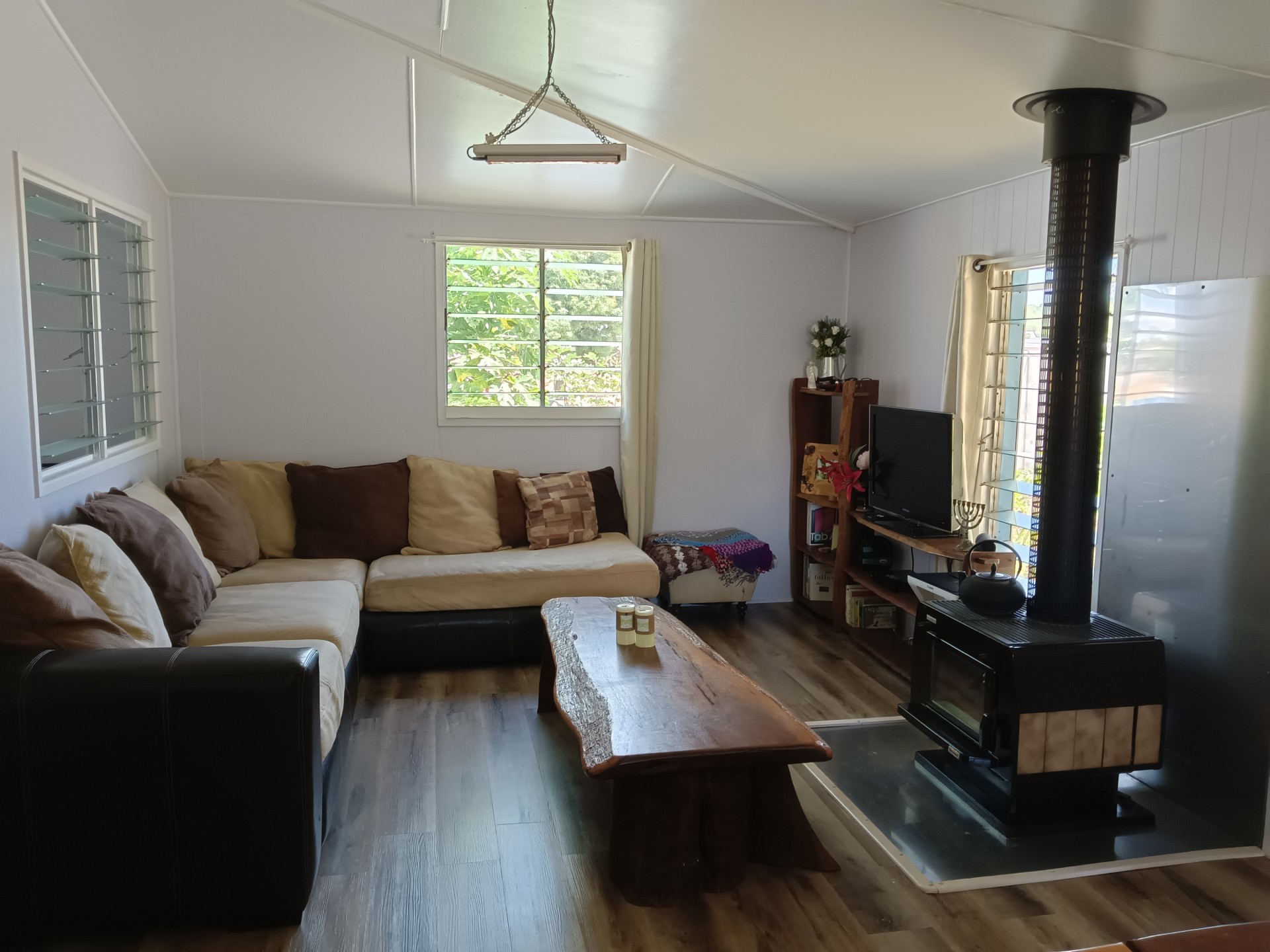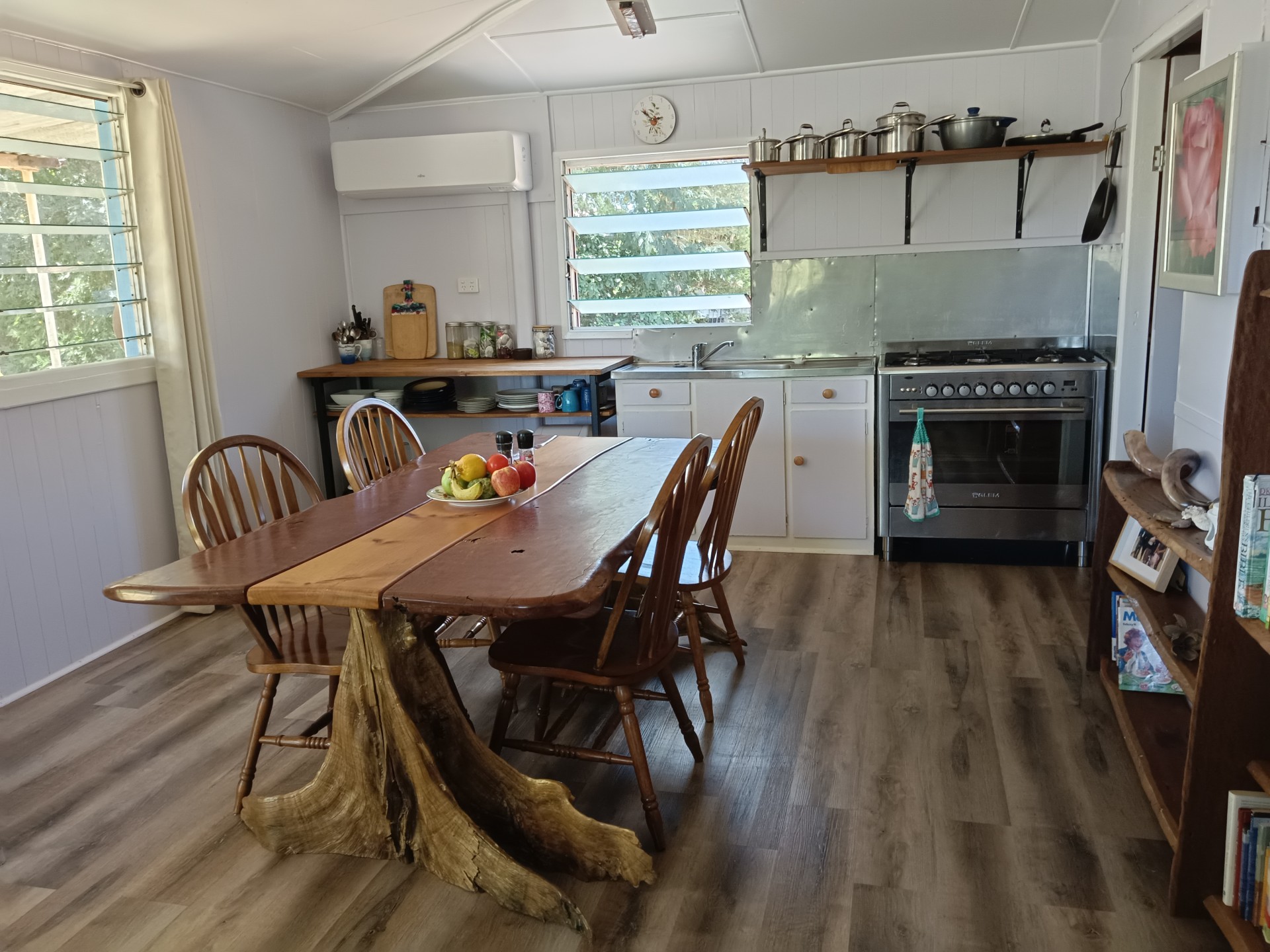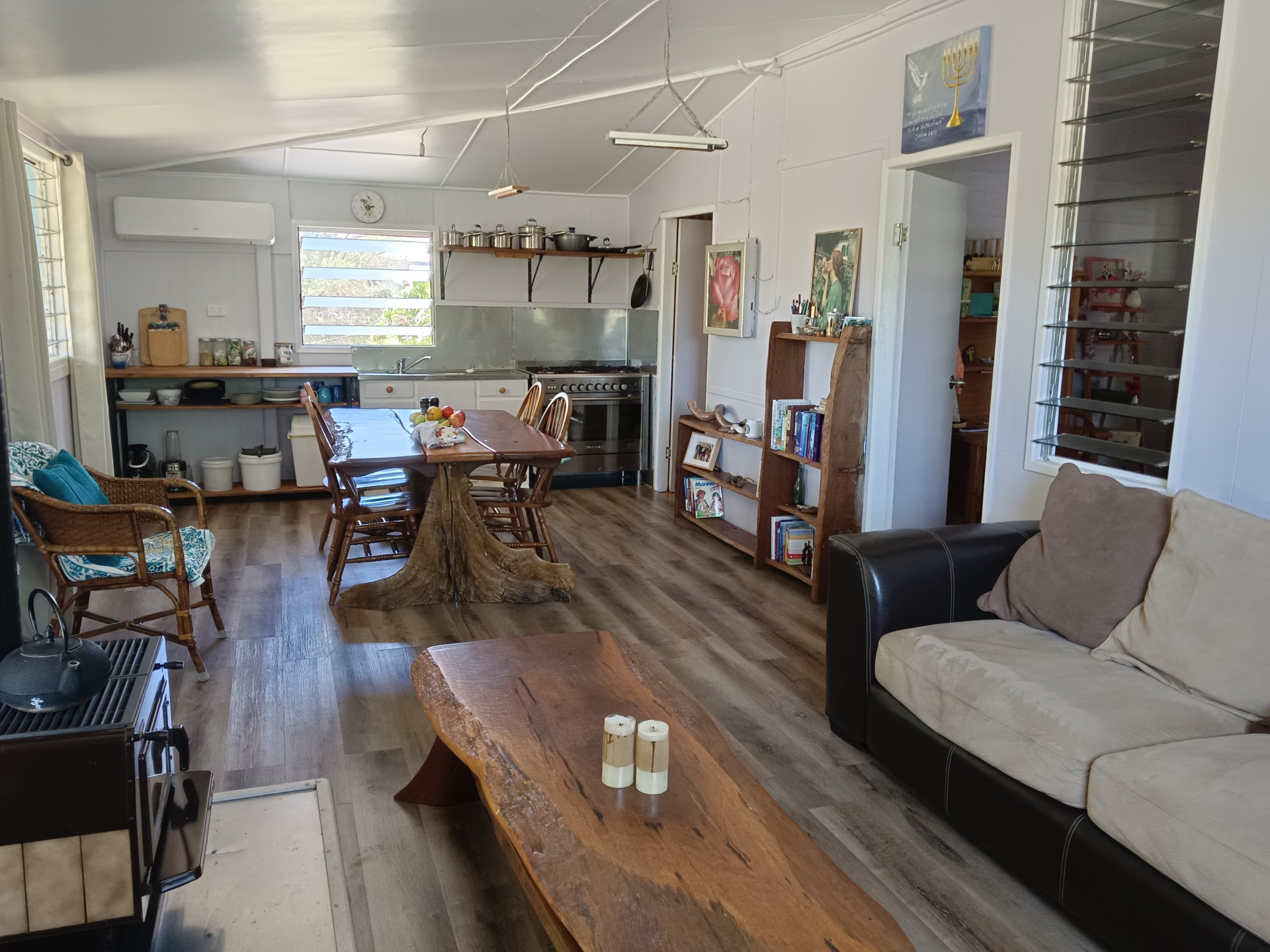 House - 3 bedroom, mostly-renovated, split system aircon, fireplace with cooking trivets, small off-grid solar system, gas hot water, 900mm gas/electric cooker, fully furnished including unique hand-crafted timber furniture