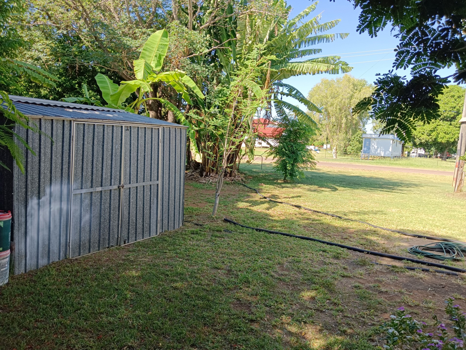Open sunny position for greenhouse/veggie growing (abundant vegetables have been grown here in Torrens Creek including pumpkin, white/purple sweet potato, all green leafies, cabbage, broccoli, cauliflower, carrots, ginger, tumeric, herbs, cucumbers, tomatoes, etc.