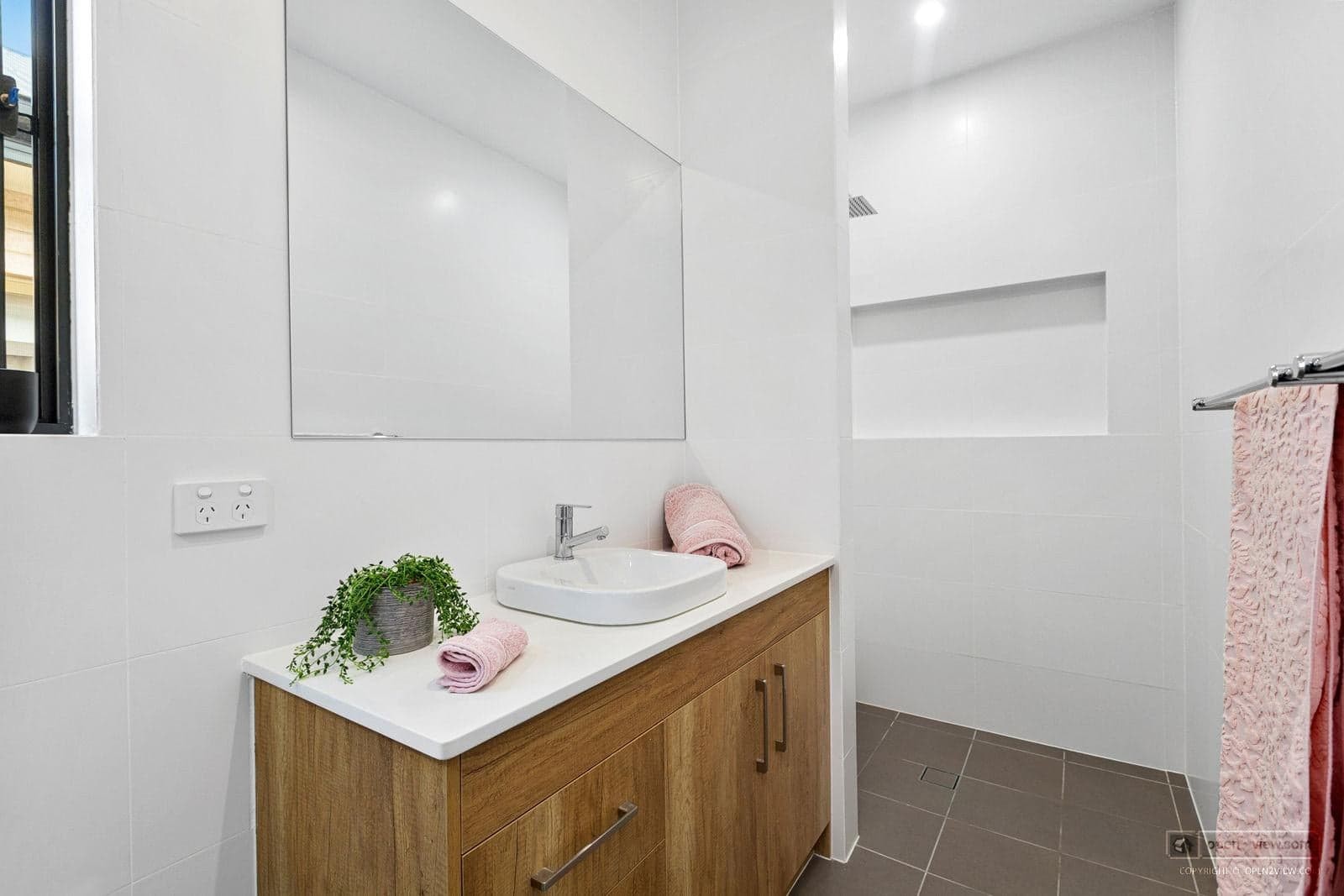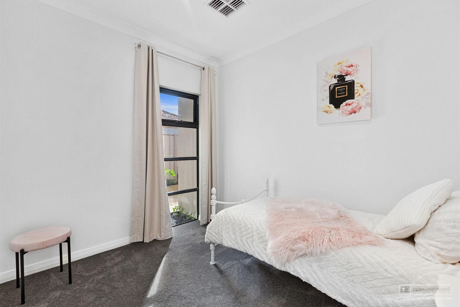 The master bedroom boasts a walk-in robe and ensuite. The ensuite is tiled to the ceiling with a stone vanity top, and heating, featuring a large shower.