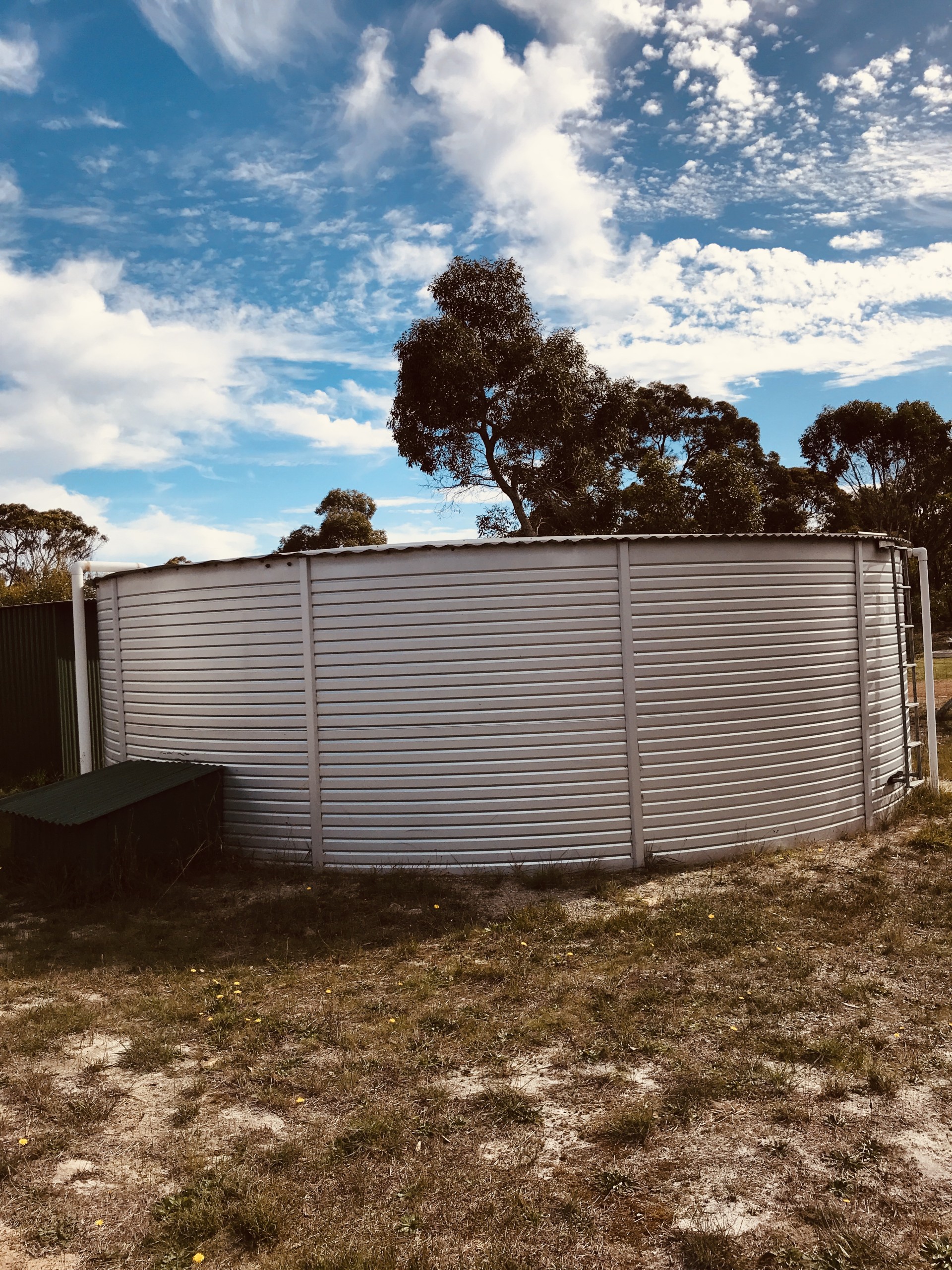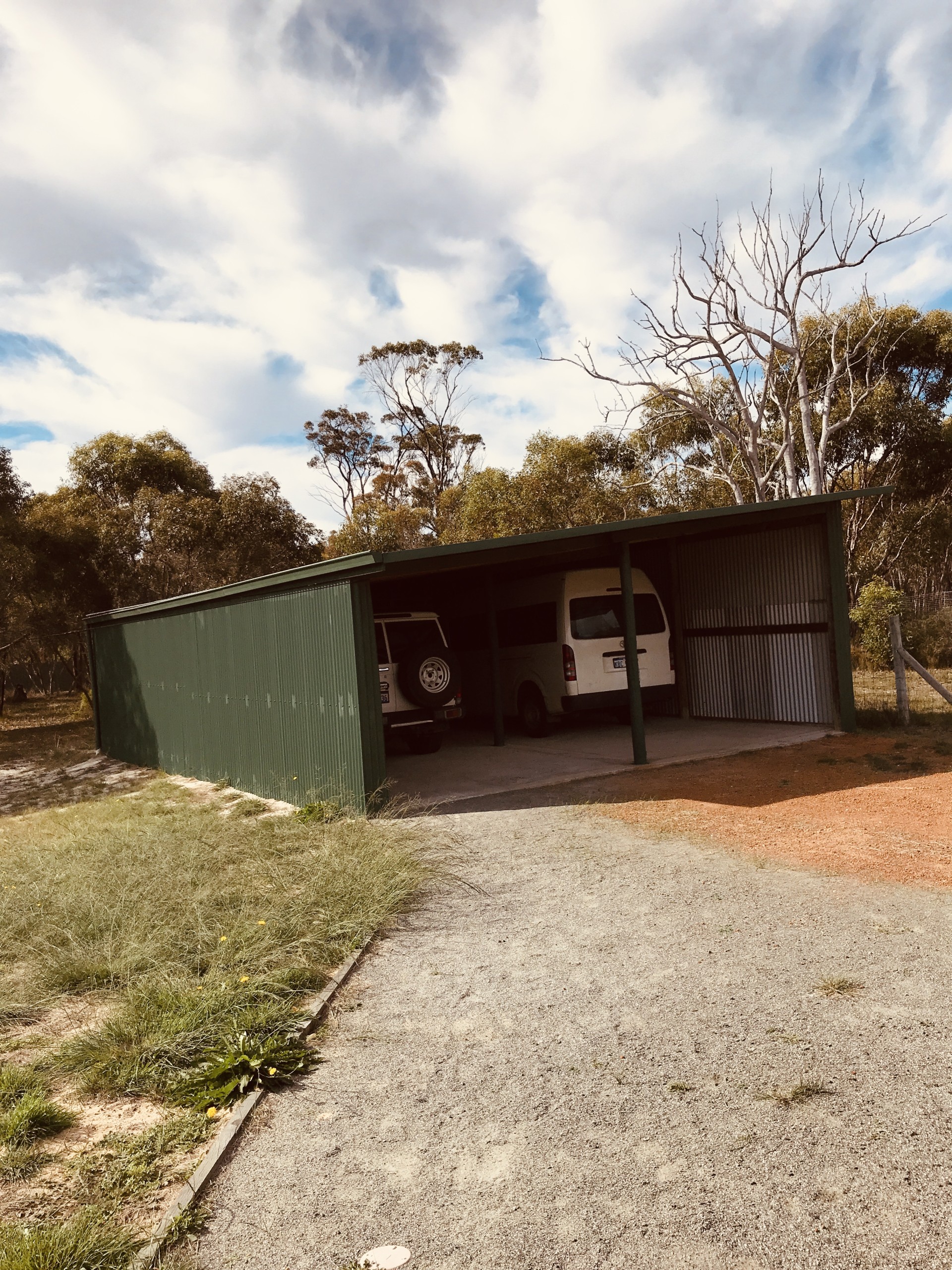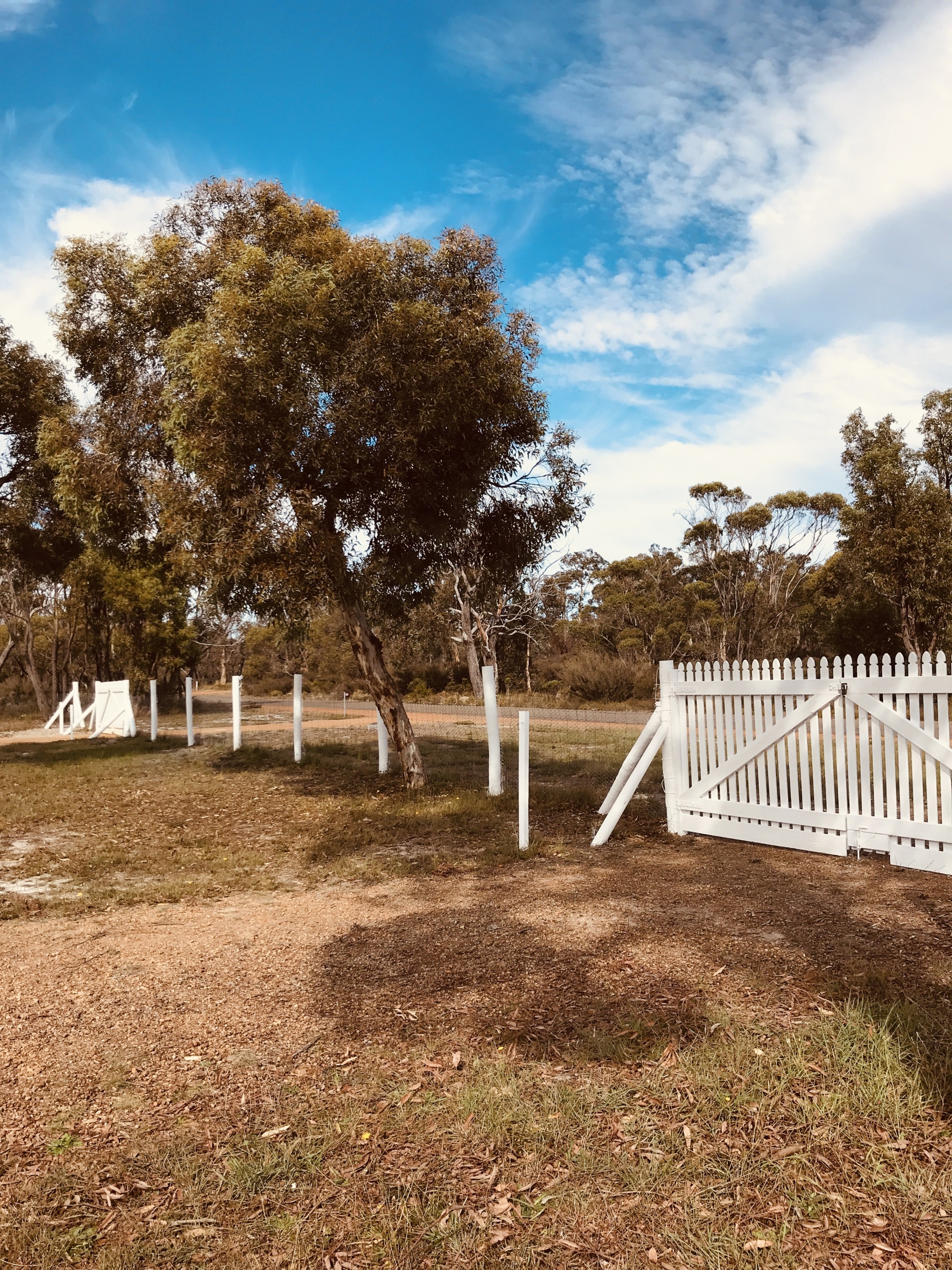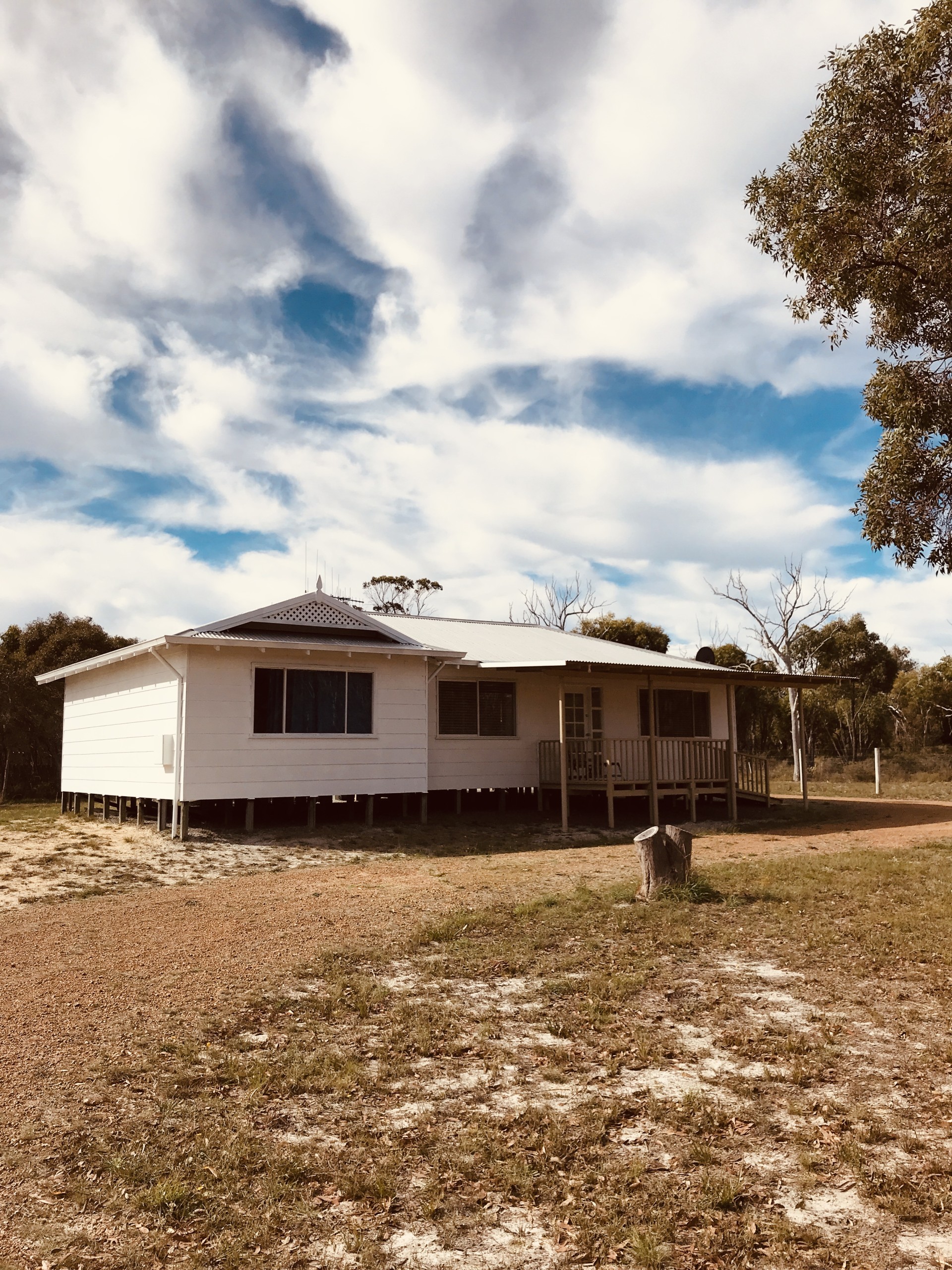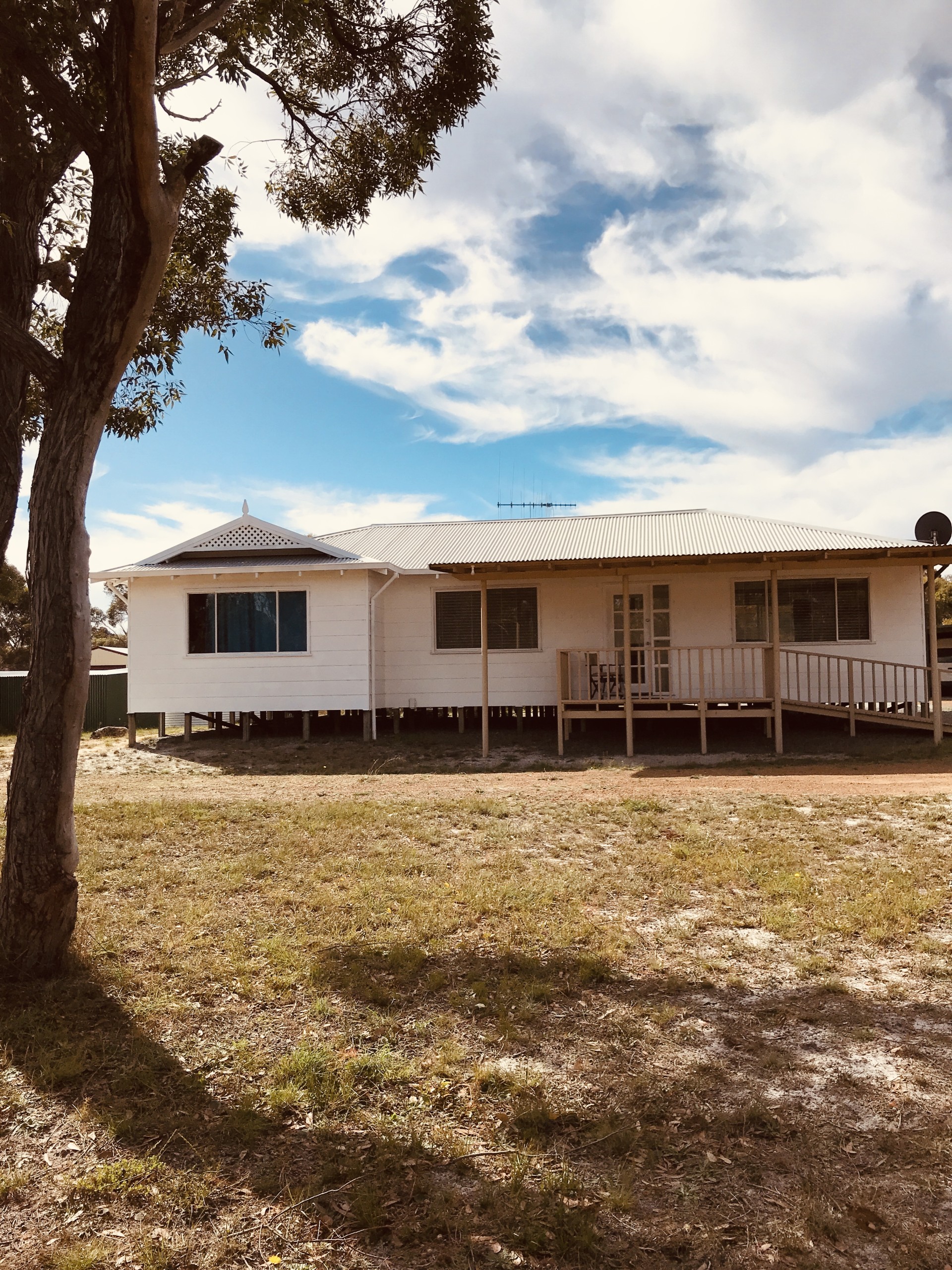 This gorgeous 3 bed/1 bath home was built in 2007. Its only owner from New has maintained everything in as-new condition, including currently undertaking the white external paint job. You have to like white! There is a massive kitchen/dining/lounge open-plan living area. There are 3 large bedrooms and a fabulous, large bathroom with shower, bath, basin and WC - all white! A laundry for wash tub, washer, dryer, spare fridge, etc. Airconditioning. It has 2 covered deck areas. One at the front and one at the back, so you can choose wherever you like best. Both sides have bushland views Lots of birds, a few kangaroos, a fox if you are lucky and wildflowers galore in season. The whole acre is fully fenced to keep pets in and anything unwanted out. Everybody in the community keeps their grass cut low here, so no fire problems. The property has double gates and a circular front drive for larger vehicle access. There's a big enclosed carport for 4 cars and 2 other smaller sheds. The huge water tank (92,000 ltr) means no water bills! Currently near full. This house has the best available concrete gravity septic tank & leach drain system in perfect condition. NBN Internet and Foxtel are connected.