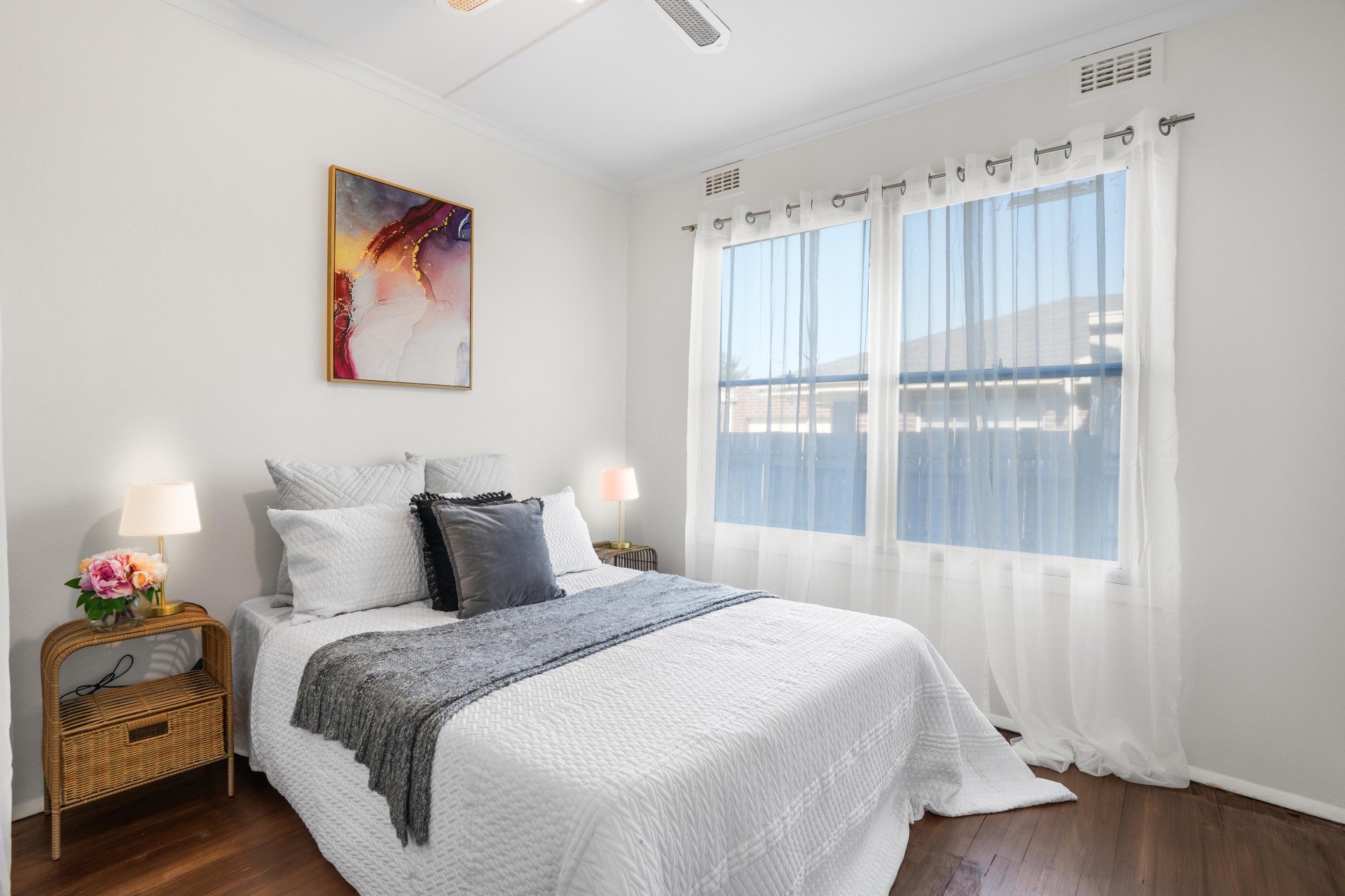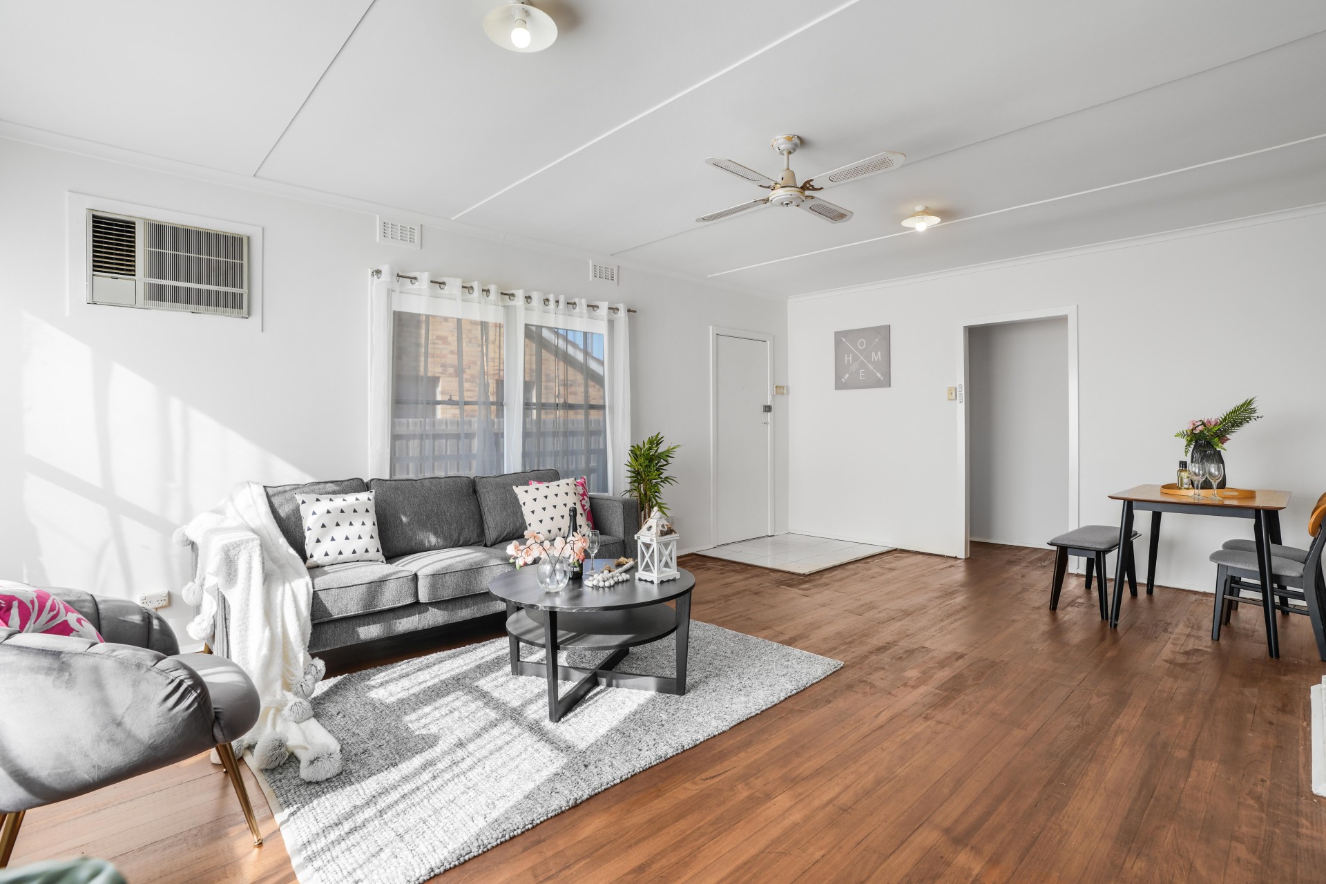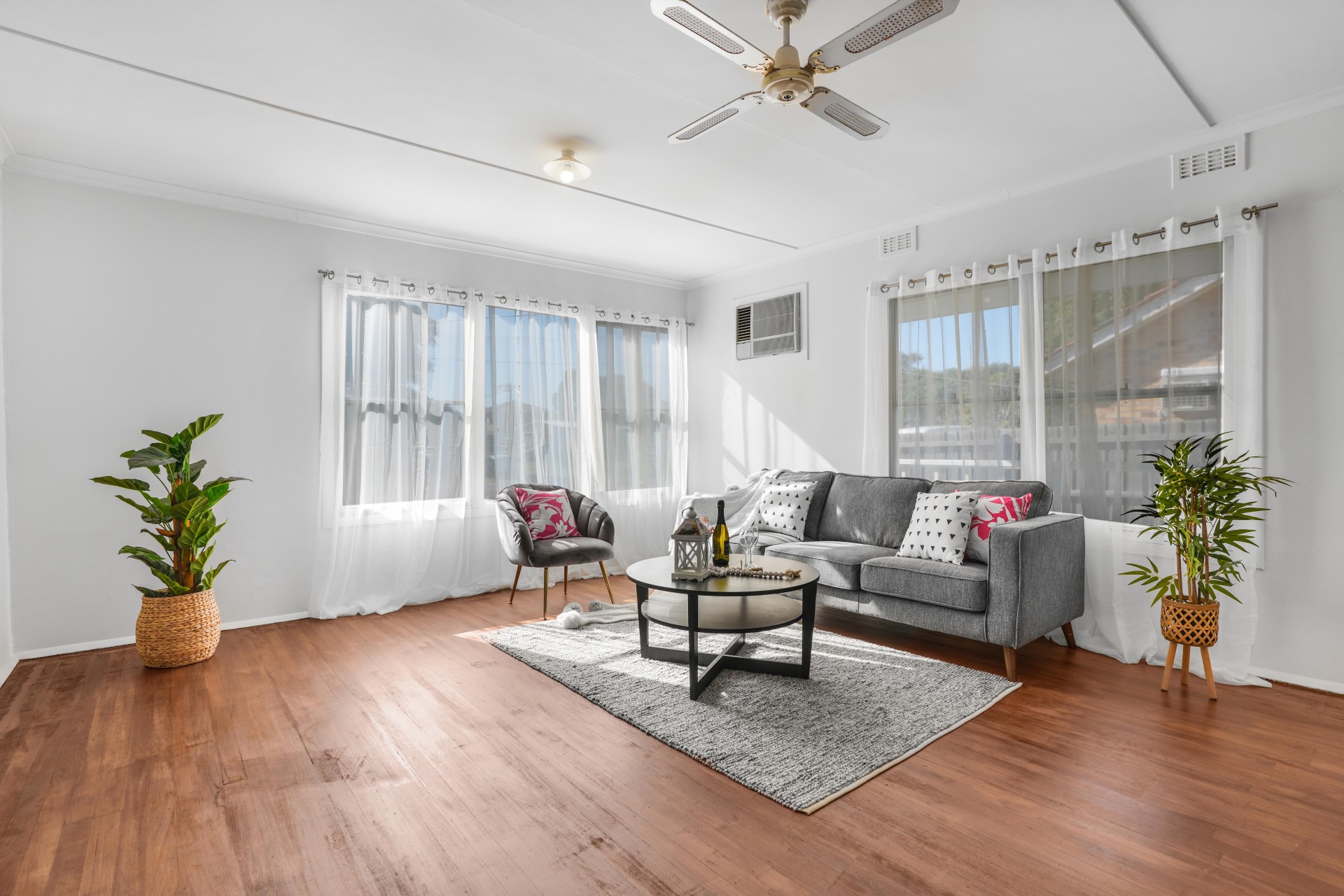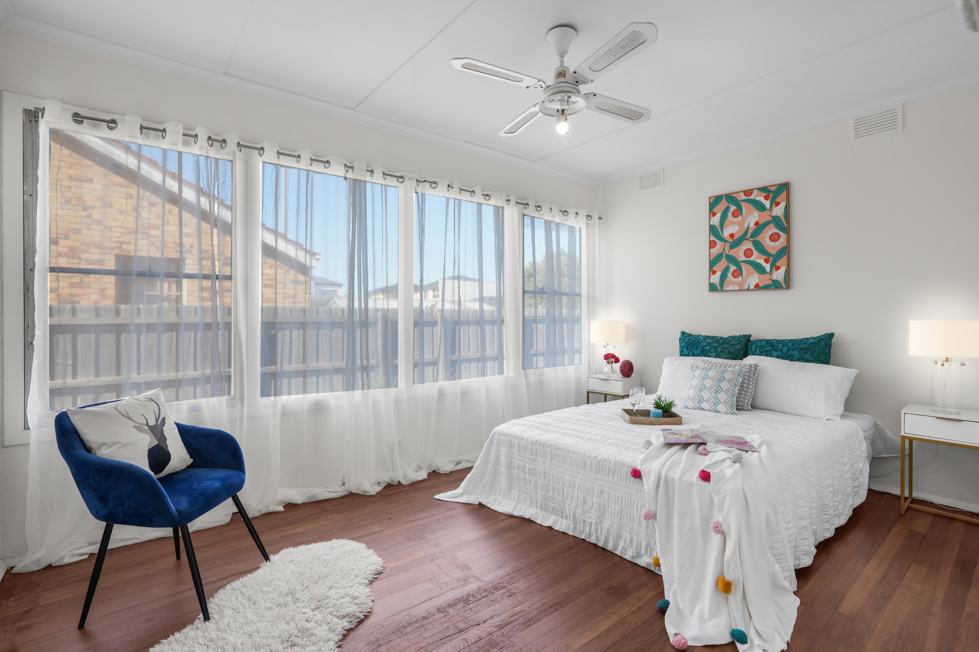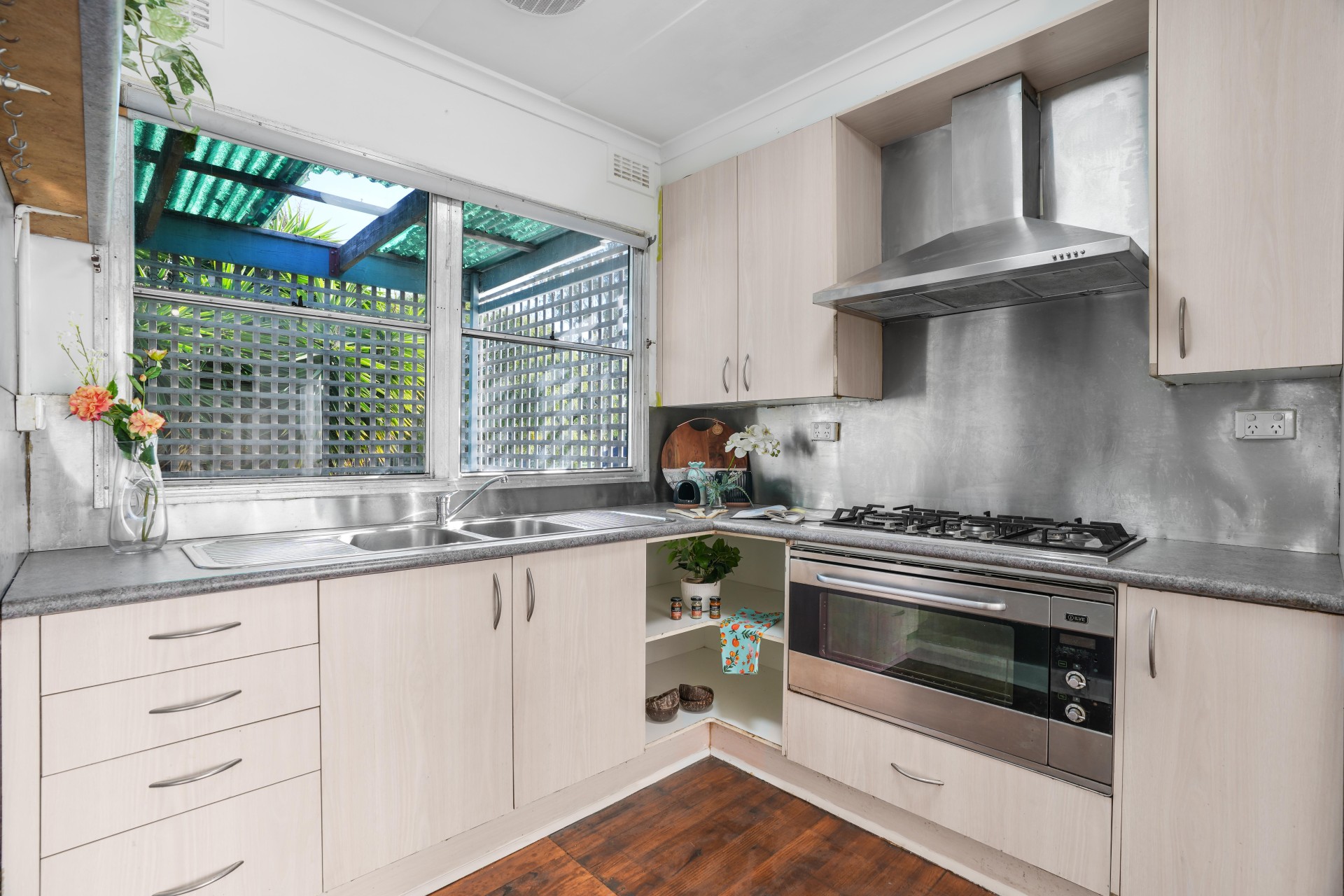 - Polished hardwood timber flooring throughout the house