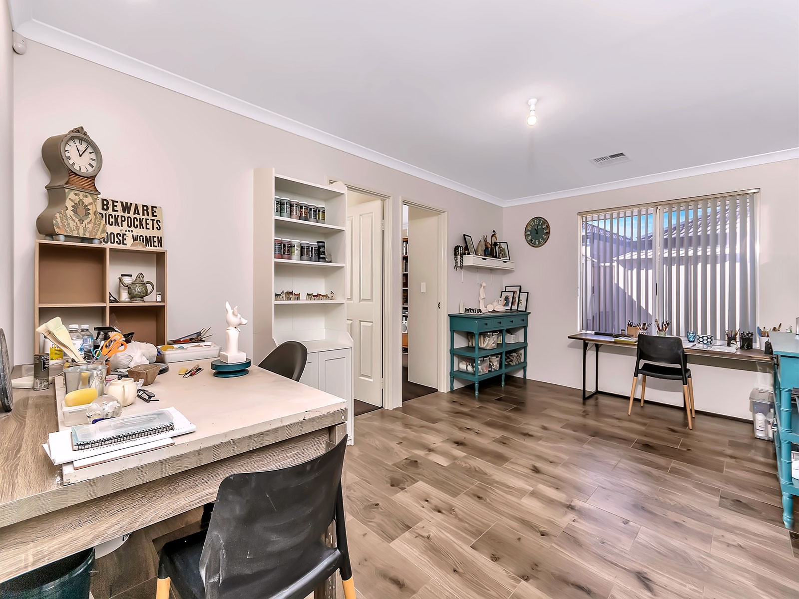 There is storage galore inside, a storeroom in the garage and a newly installed attic ladder, with attic storage and lighting.