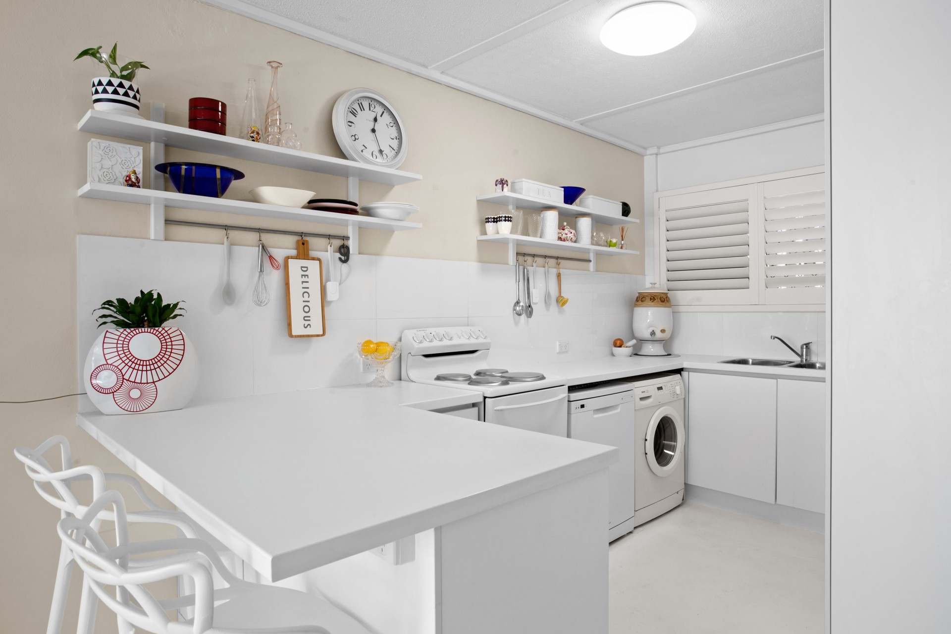 • Dishwasher, washing machine and fridge included.