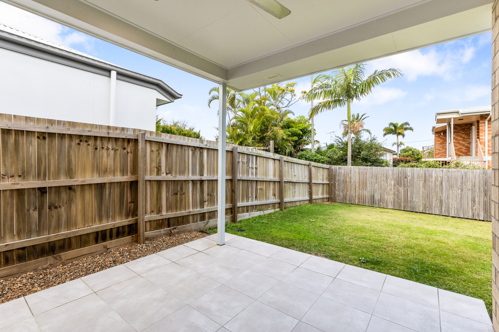 grassed and fenced backyard.