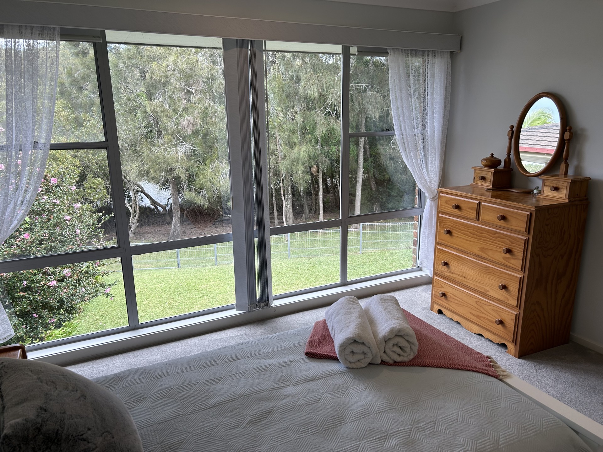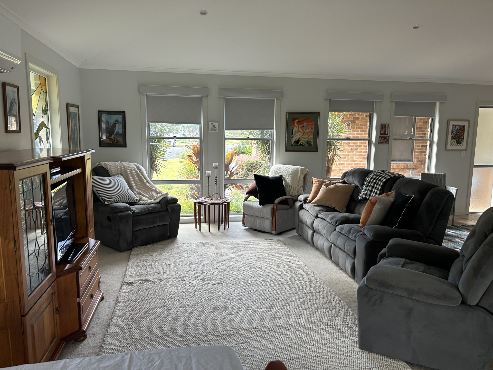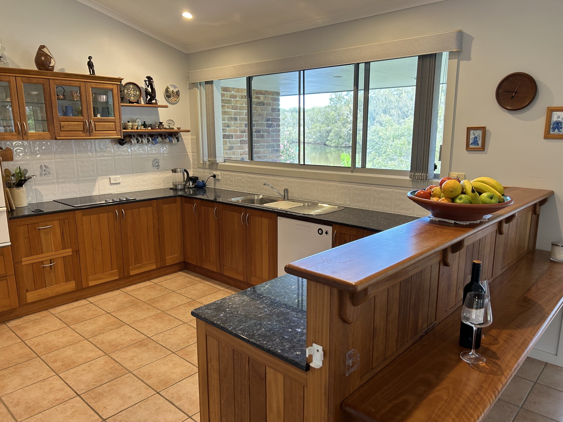High ceilings have been incorporated into an open-plan living area gaining a sense of spaciousness. The large kitchen, with quality stone benchtops, overlooks the pristine Bonville Creek and the dining area opens onto a large deck to further capture the uninterrupted creek views. This is perfect for entertaining or simply relaxing to enjoy the surrounding nature.