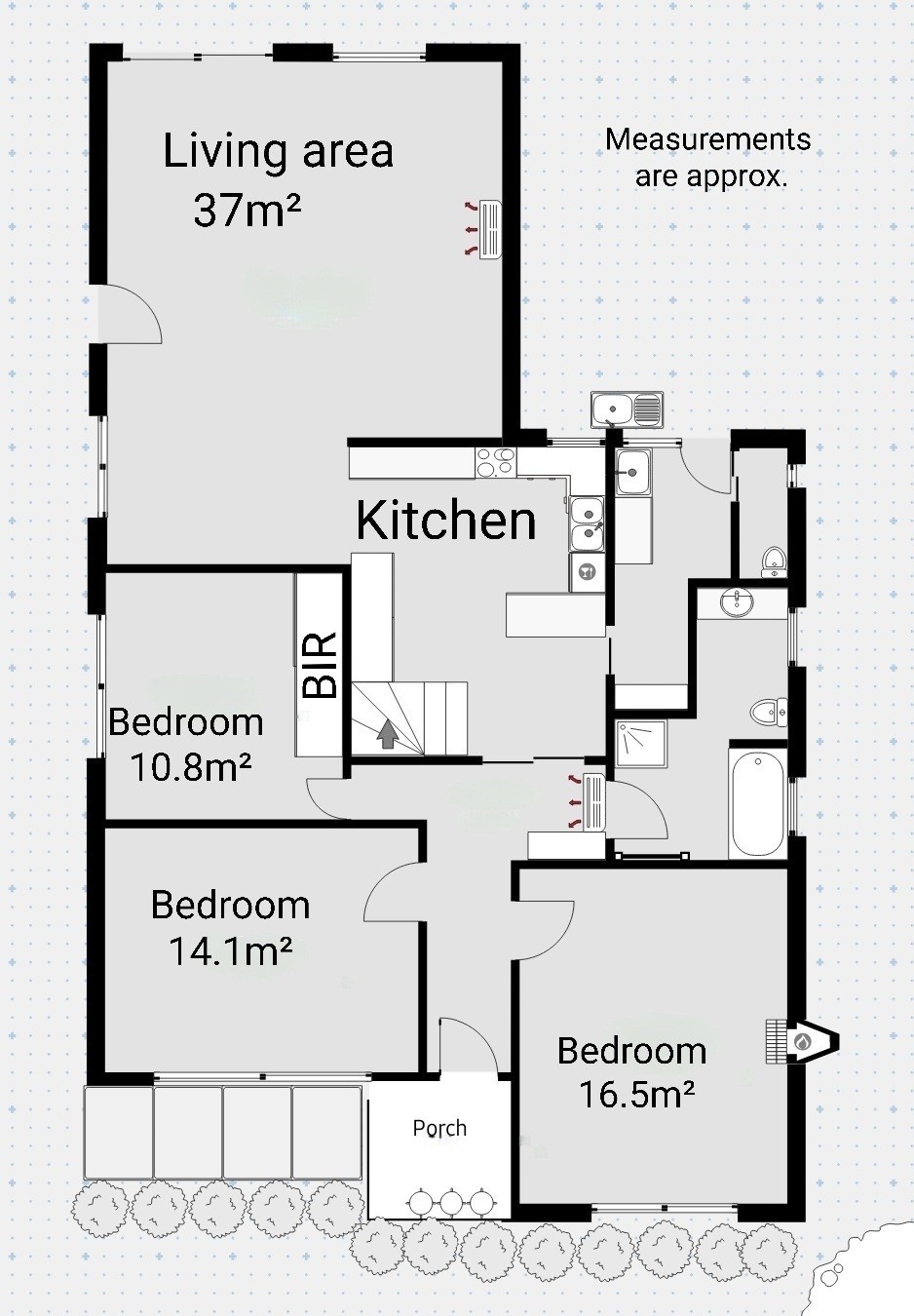 • The bathroom is on the ground floor and a second toilet is accessed from the laundry