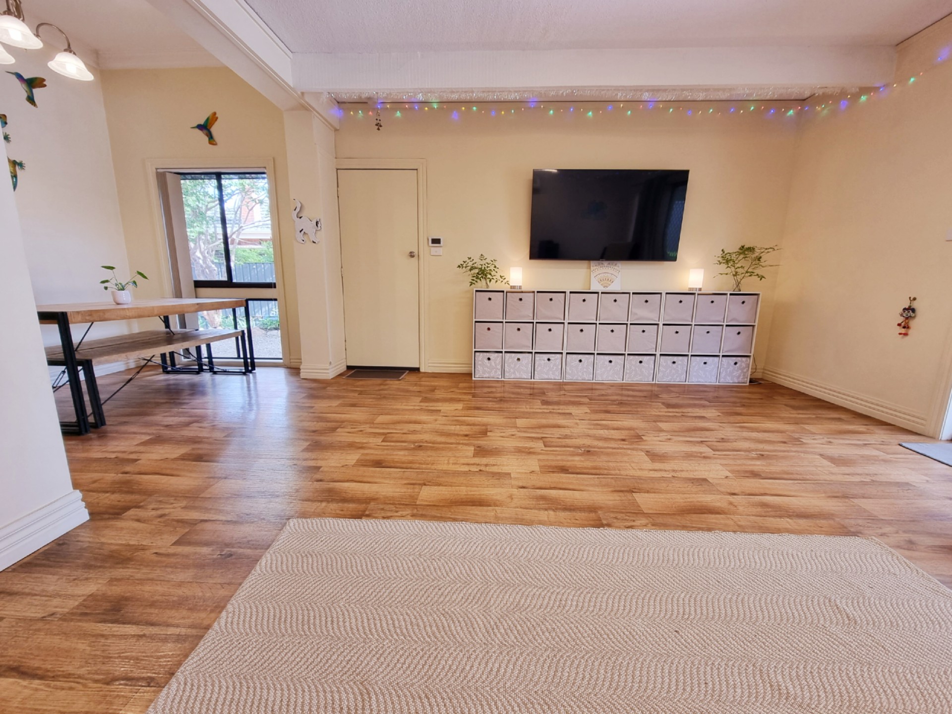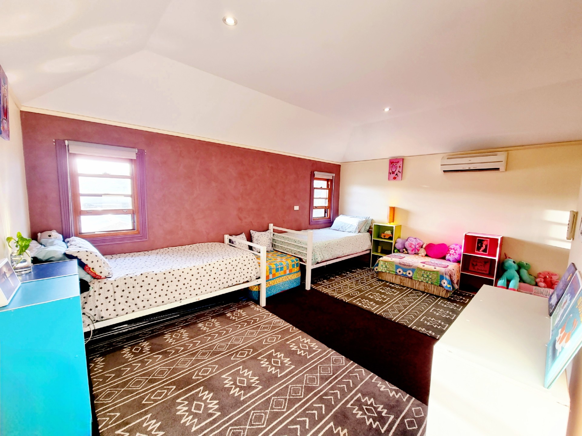 • Enormous upstairs bedroom (or additional living area) with walk-through robe and air conditioning