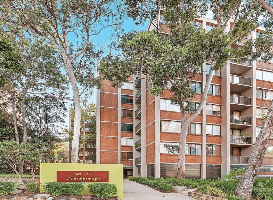 The complex, known as Scarborough, has outside and undercover washing lines, bike storage, intercom, and a lift in each of the 2 buildings. There are 70 flats in total. It was completed in about 1979. The ground floor entrance and foyers were renovated in 2011. There is no gym or pool.