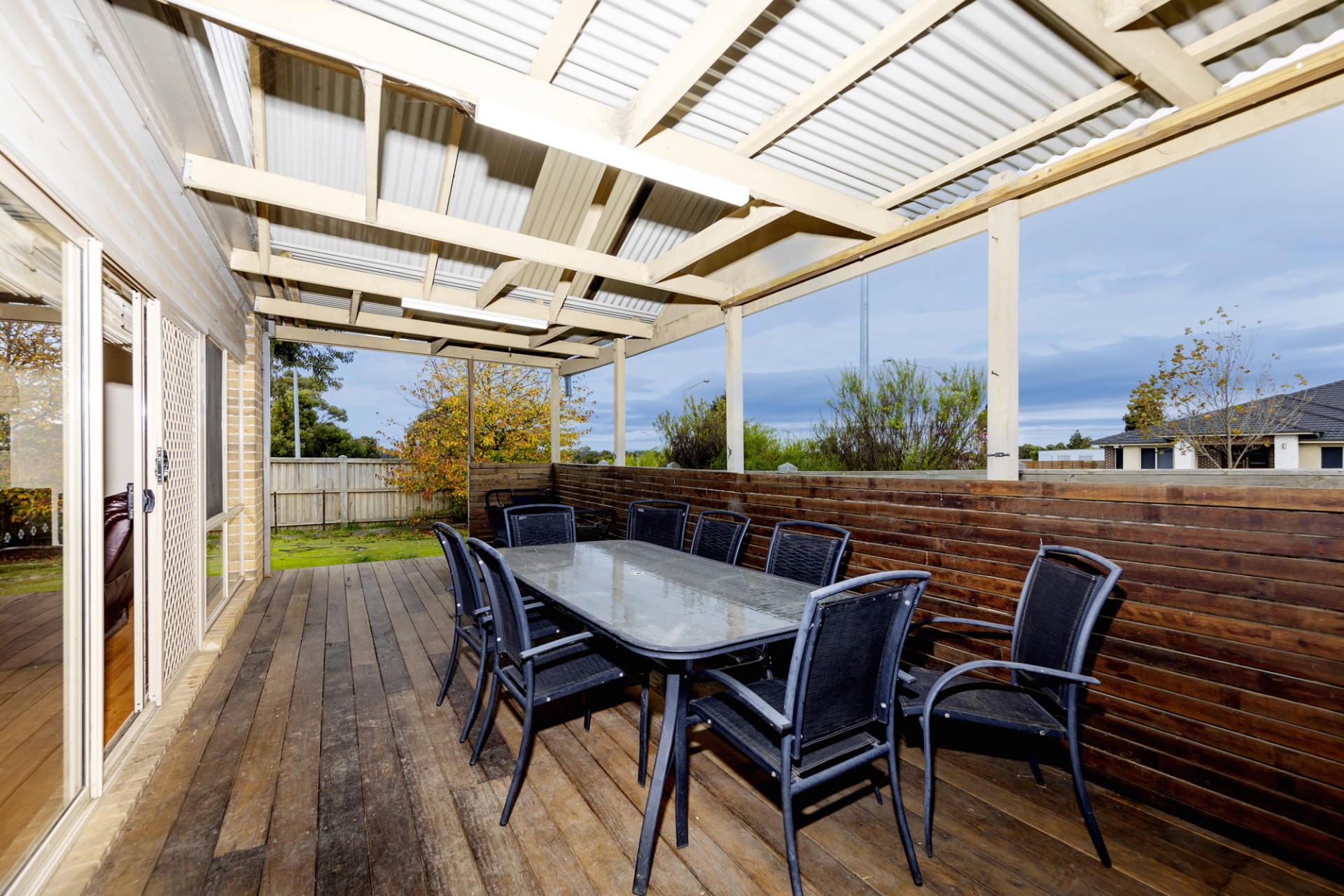 Step inside to discover a well-designed floor plan that combines comfort and practicality with two distinct living zones. The inviting lounge features a fireplace to snuggle up on chilly winter evenings. The spacious living and dining zone provides ample room for everyday activities, while a handy study nook caters to home-based work. The open-plan kitchen/meals area is equipped with essential appliances, including a wall oven, cooktop, and stainless-steel dishwasher ensuring all your cooking needs are met. Outside, a generous covered deck caters to alfresco entertaining and enjoyment regardless of the weather.