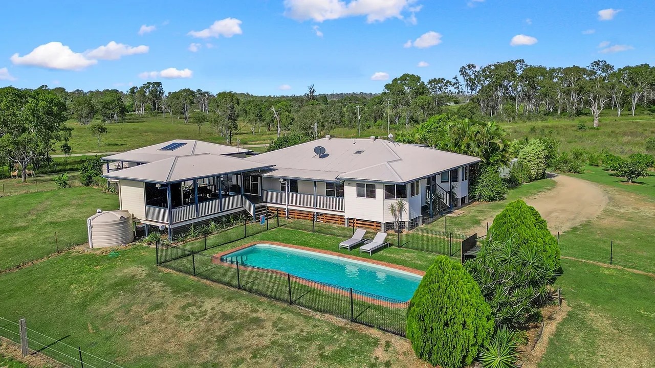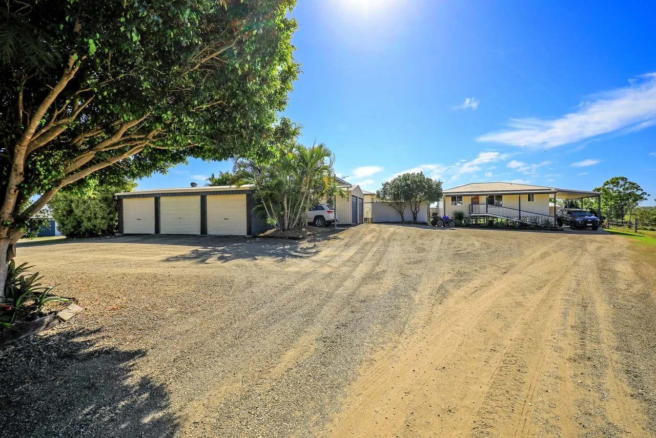 The possibilities are endless with this amazing property, situated on 42 acres just 20 minutes from Bundaberg CBD, with its well thought out positioning of the 4 bedroom 2 bathroom spacious home giving you a country feel as you walk through the door. The home features generous sized rooms with built-in wardrobes and air-conditioning, the main with a large walk-in wardrobe and ensuite. Offering views of the property and sparkling in-ground pool from the kitchen and rear veranda, with the morning sunrise coming through the trees that line the seasonal creek. You'll feel complete privacy with only the sound of kookaburras and other birdlife as nature's alarm clock. Whether you're enjoying your morning coffee or afternoon beverage the rear veranda / bar area provides generous space to entertain your friends and family or just unwind.