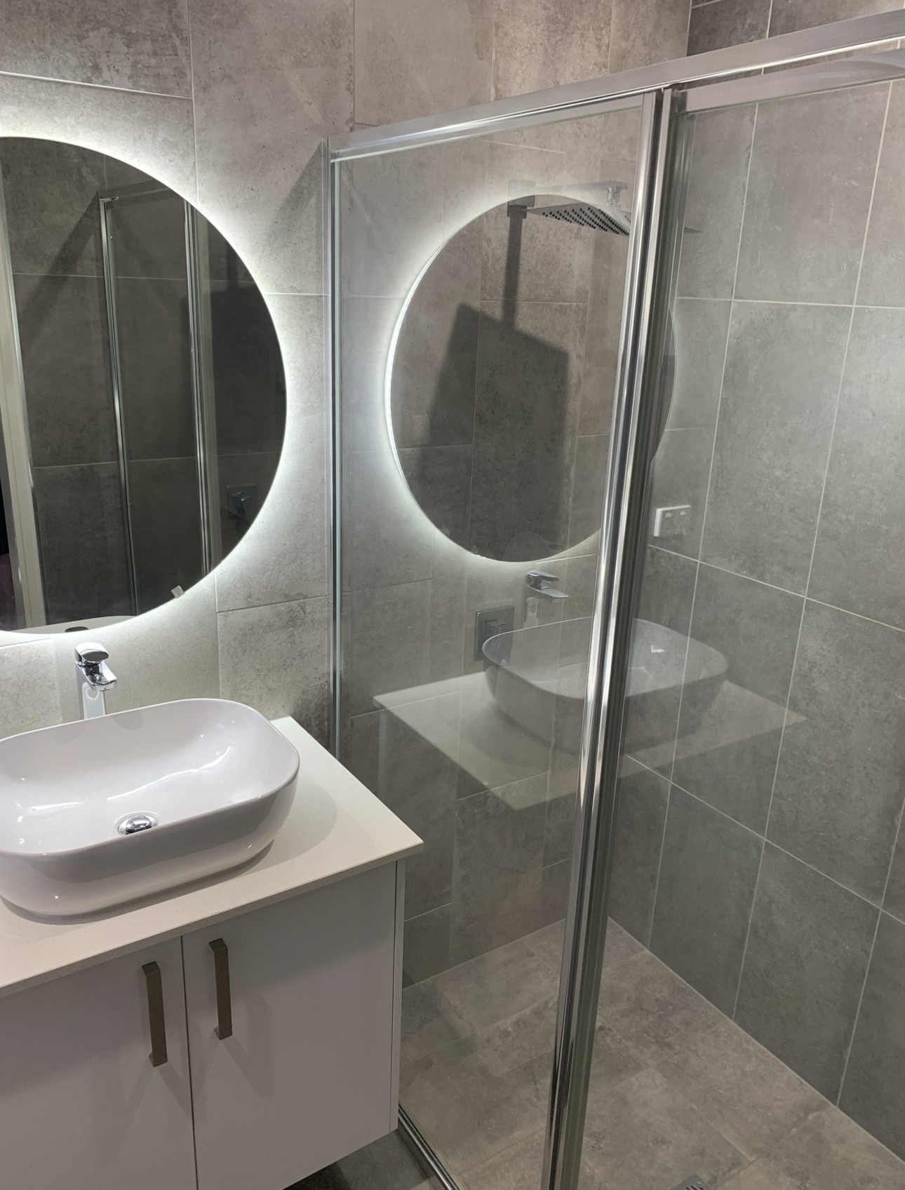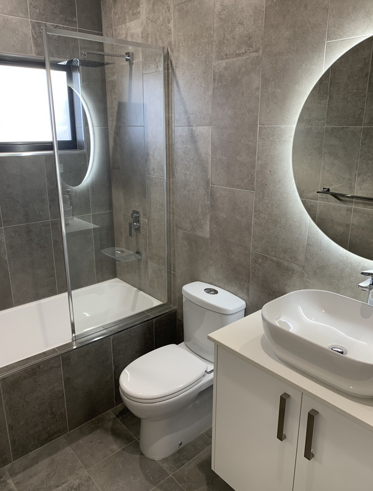 Bathrooms include floor to ceiling tiles and stunning touch-less sensor LED mirrors.