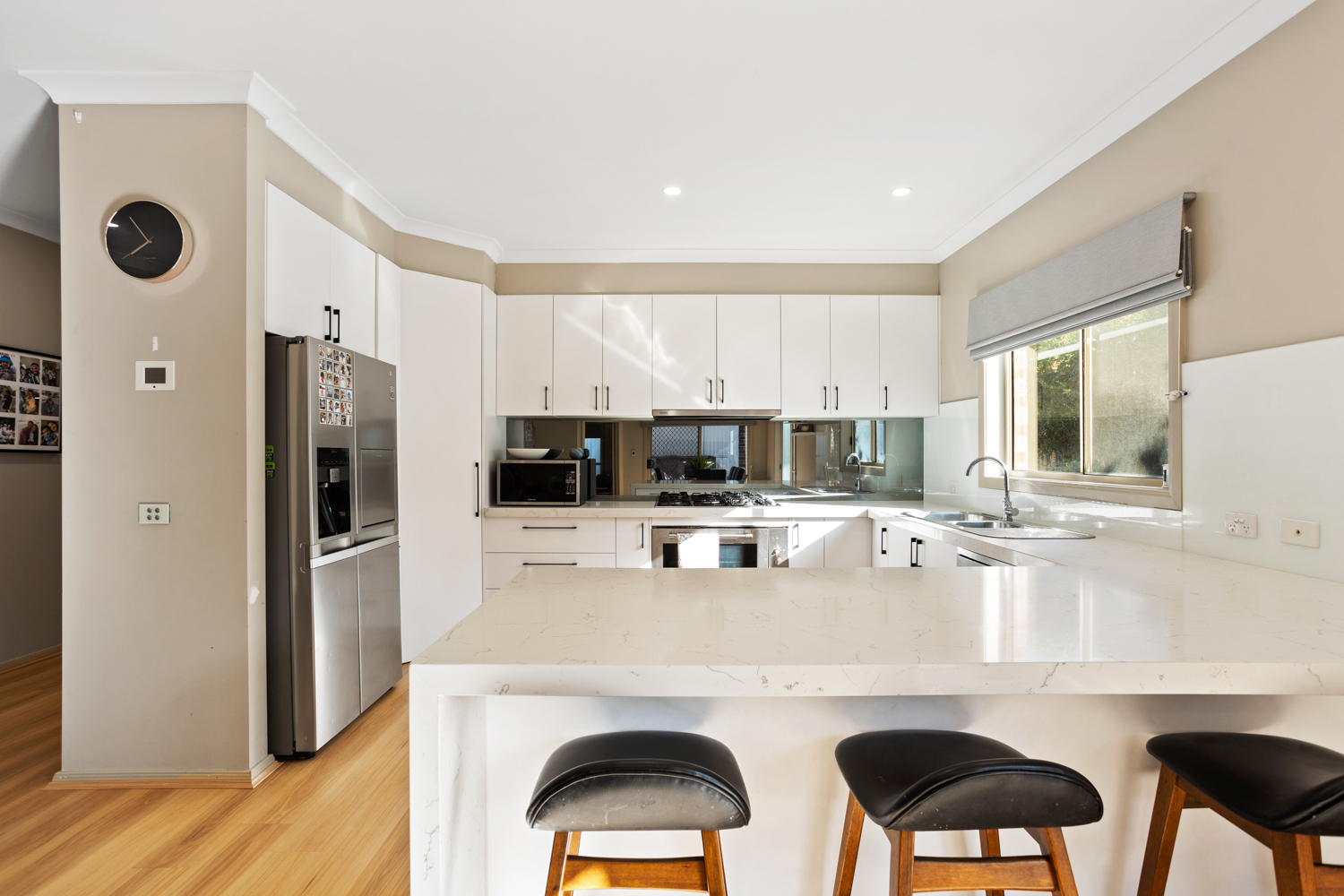 Three distinct living areas cater for any size family, one of which is large enough to be a theatre or rumpus room. The prestigious kitchen has been fully updated with cabinetry and craftsman 55mm Stone Waterfall benchtops installed.