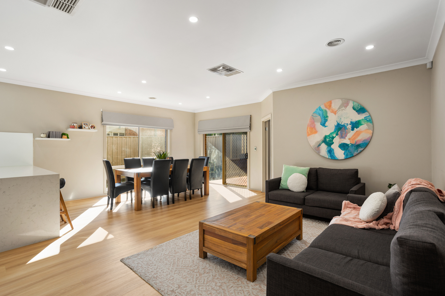 Outside is an alfresco dining area that makes entertaining with friends and family a breeze. The rear garden has been made over with a focus on balancing low maintenance with the practicalities of children and pets.